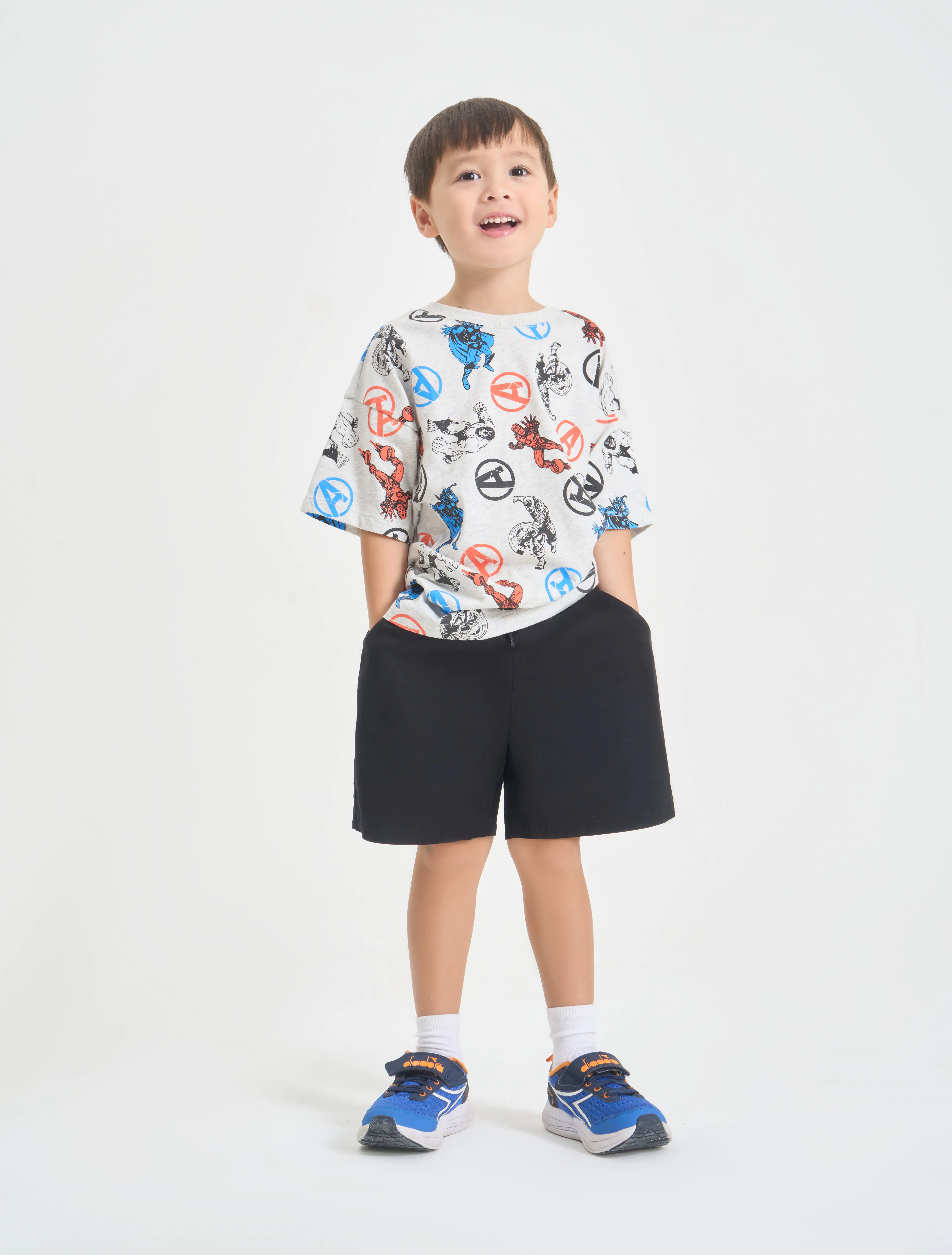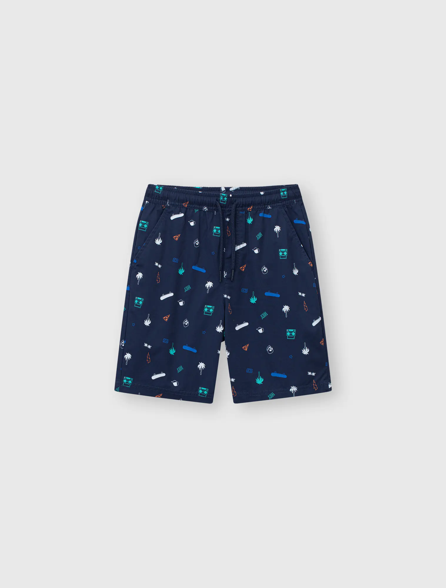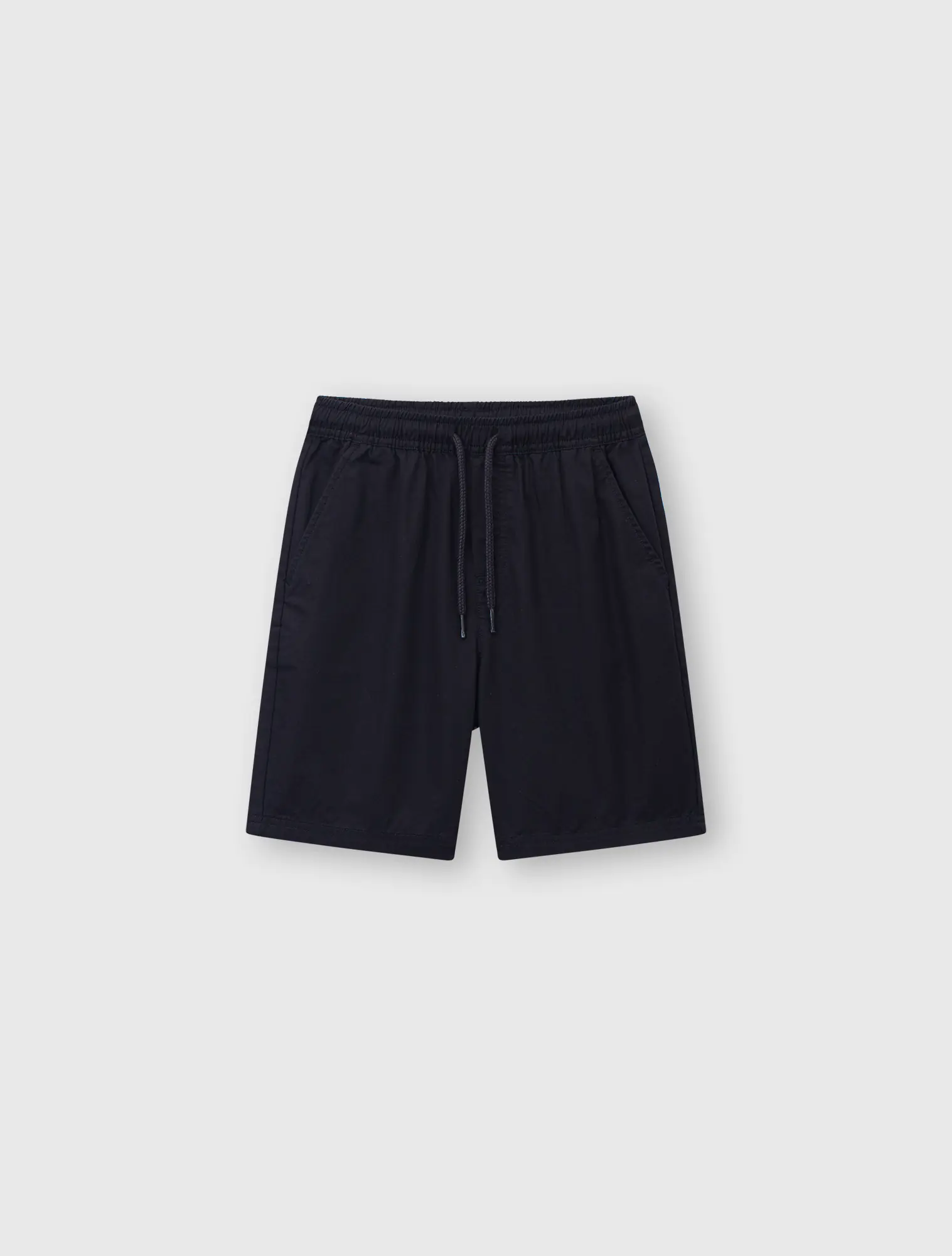 Quần soóc chất liệu 100% cotton, nẹp kéo khoá giả, túi hai bên và một túi sau.