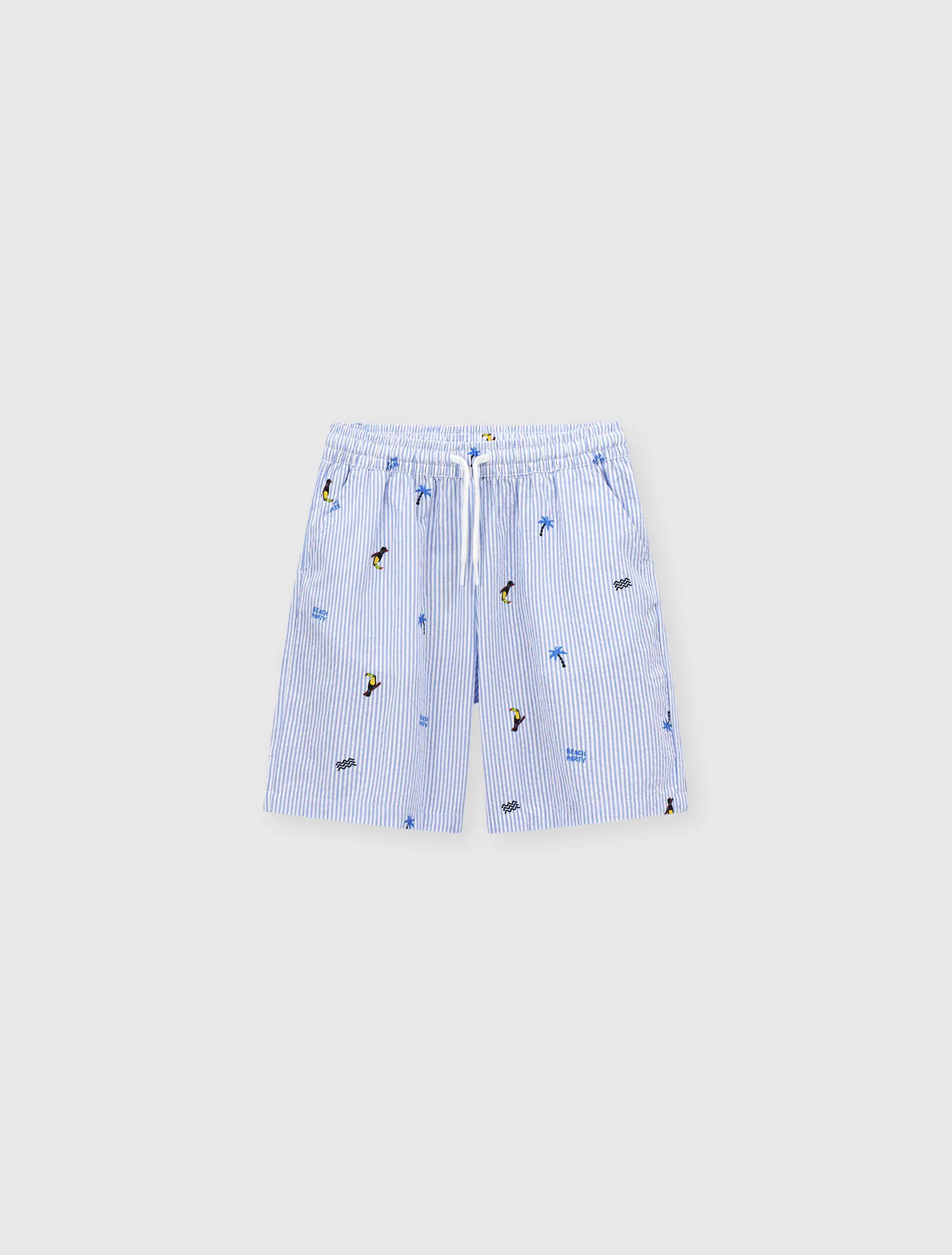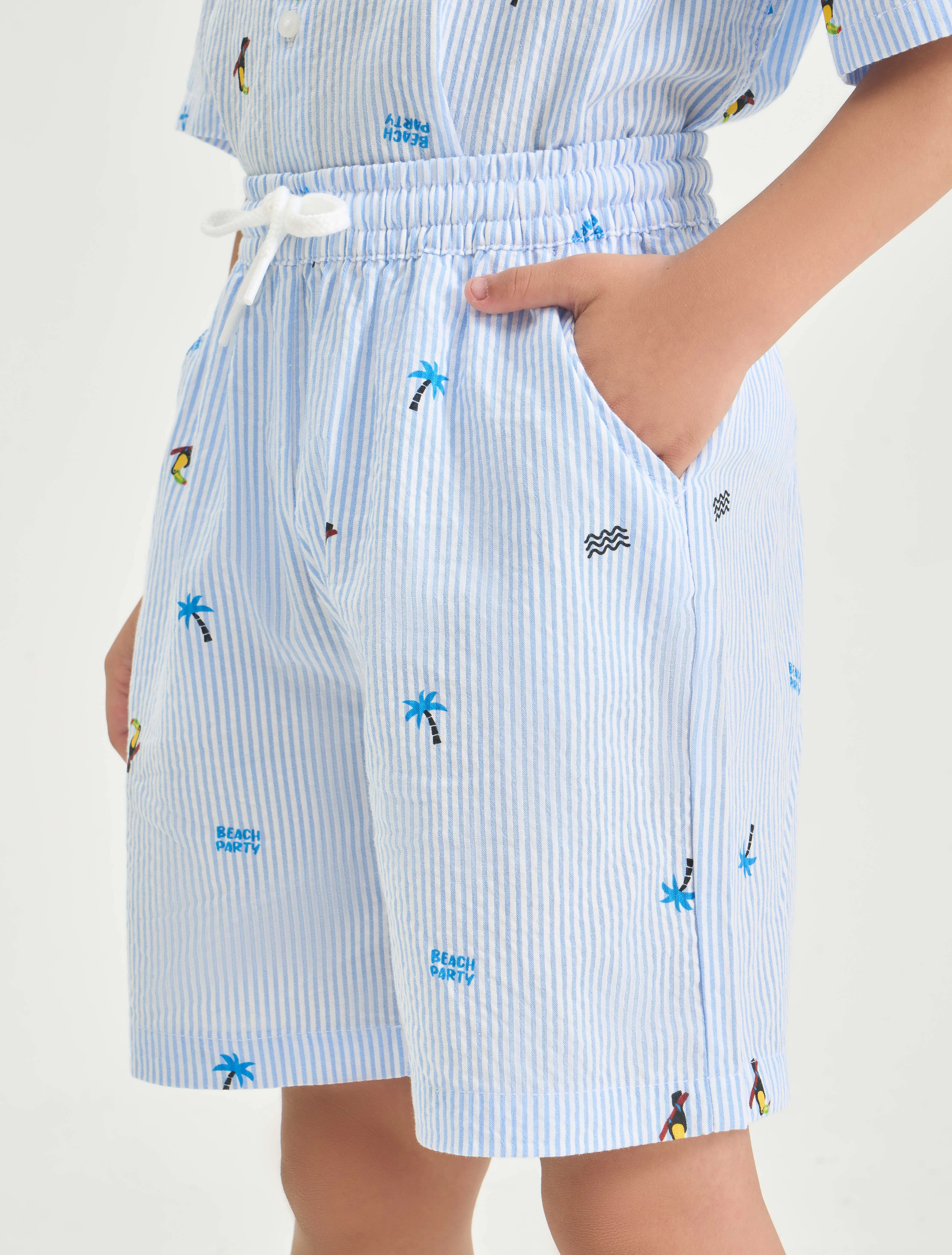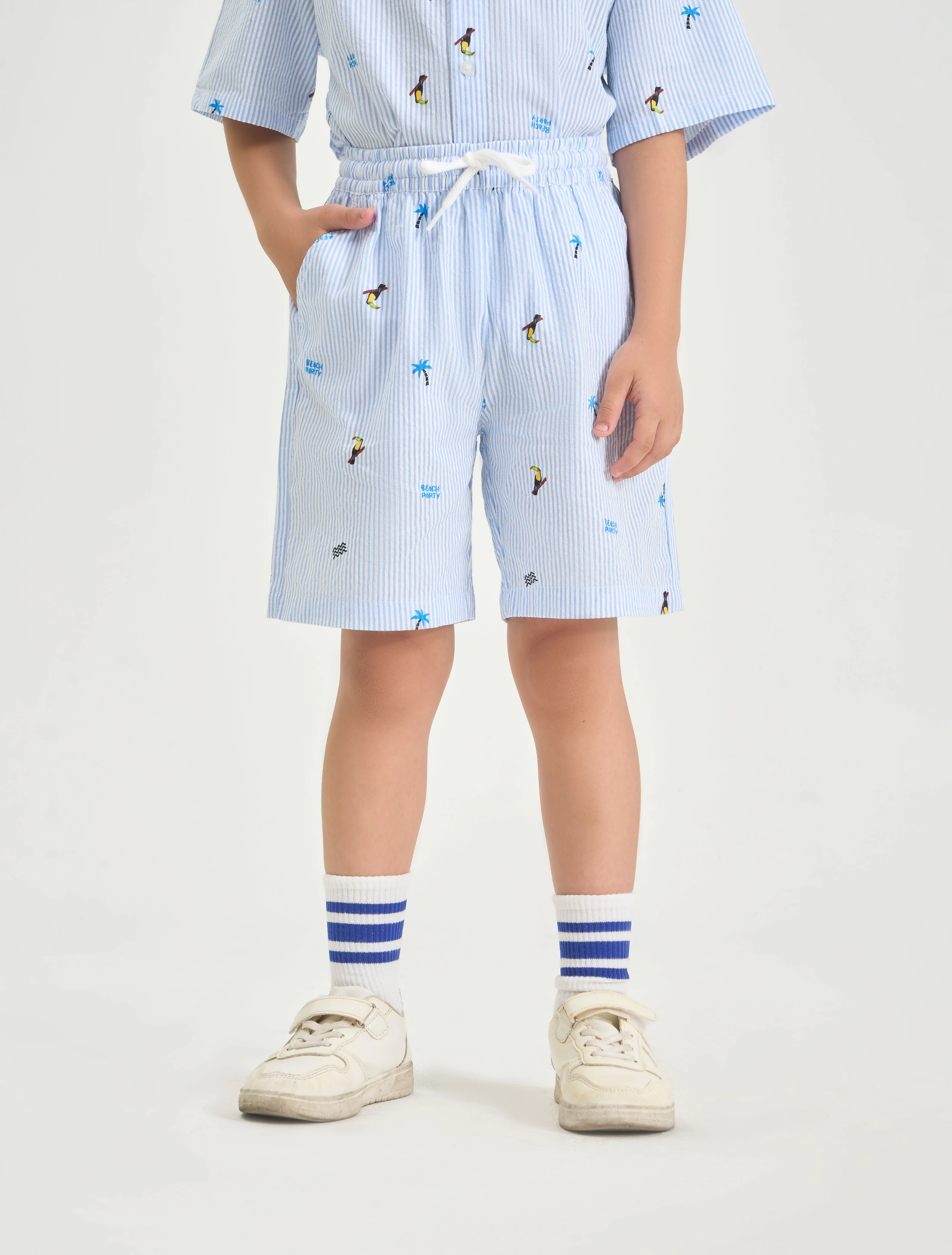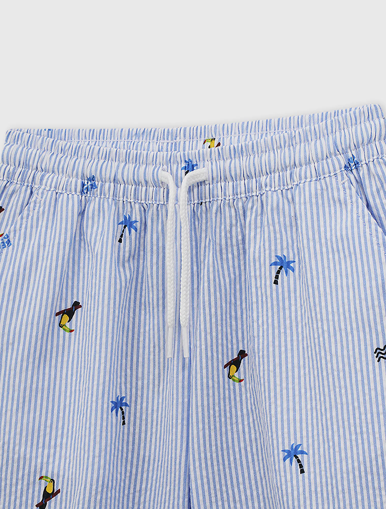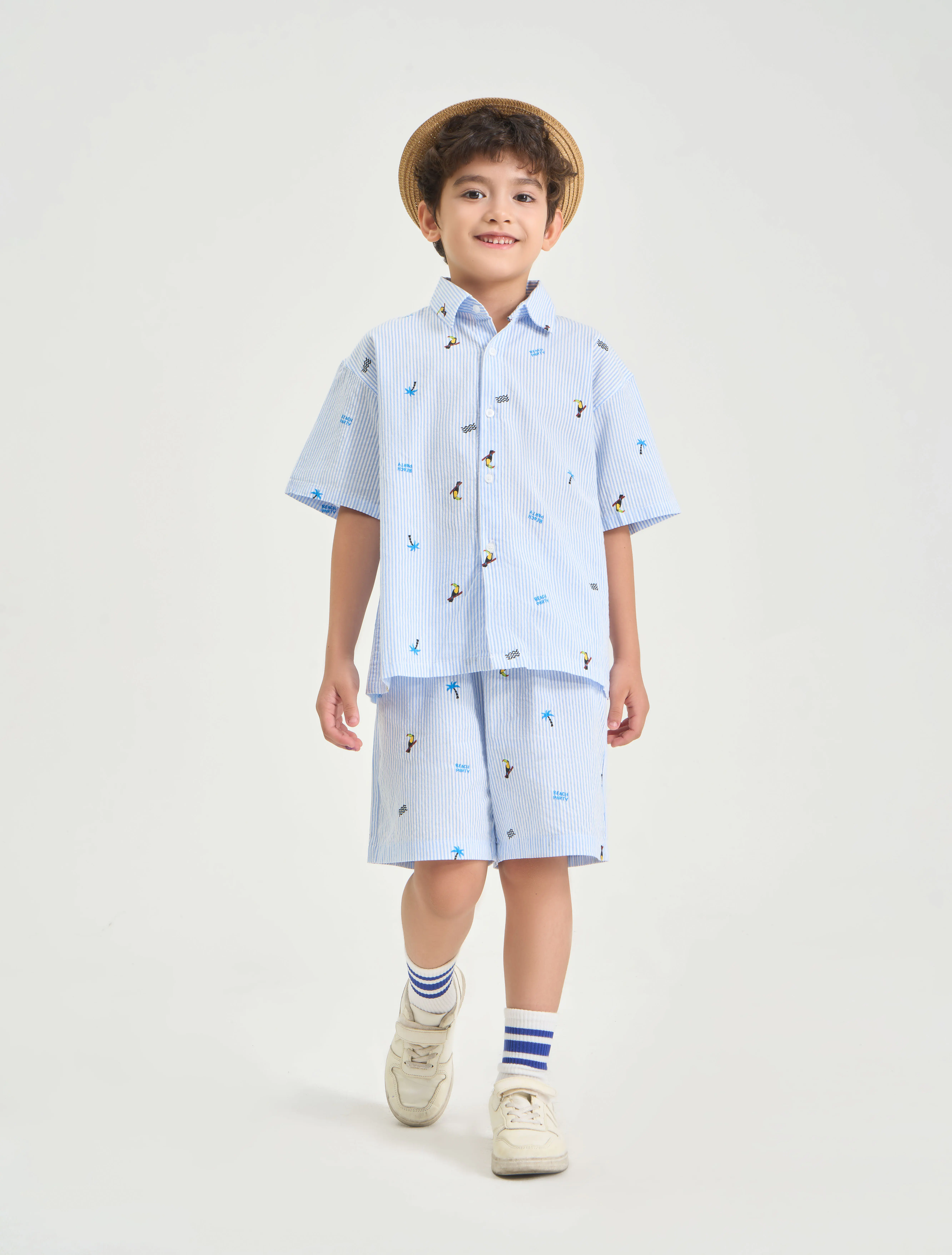 Quần bé trai chất liệu cotton bề mặt nhăn nhẹ, in họa tiết bắt mắt. Phom dáng thoải mái, hiện đại giúp bé thêm cá tính, năng động khi ra ngoài.