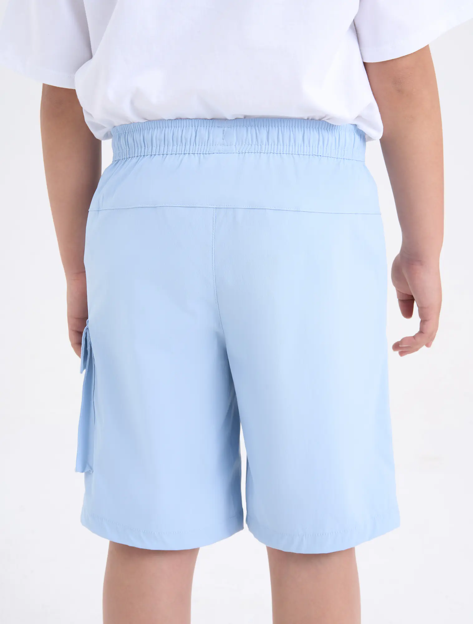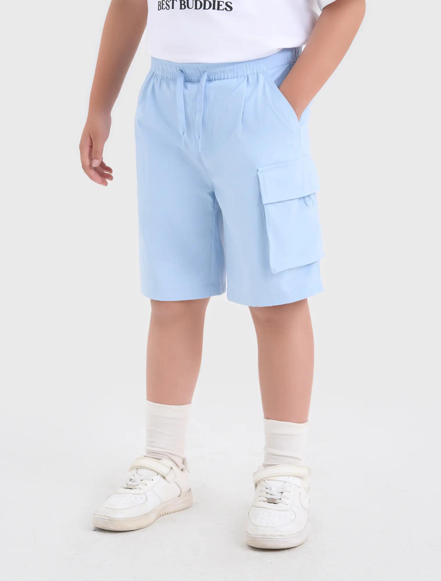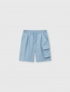 Quần short bé trai chất liệu gió, phom dáng thoải mái dễ mặc, túi ốp khỏe khoắn tạo sự năng động cho bé.