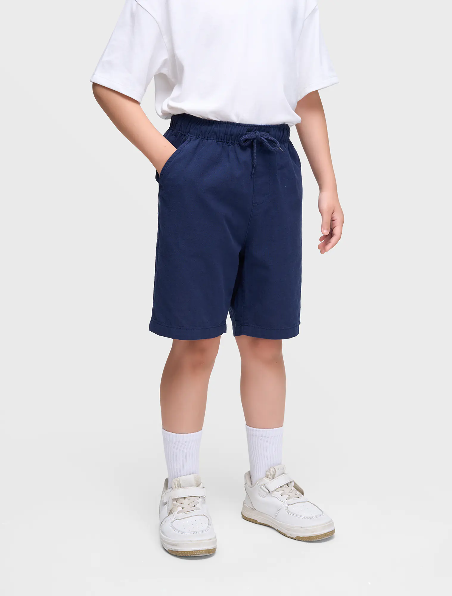Quần soóc bé trai dệt thoi, chất liệu cotton và cotton pha thoáng mát mềm mại, phom quần basic dễ mặc phù hợp cho nhiều hoàn cảnh sử dụng của các bé.