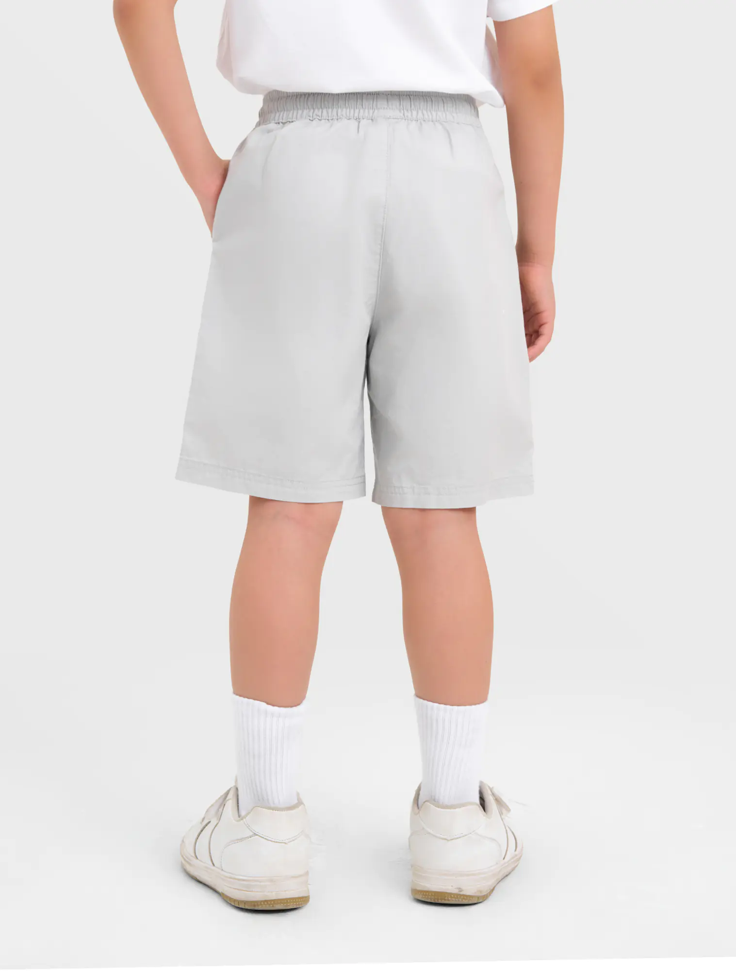 Quần soóc chất liệu 100% cotton, nẹp kéo khoá giả, túi hai bên và một túi sau.