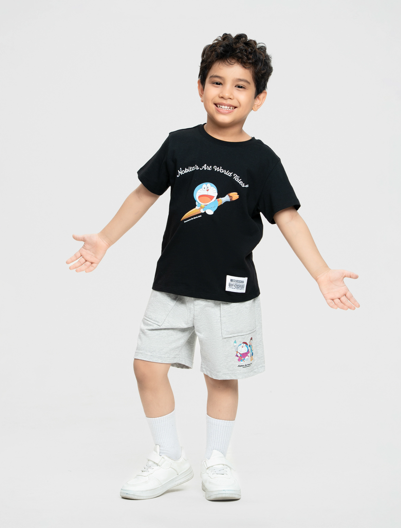 Quần soóc năng động với họa tiết Doraemon tinh nghịch, mang đến tinh thần vui nhộn và thoải mái cho bé trai. Cạp chun co giãn, chất liệu thoáng mát, thích hợp diện cùng áo thun hoặc áo ba lỗ trong mùa hè. Dễ giặt, giữ form tốt.