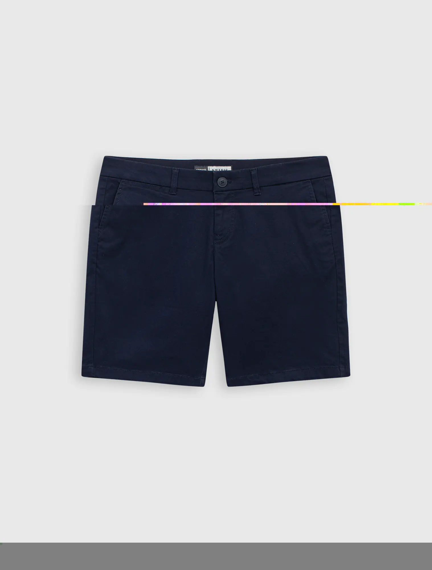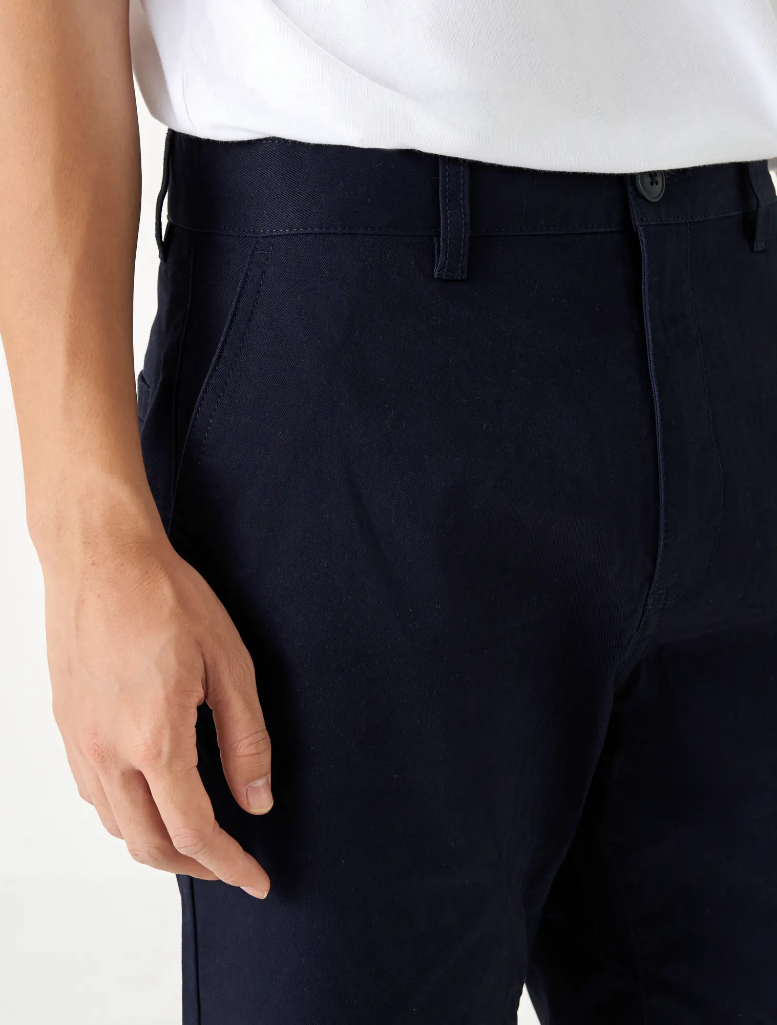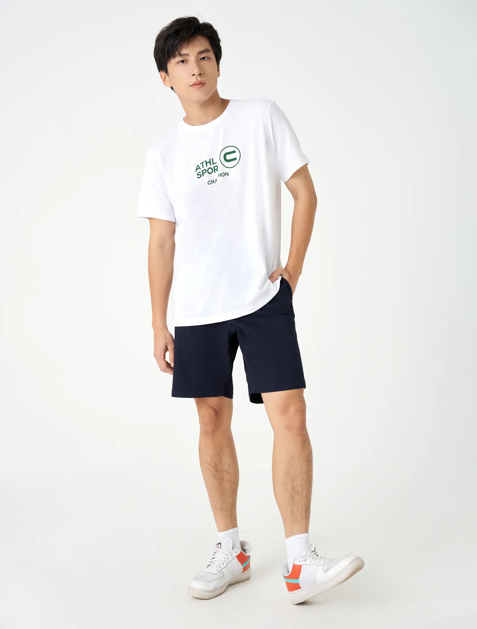 Quần soóc khaki chất liệu cotton, cạp thường cài cúc, phom reguler.