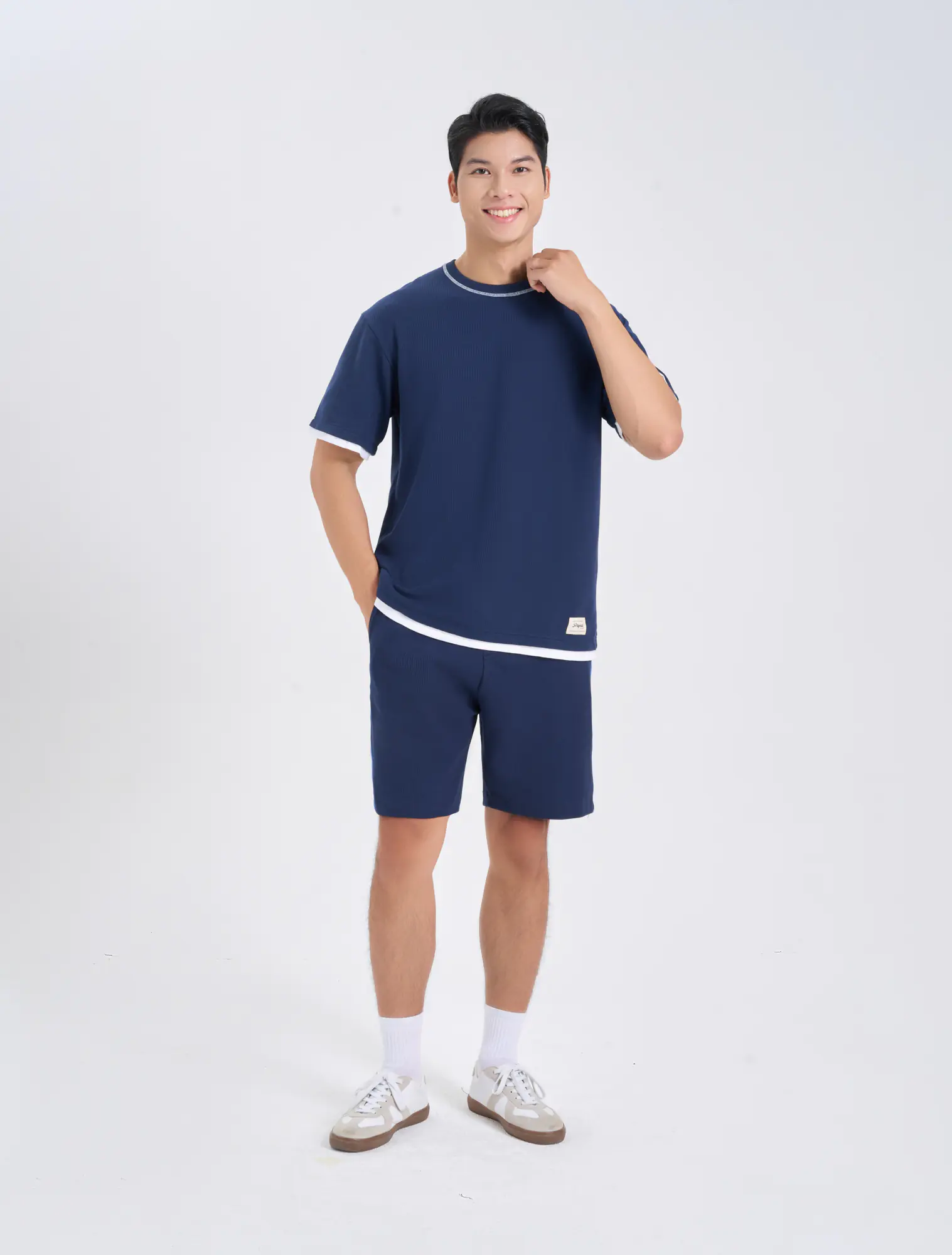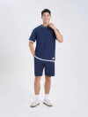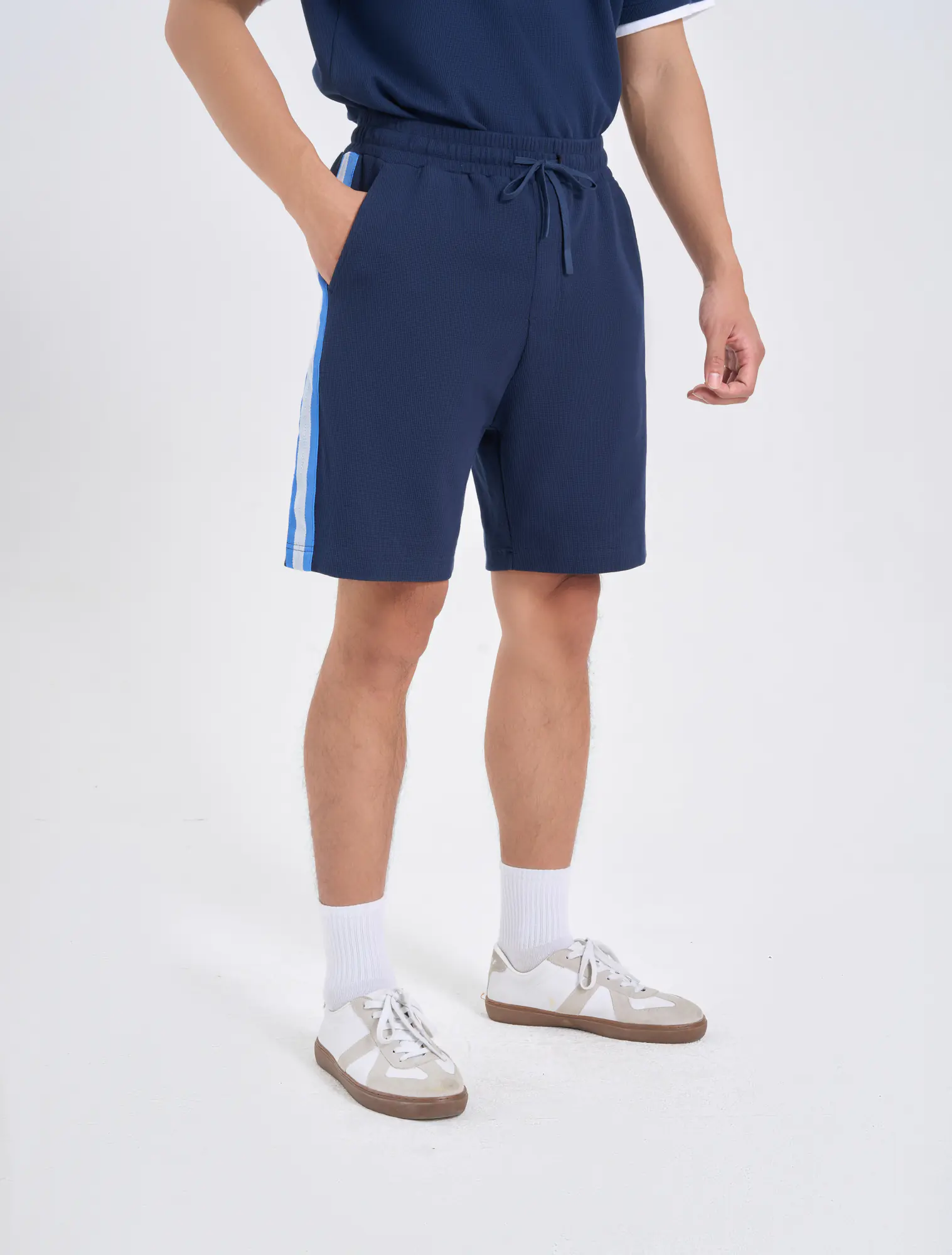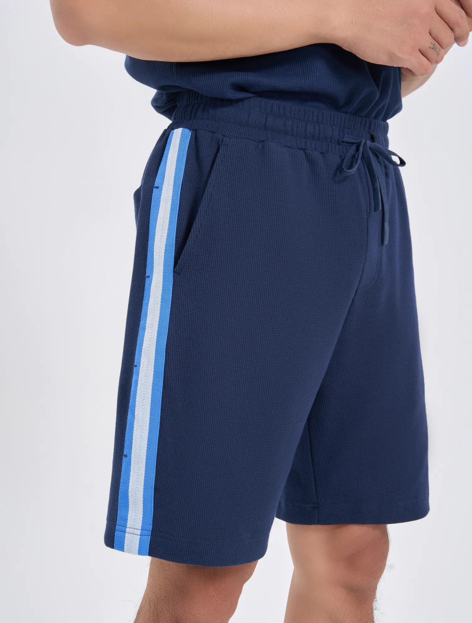 Quần soóc nam với điểm nhấn là 2 đường can phối dọc quần bằng dây dệt tạo nên một sản phẩm thời trang, khỏe khoắn.