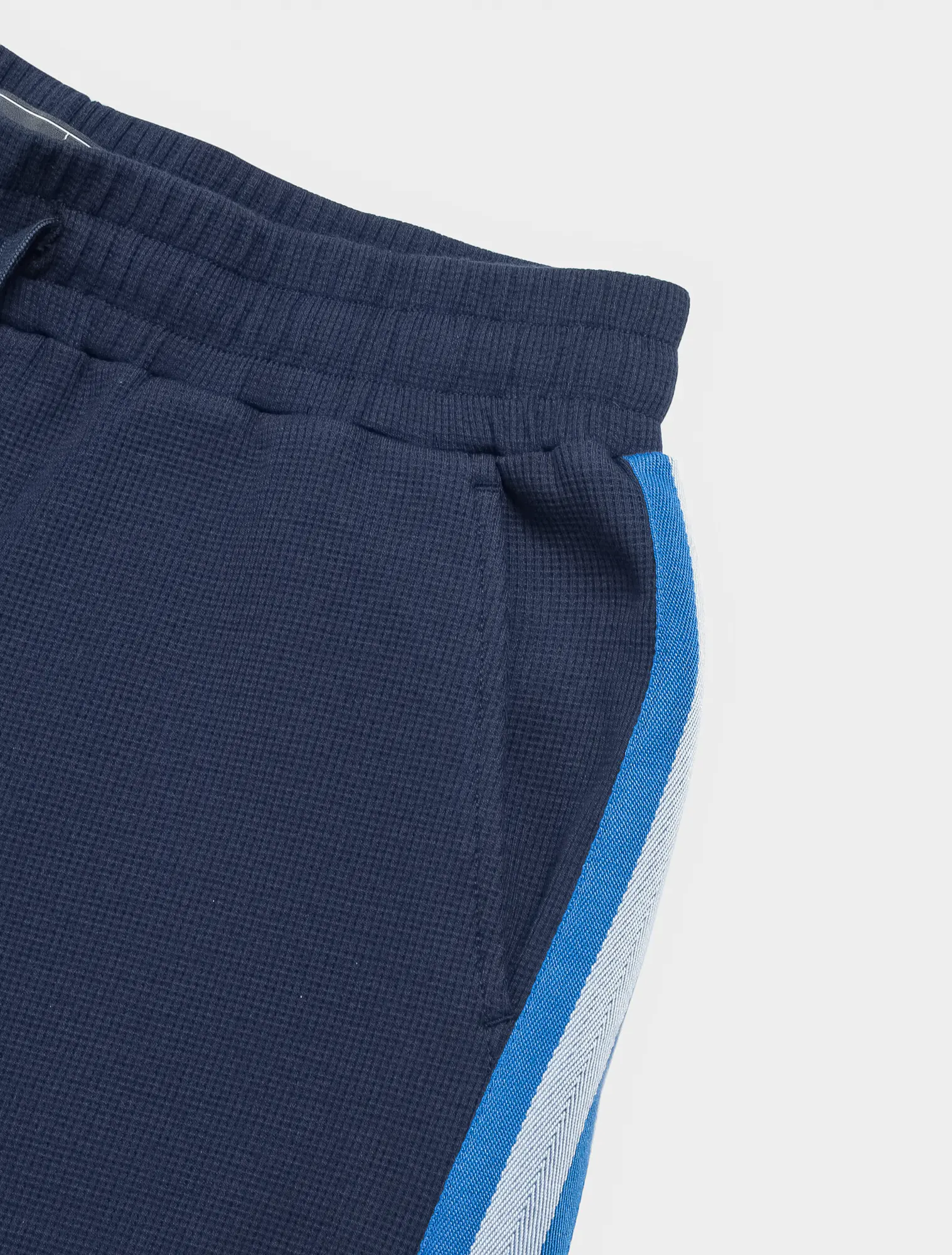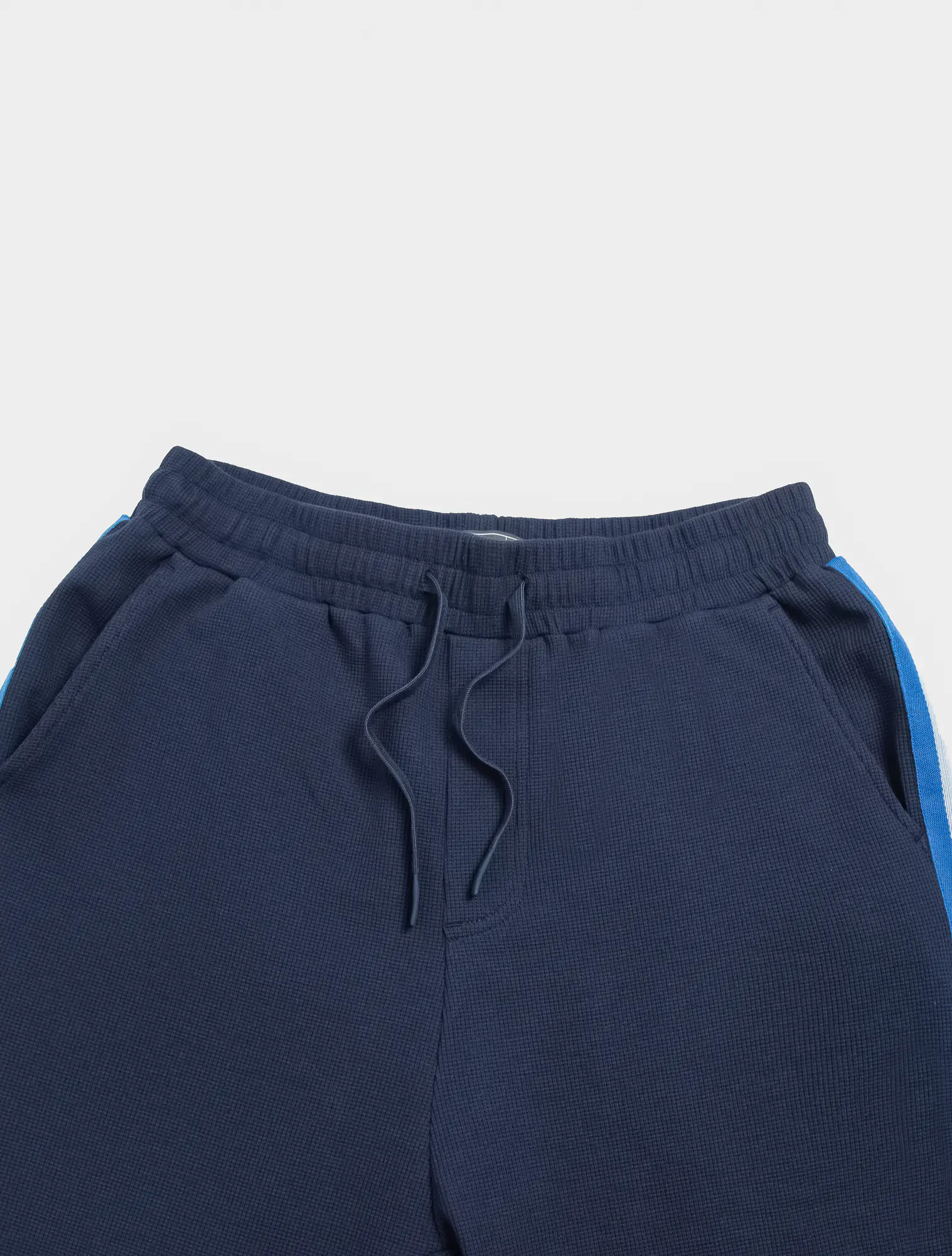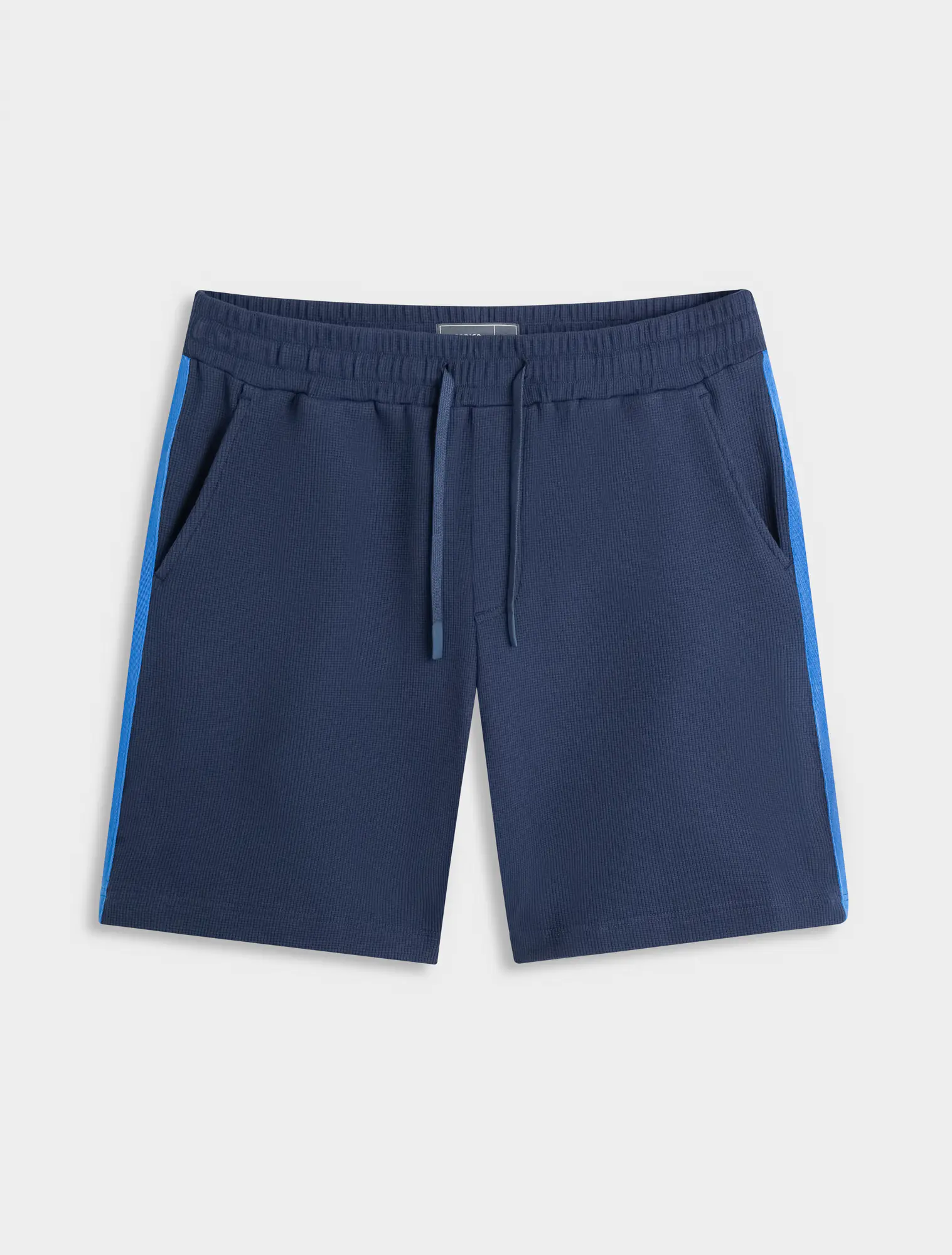 Quần soóc nam với điểm nhấn là 2 đường can phối dọc quần bằng dây dệt tạo nên một sản phẩm thời trang, khỏe khoắn.