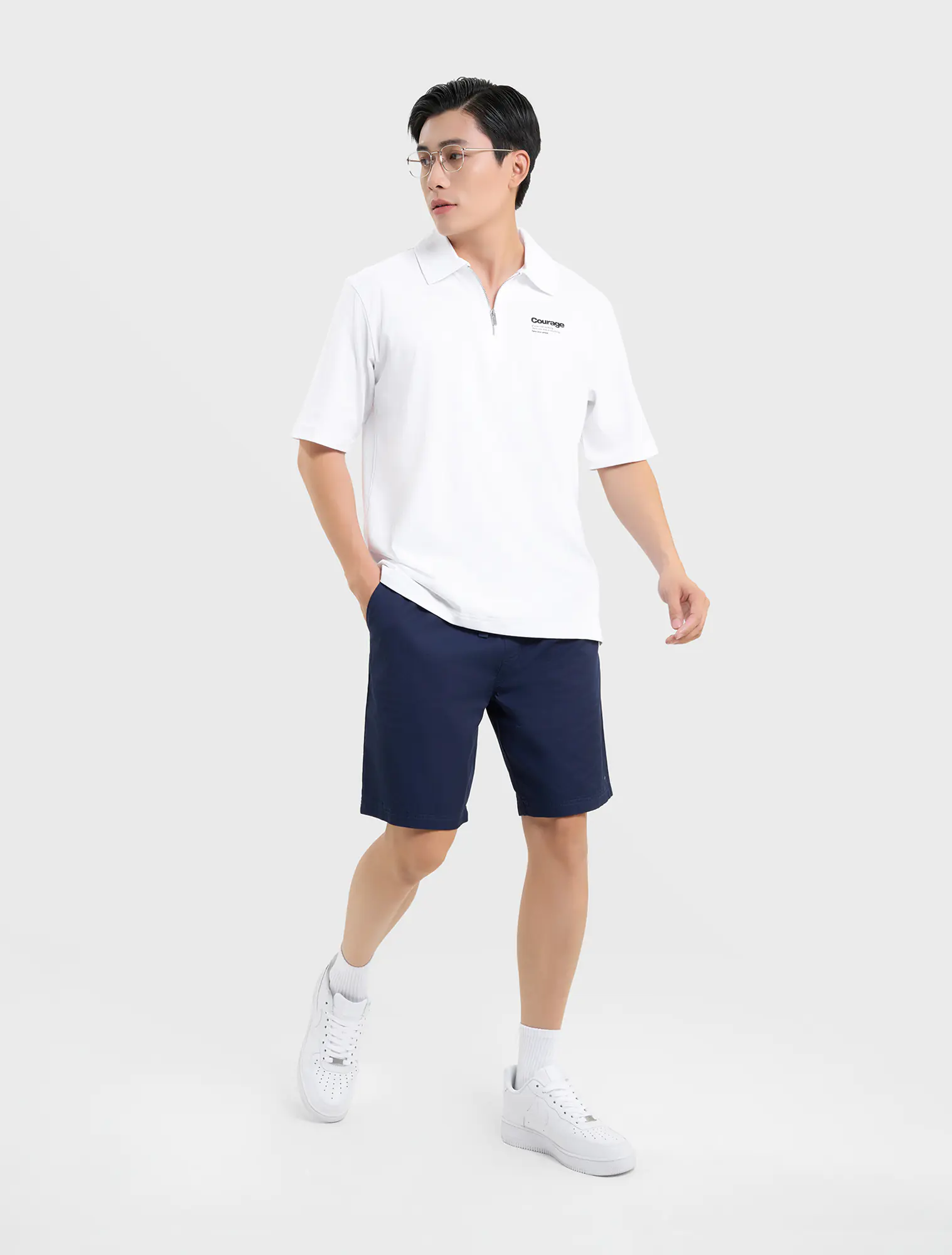 Quần soóc nẹp kéo khoá giả, túi hai bên và một túi sau.