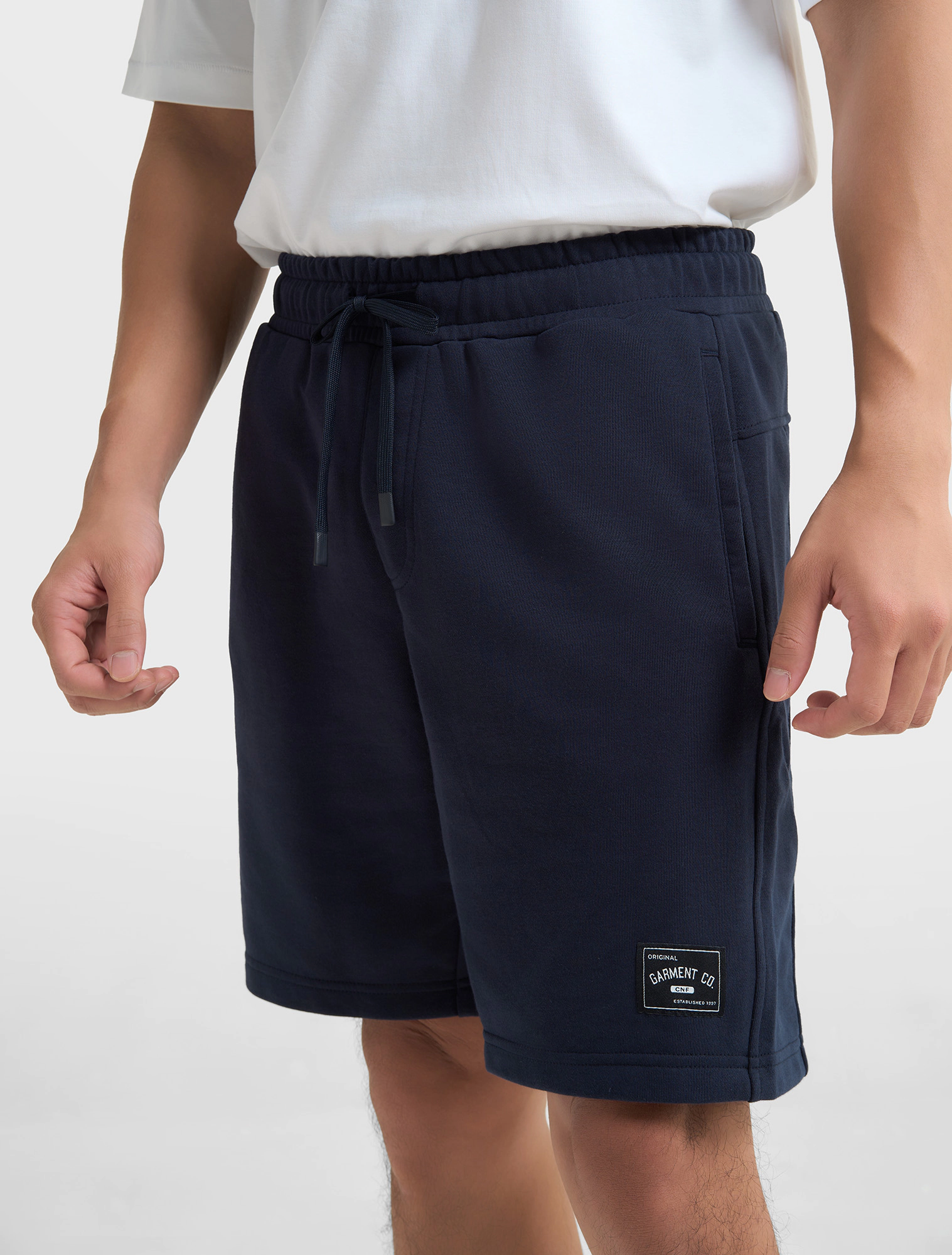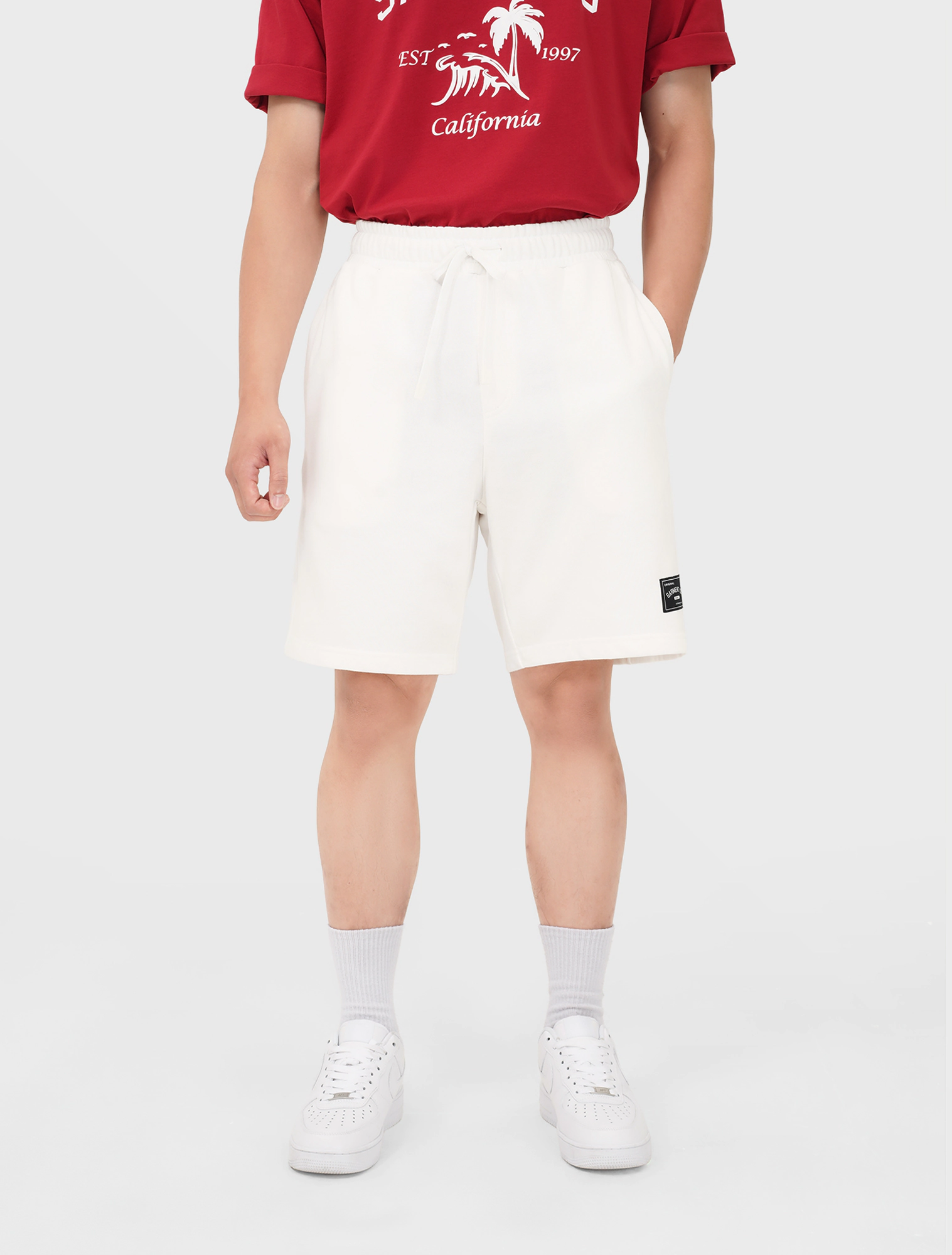 Quần soóc nam với điểm nhấn là mác trang trí gấu quần, tạo nên một sản phẩm thời trang, khỏe khoắn. Thích hợp mặc được trong nhiều hoàn cảnh.