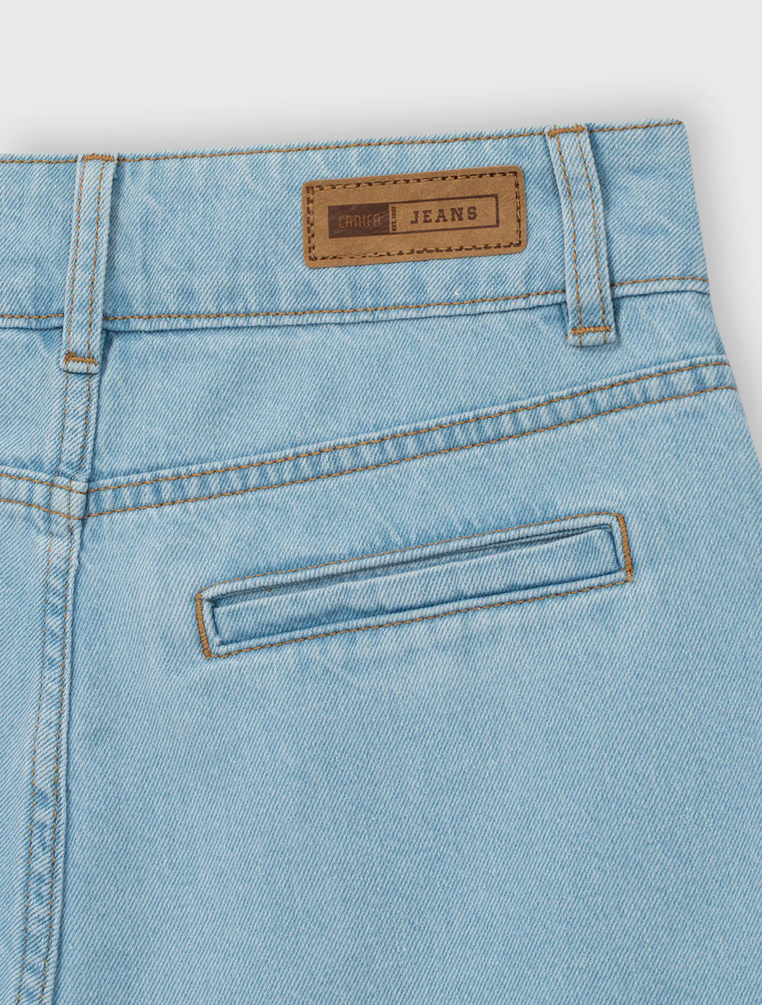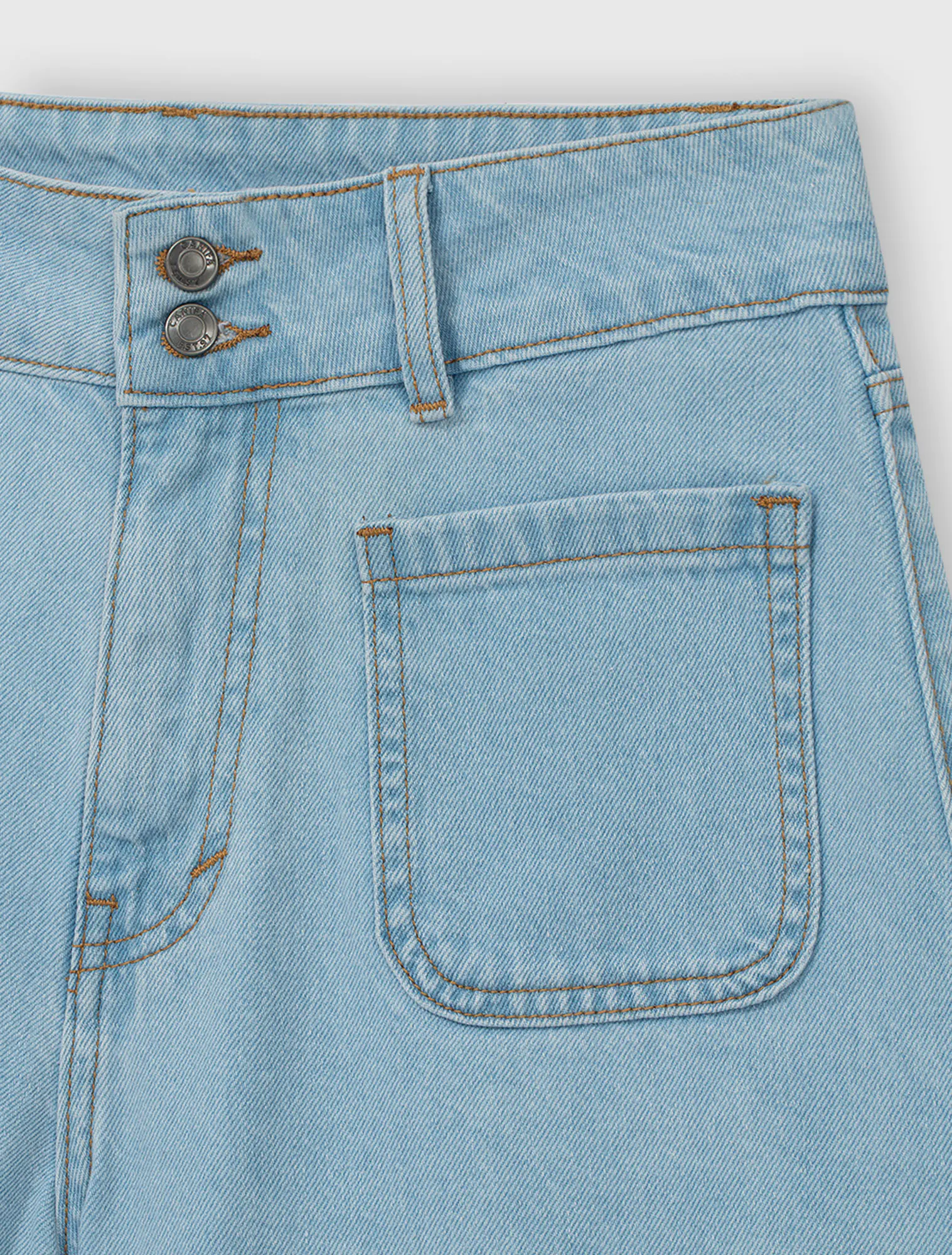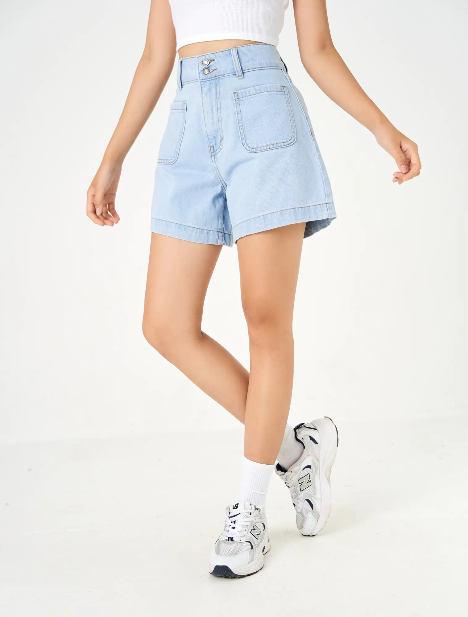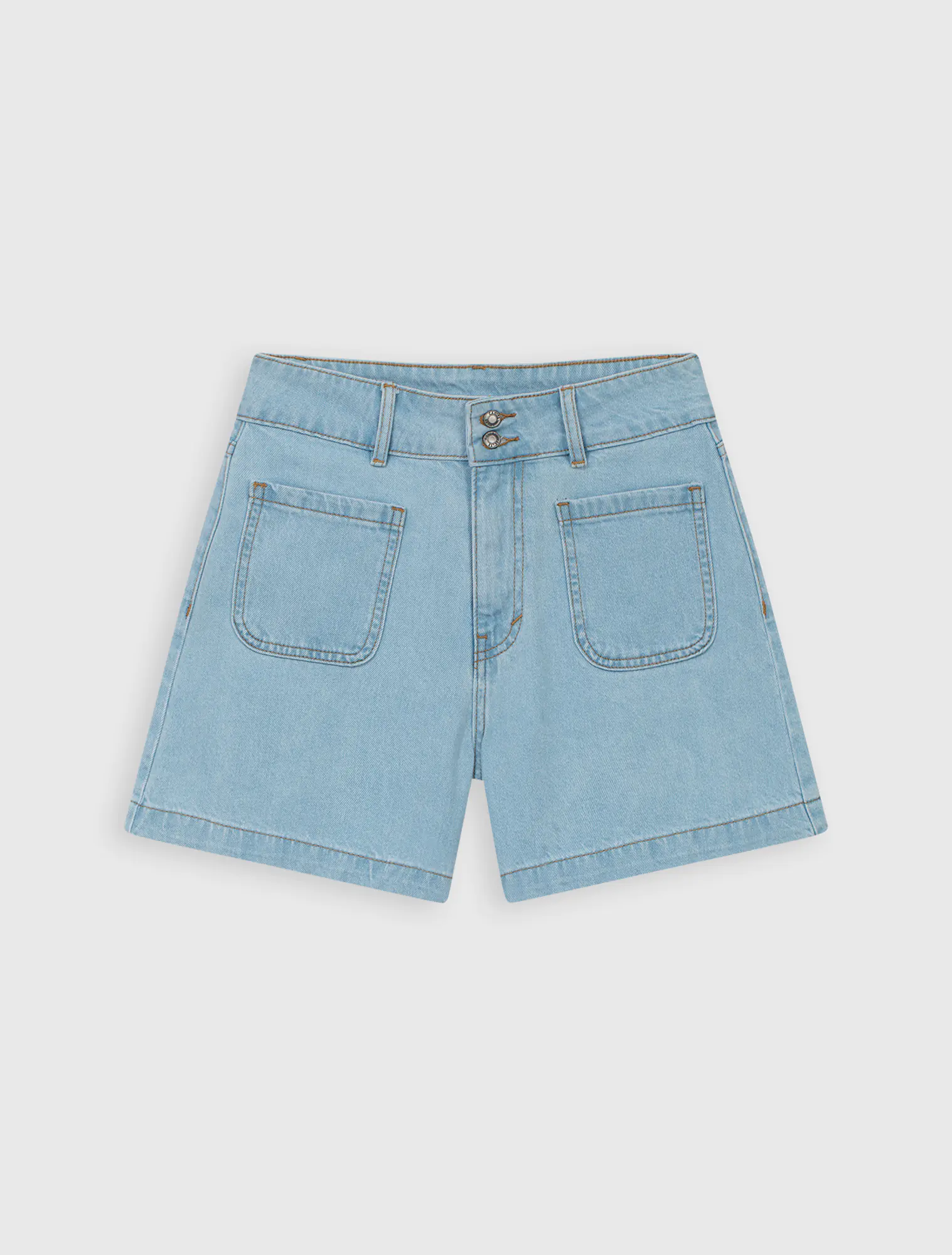 Quần soóc jeans chất liệu 100% cotton, cạp thường cài cúc, phom regular.