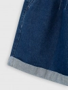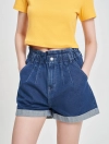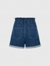 Quần soóc jeans nữ cotton cạp cao phối bèo dáng suông