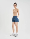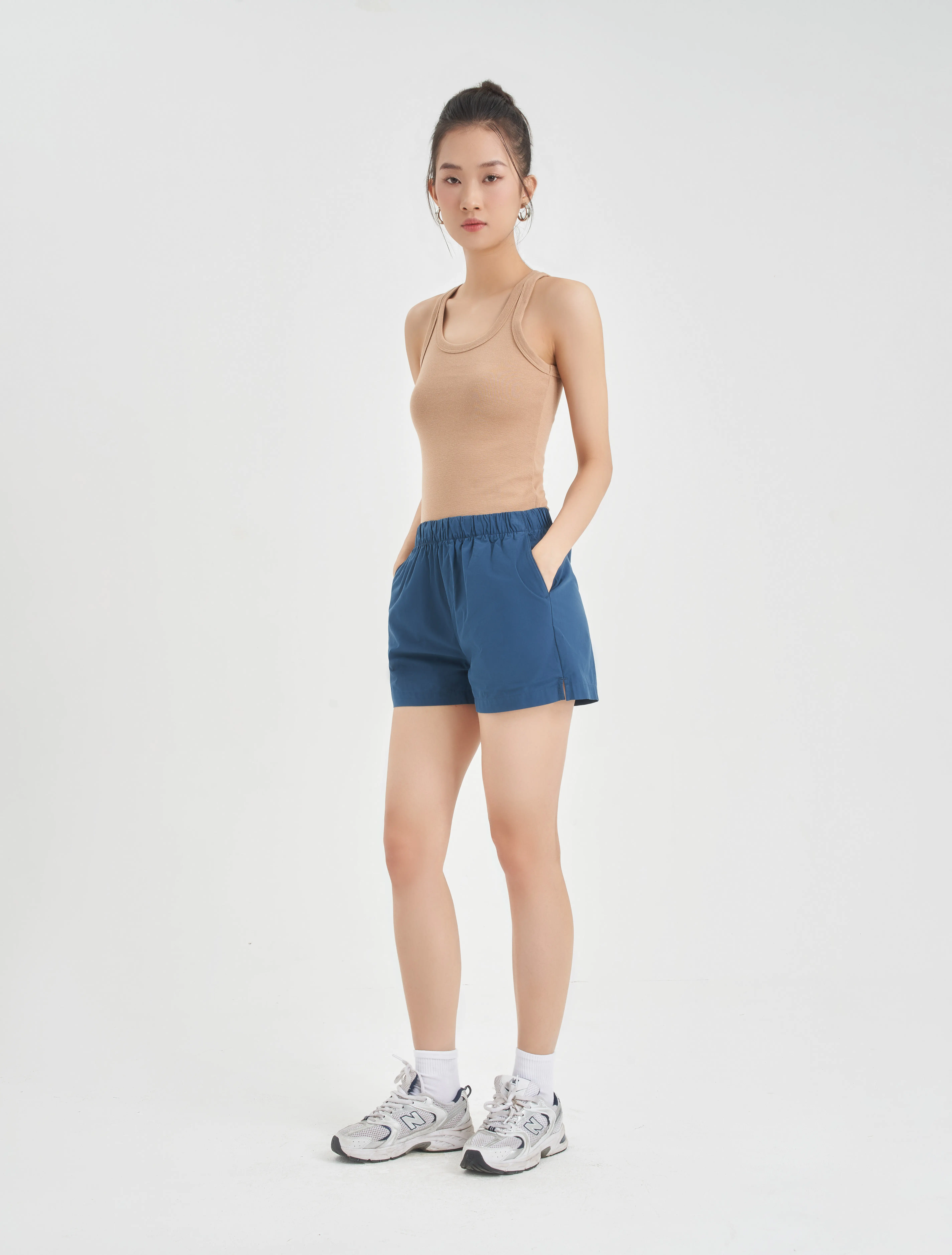 Quần soóc nữ, cạp chun. Độ rộng vừa phải, chất liệu cotton mềm, nhẹ, tạo cảm giác thoải mái, mát mẻ. Phù hợp đi chơi, dạo phố.