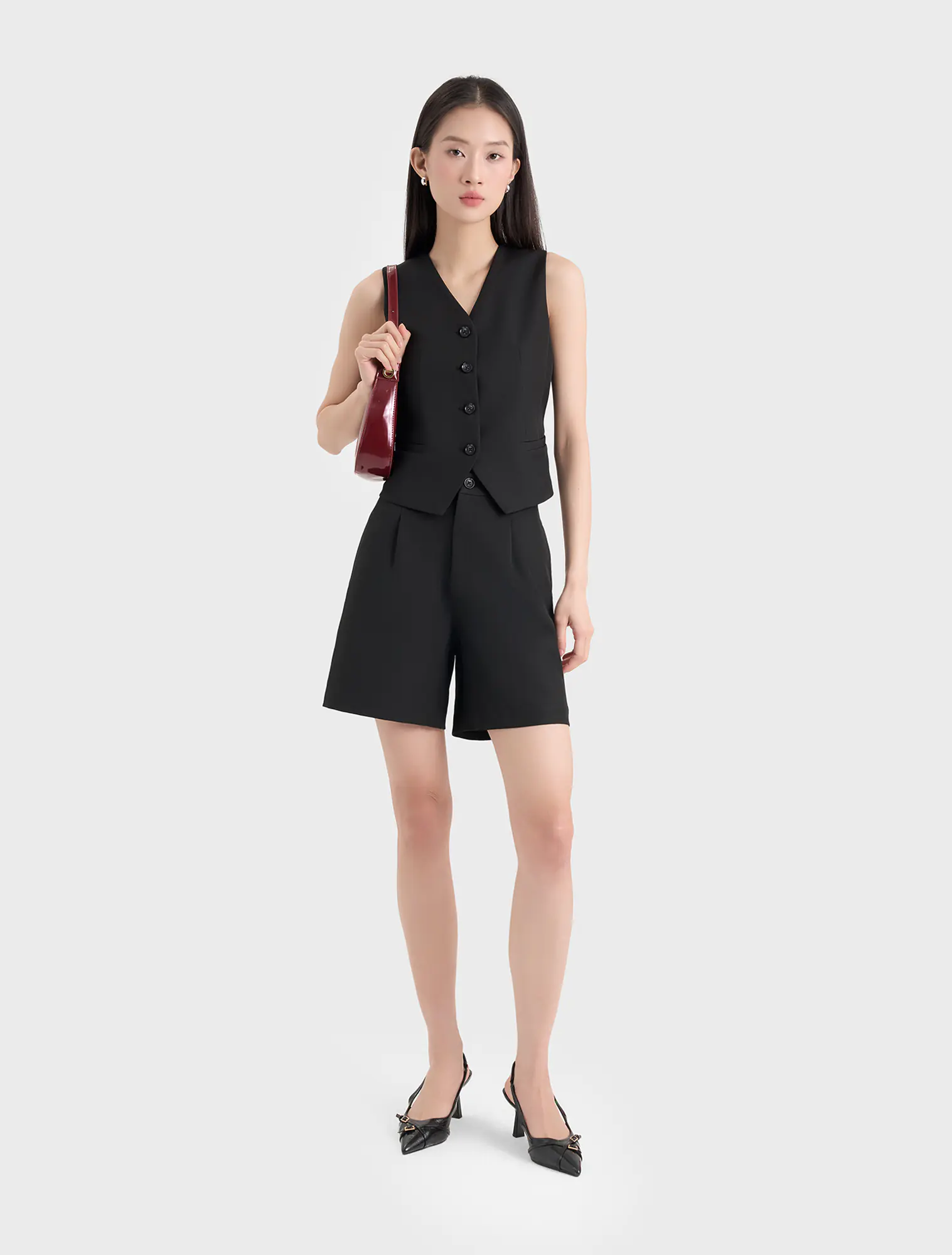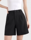Quần soóc nữ, dáng suông vừa. Chất liệu poly pha mềm mại, đứng phom, phù hợp môi trường văn phòng, công sở, dạo phố.