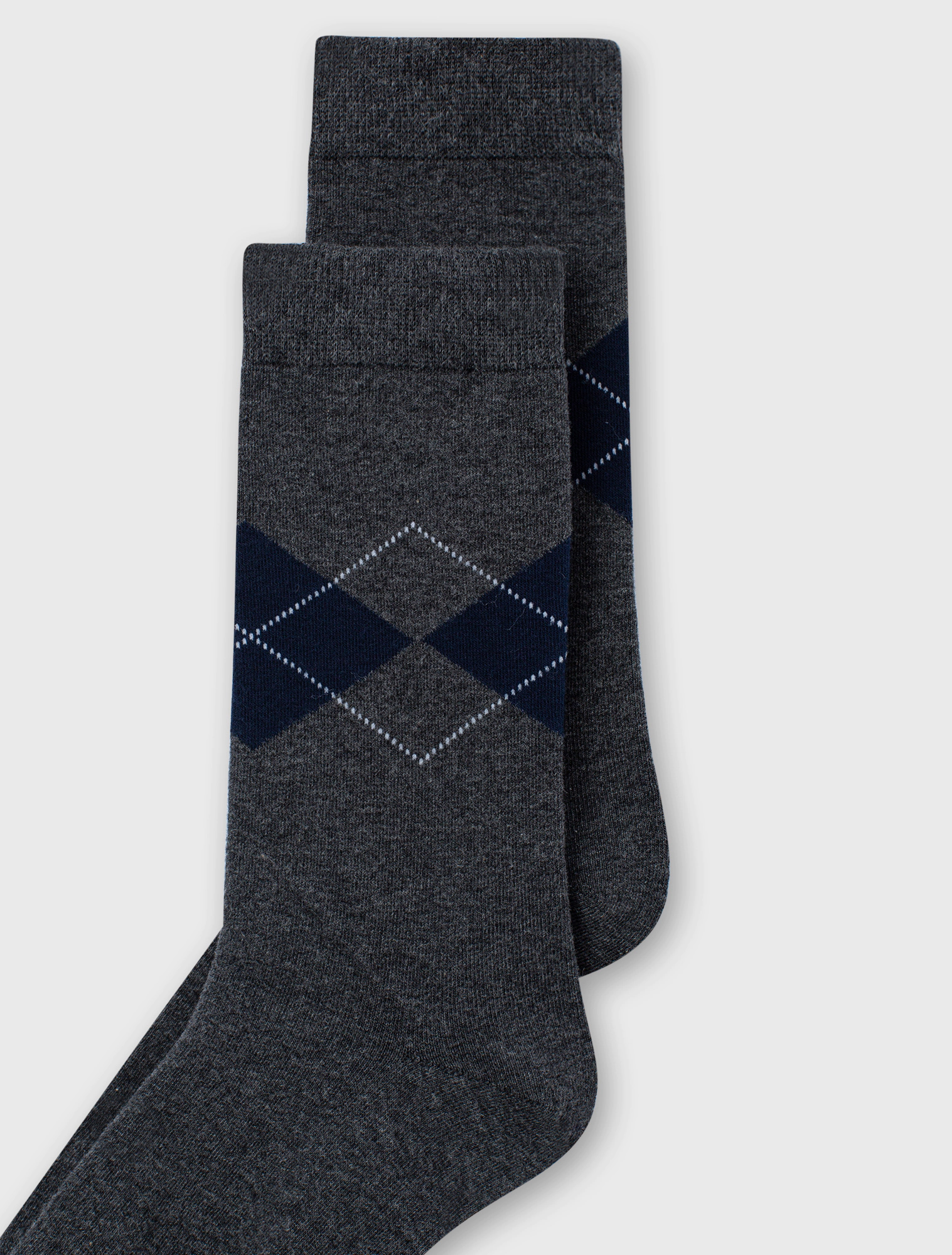Tất nam cổ cao kháng khuẩn, họa tiết kẻ trám