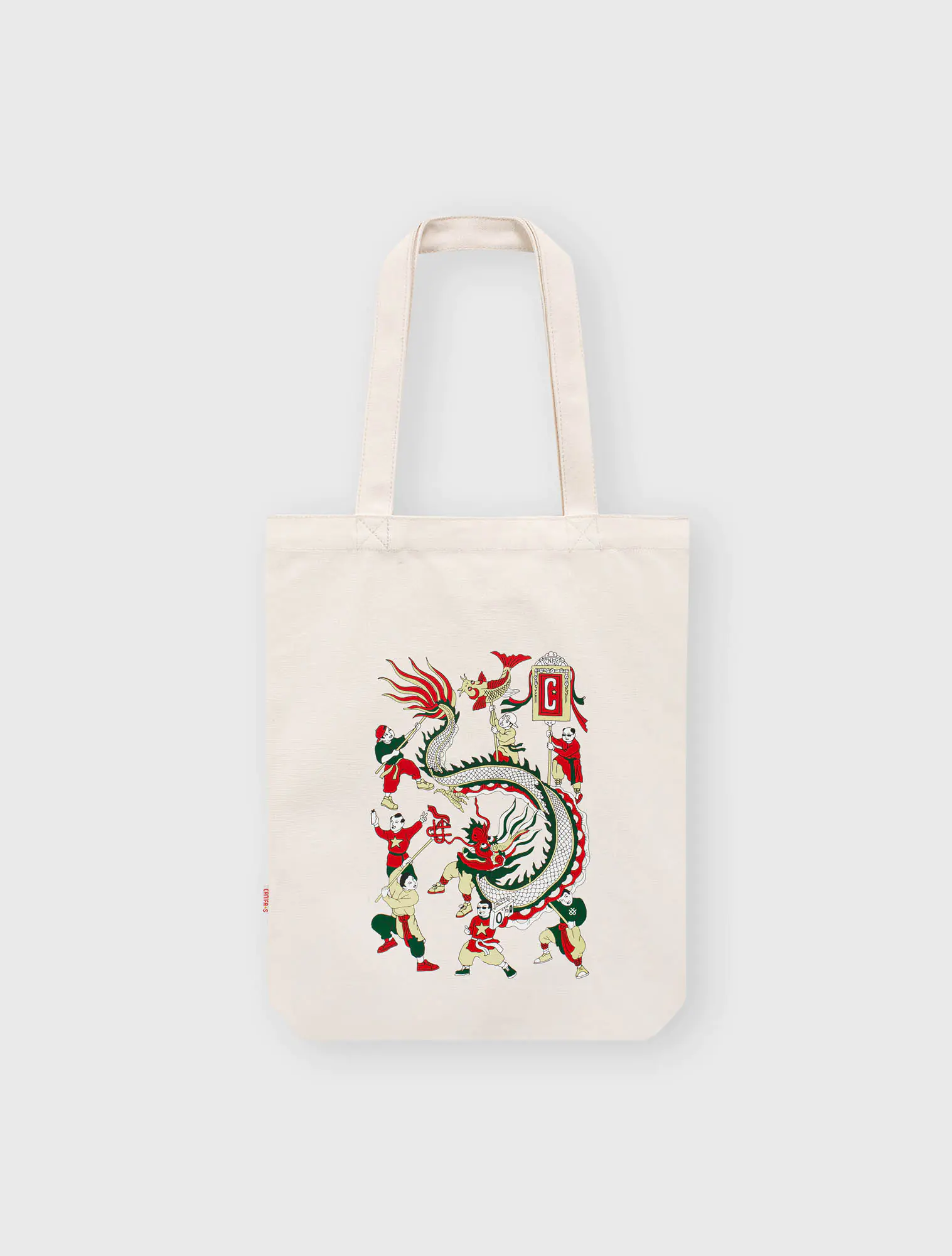 Hình ảnh múa rồng rực rỡ trong hội làng xưa và tố nữ trong tranh tứ bình được tái hiện lại trên hình in túi theo phong cách mới mẻ, trẻ trung. Từng đường nét, từng gam màu lễ hội đều mang theo âm hưởng văn hóa dân gian Bắc Bộ và hơi thở đương đại, mang đến một thông điệp gần gũi và đậm chất Việt.