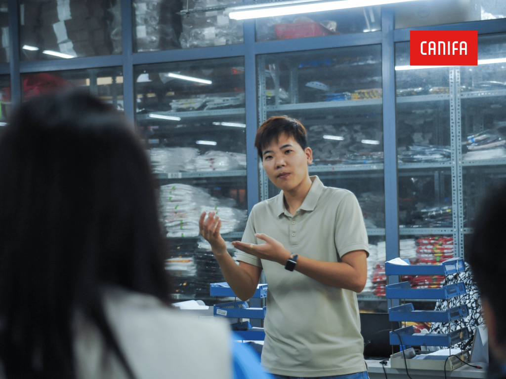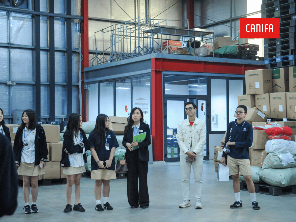 Sau phần chia sẻ, sinh viên được tận mắt quan sát quy trình sản xuất chuyên nghiệp – nơi từng sản phẩm Canifa được tạo ra với quy chuẩn nghiêm ngặt và sự tỉ mỉ trong từng chi tiết. Với hệ thống vận hành tự động, tất cả đã để lại ấn tượng mạnh mẽ với các bạn trẻ.– Một trải nghiệm trọn vẹn – nhiều cảm hứng nghề nghiệp
