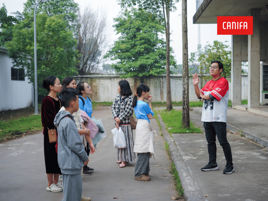 Tại nhà máy, các bạn được theo dõi từng công đoạn sản xuất, hiểu cách một sản phẩm Canifa được tạo nên qua quy trình nghiêm ngặt, công nghệ hiện đại và tinh thần trách nhiệm của cả đội ngũ. Những chia sẻ chân thật từ các cô chú đã giúp các bạn nhìn thấy phía sau một ngành nghề tưởng quen mà hóa ra rất rộng mở.