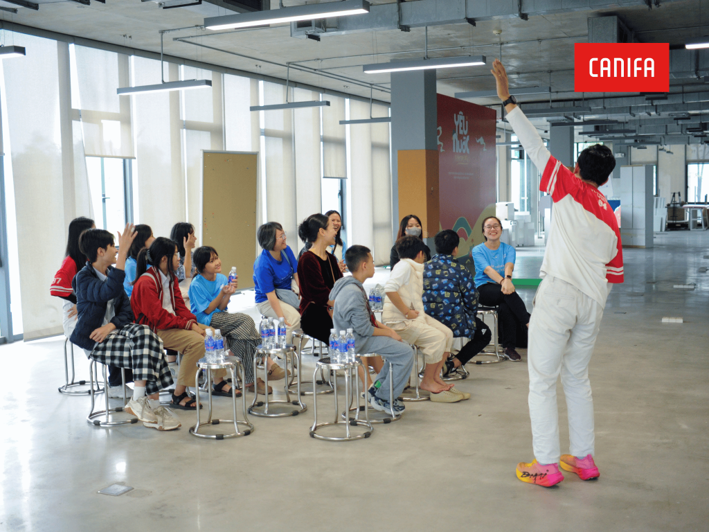 Không chỉ quan sát, các bạn học sinh còn được tham gia hoạt động nhóm, cùng thảo luận và chia sẻ những điều thú vị học được về lịch sử, tầm nhìn và sứ mệnh xây dựng một thương hiệu thời trang Việt Nam bền vững của Canifa. Không khí rộn ràng, tràn đầy năng lượng khiến buổi tham quan trở thành một trải nghiệm “vừa học vừa chơi” khó quên!