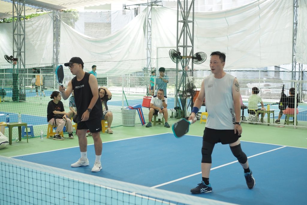 rên sân Pickleball, không khí cũng nóng không kém với hai nội dung Đơn Nam và Đôi Nam Nữ. Từng đường vợt mạnh mẽ, những pha cứu bóng ngoạn mục và tiếng cổ vũ không ngớt đã biến sân đấu thành một bữa tiệc thể thao tràn đầy năng lượng.