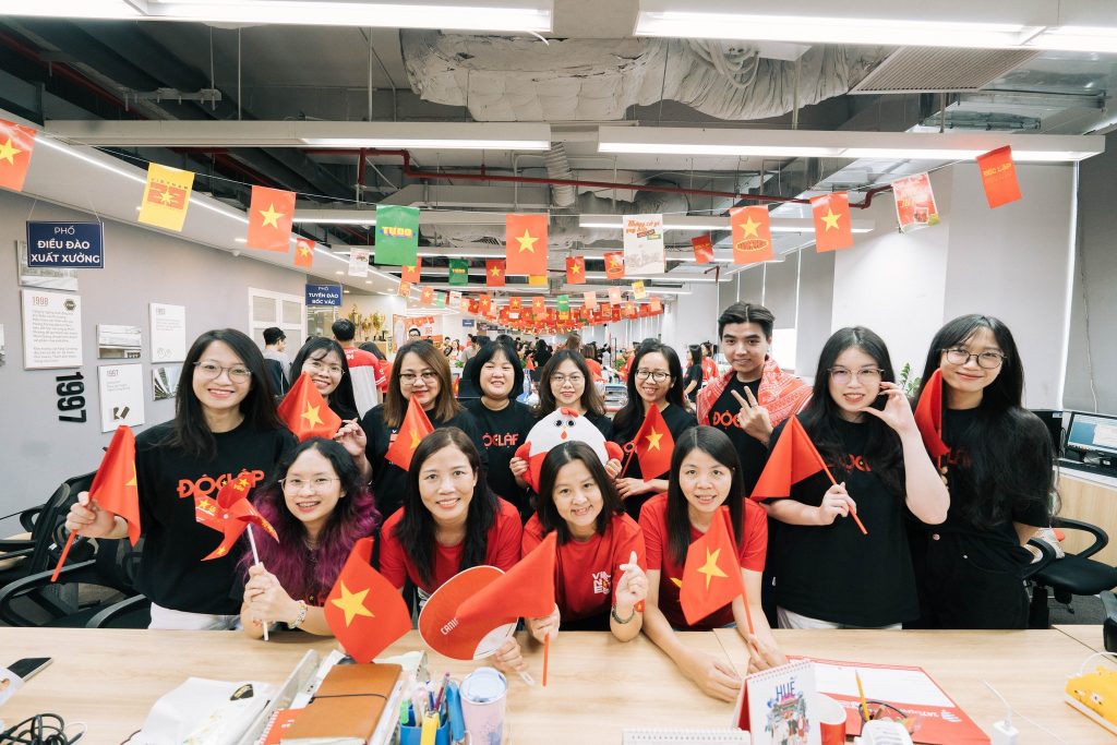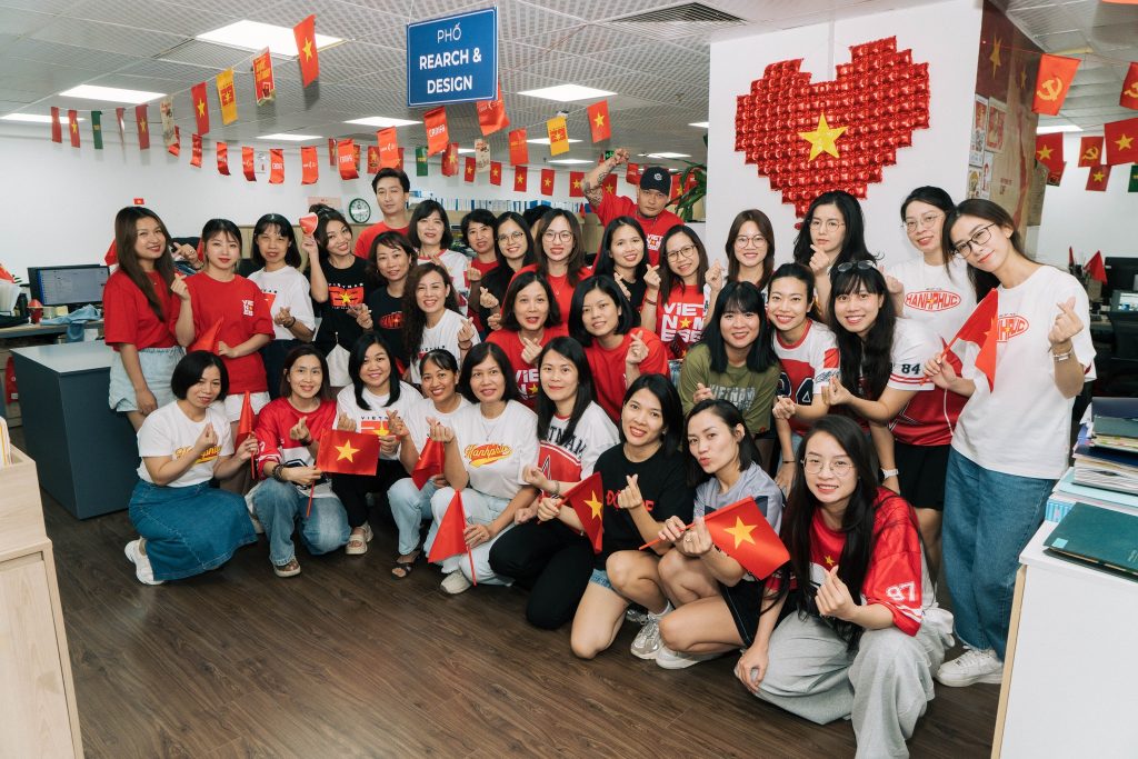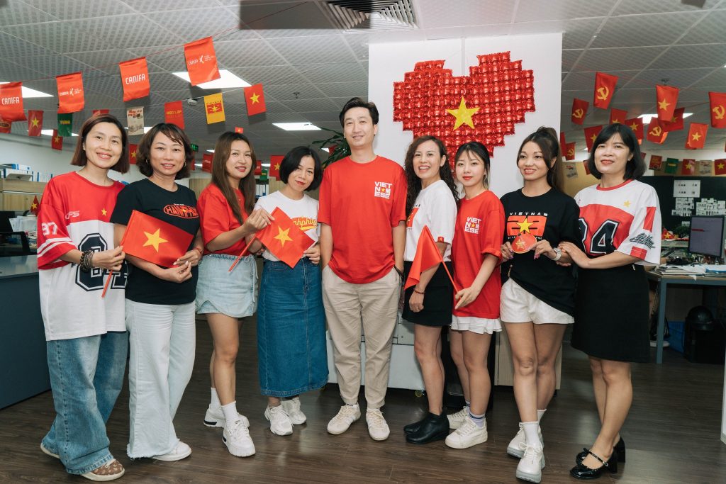 Trong sắc áo Canifa S, từng nụ cười, từng ánh mắt đều ánh lên tinh thần “Yêu nước từ trong nôi”. Hơn 200 ACE đã cùng nhau biến nơi làm việc hằng ngày thành một không gian ngập tràn khí thế hào hùng, sôi nổi. Các phòng/ban quây quần bên nhau, những cánh tay giơ cao lá cờ Tổ quốc, những nụ cười rạng rỡ. Những bức hình profile cá nhân hay tập thể khối/phòng/ban không chỉ ghi lại hình ảnh mà còn gói trọn niềm kiêu hãnh, sự tự hào và sức trẻ đang tuôn chảy trong mỗi thành viên.