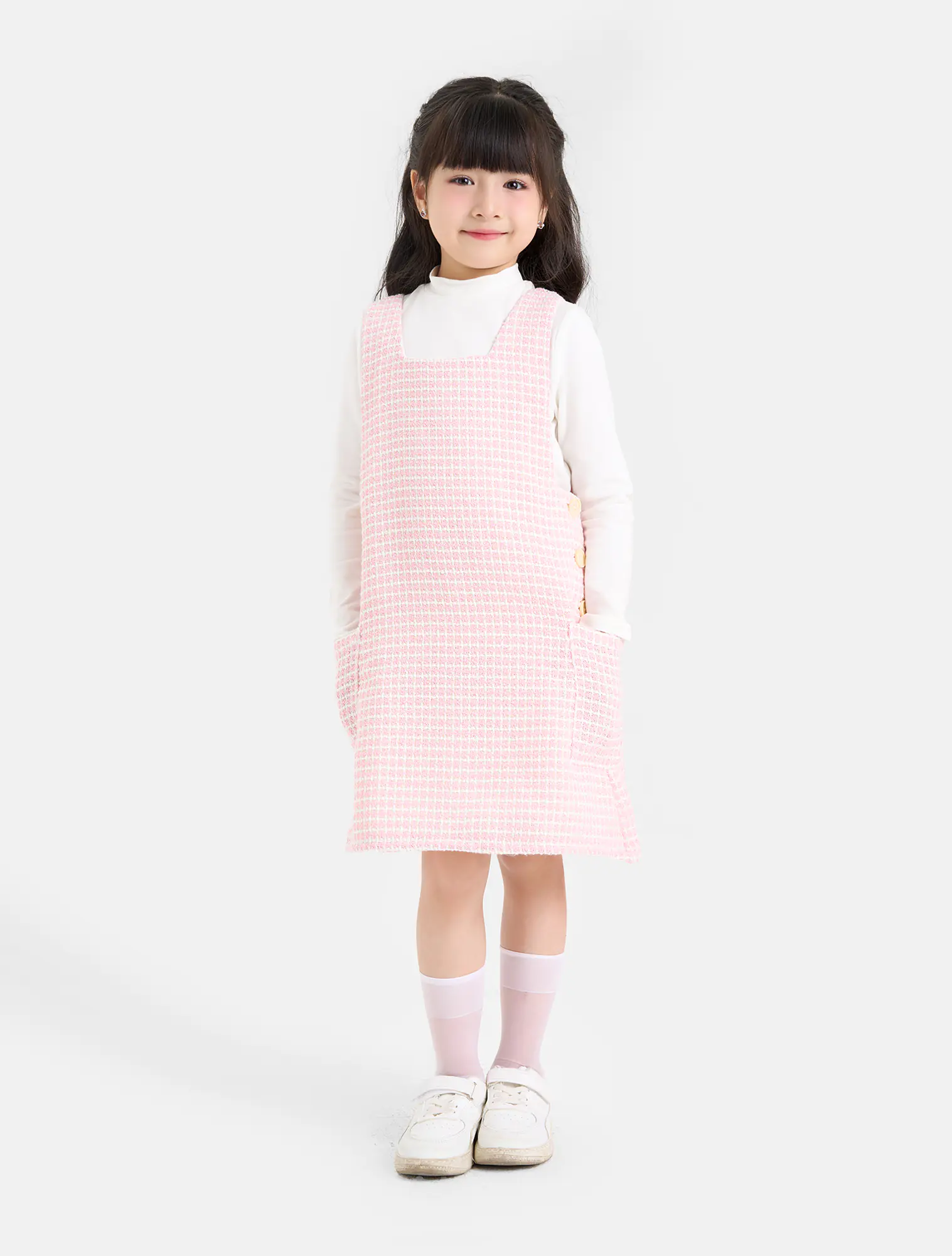Váy gilet bé gái. Chất liệu tweed rất mềm mại phù hợp với thời tiết giao mùa và cho các dịp lễ Tết cuối năm.