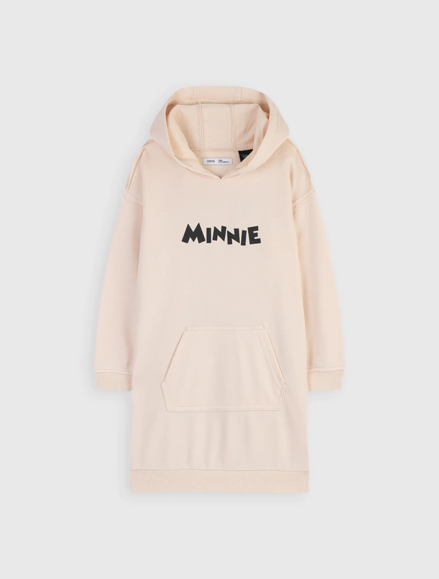 Dáng shift, có mũ, tay dài, hình in trước ngực và sau lưng, túi kangaroo