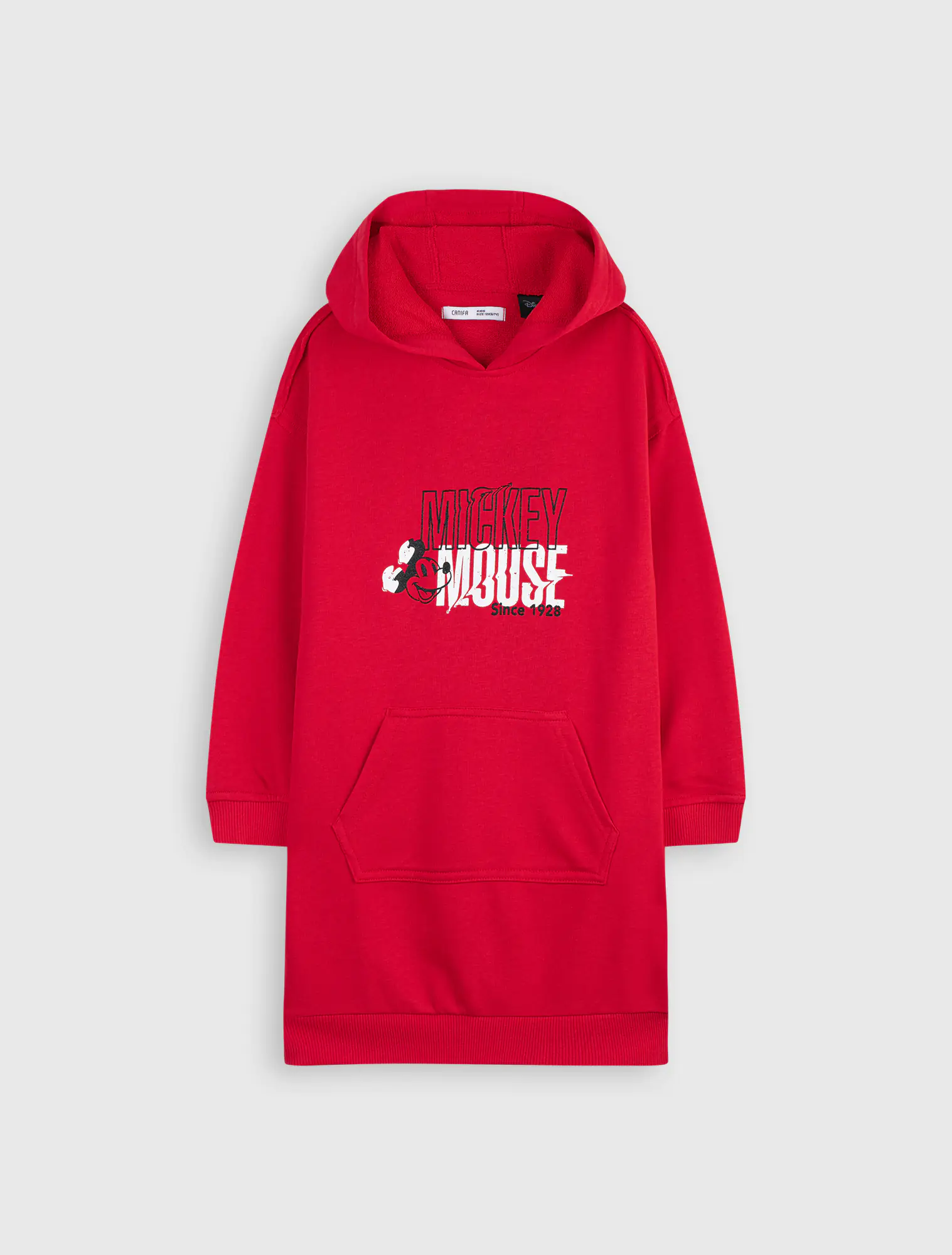 Dáng shift, có mũ, tay dài, hình in trước ngực và sau lưng, túi kangaroo