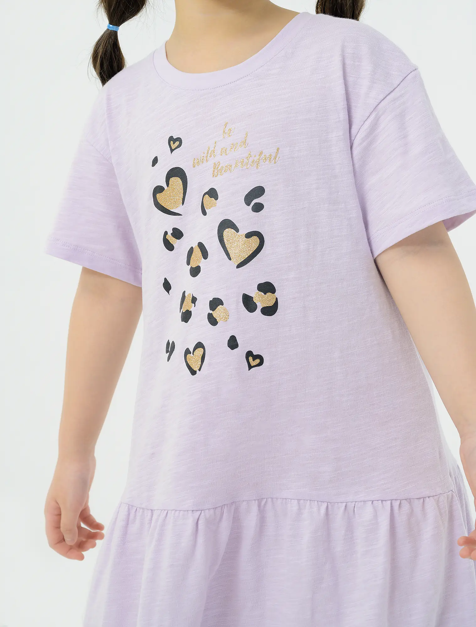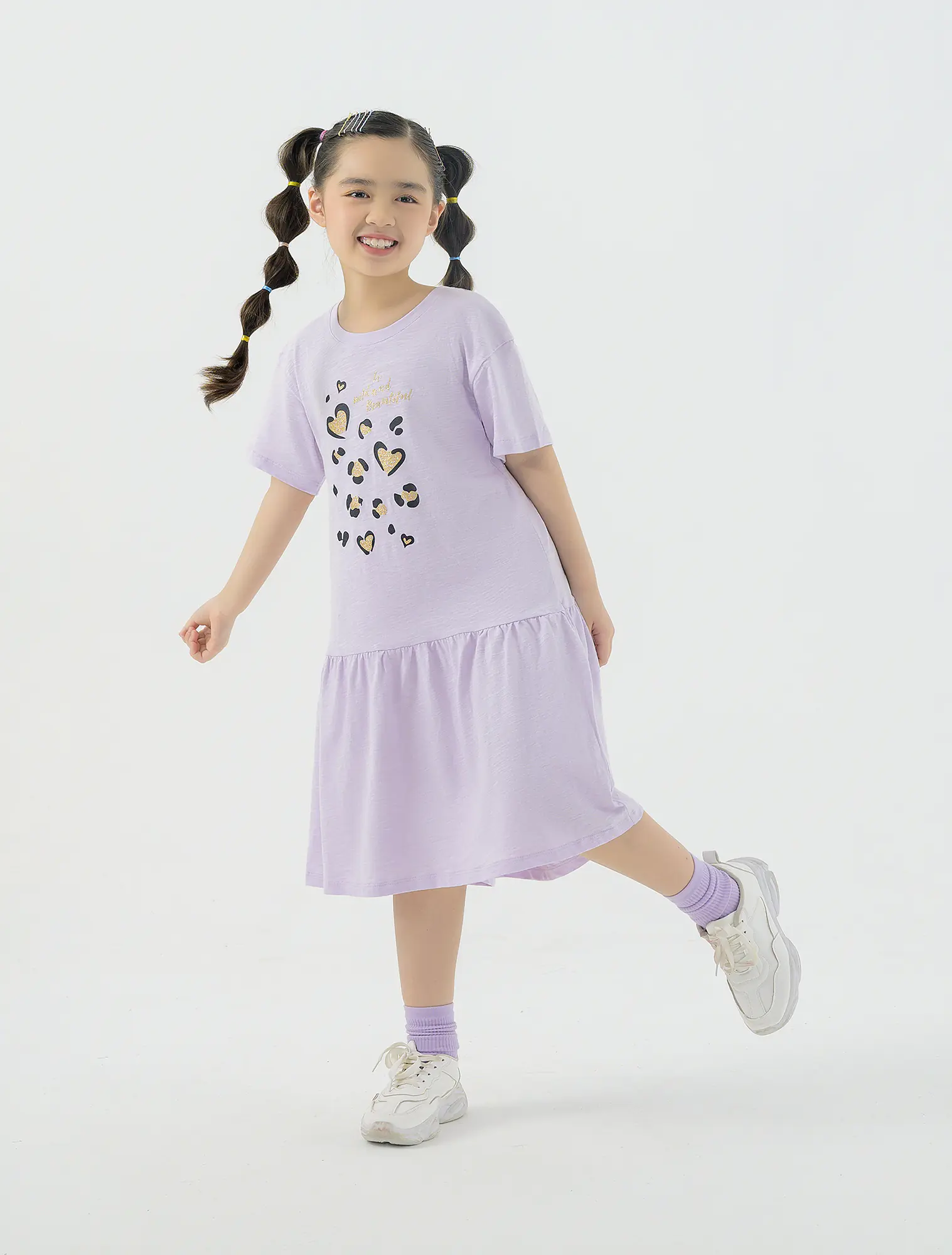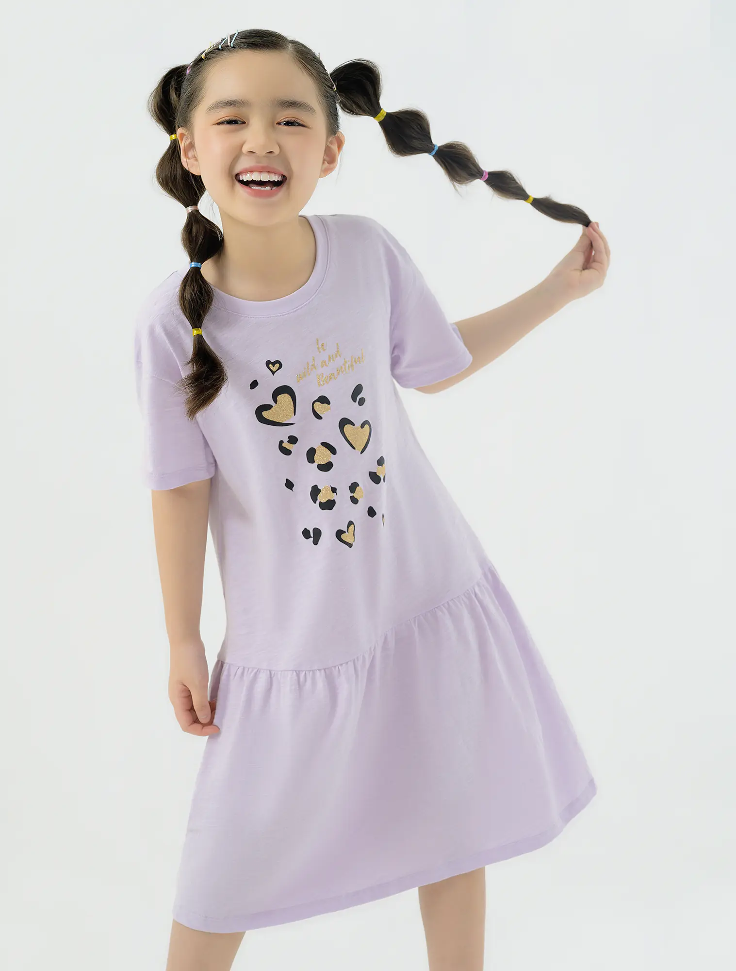 Váy liền bé gái in hình họa tiết màu sắc dễ thương chất liệu 100% cotton