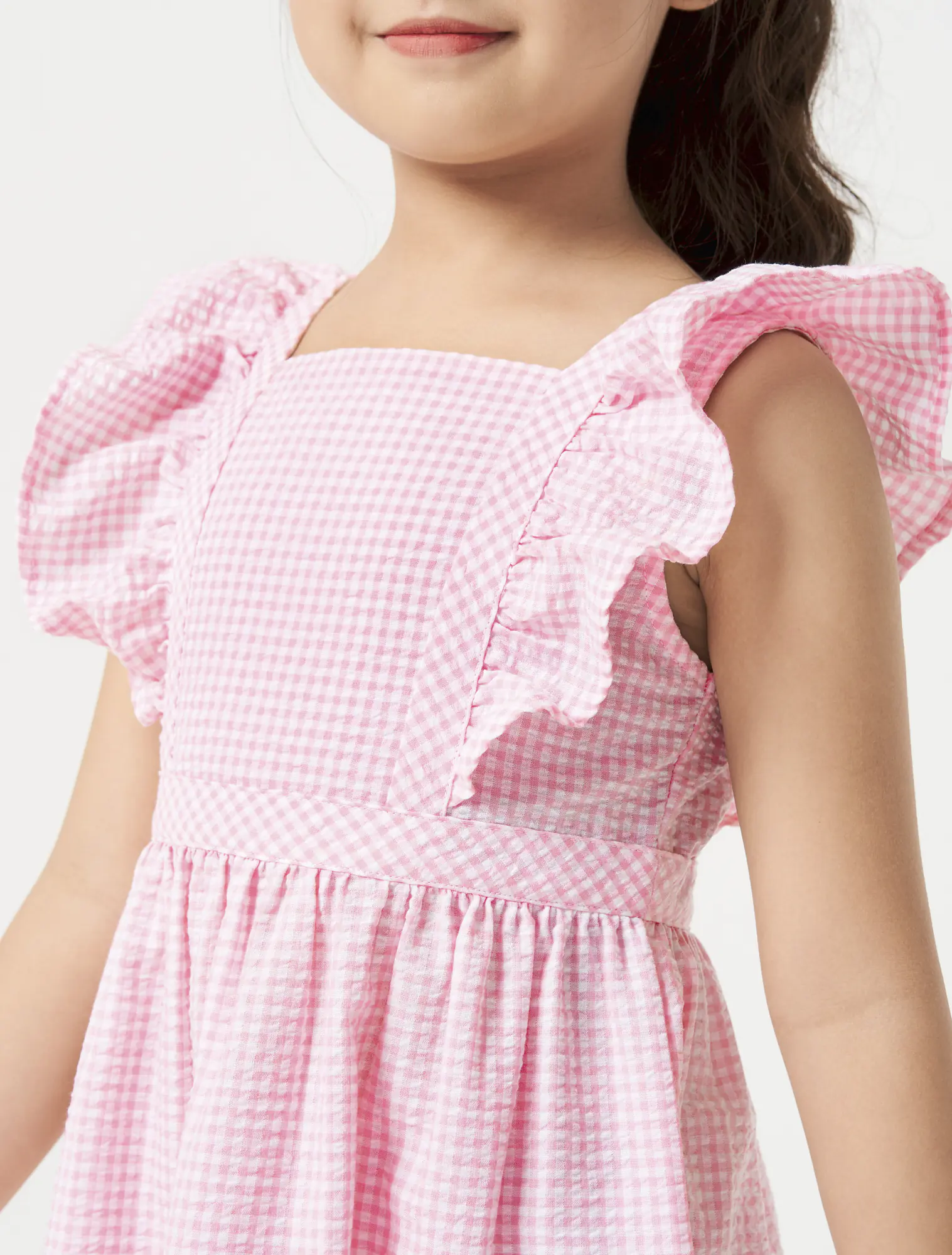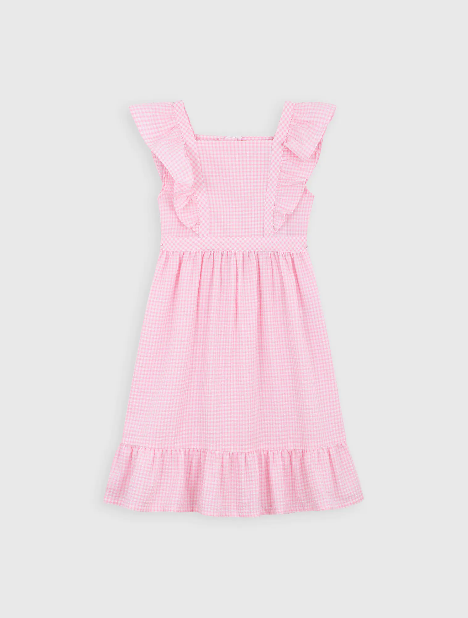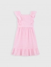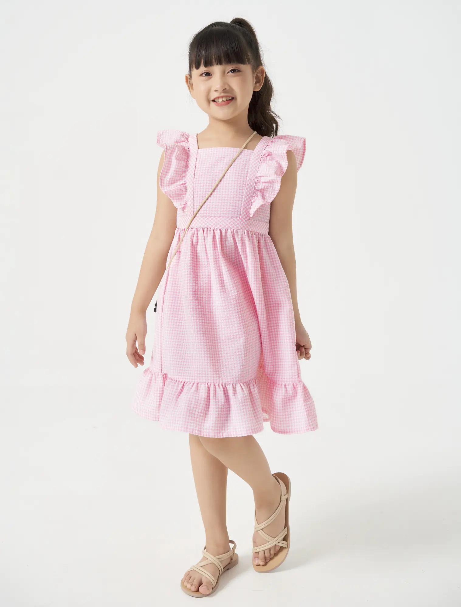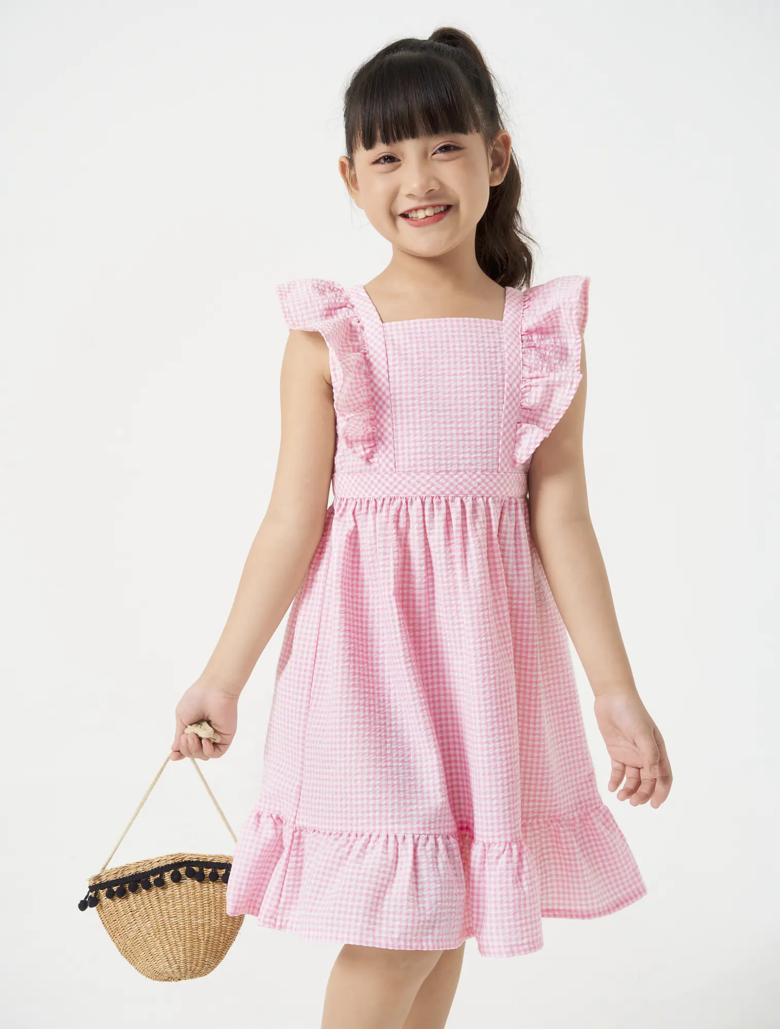 Váy liền chất liệu polyester pha, cổ vuông, tay cánh tiên