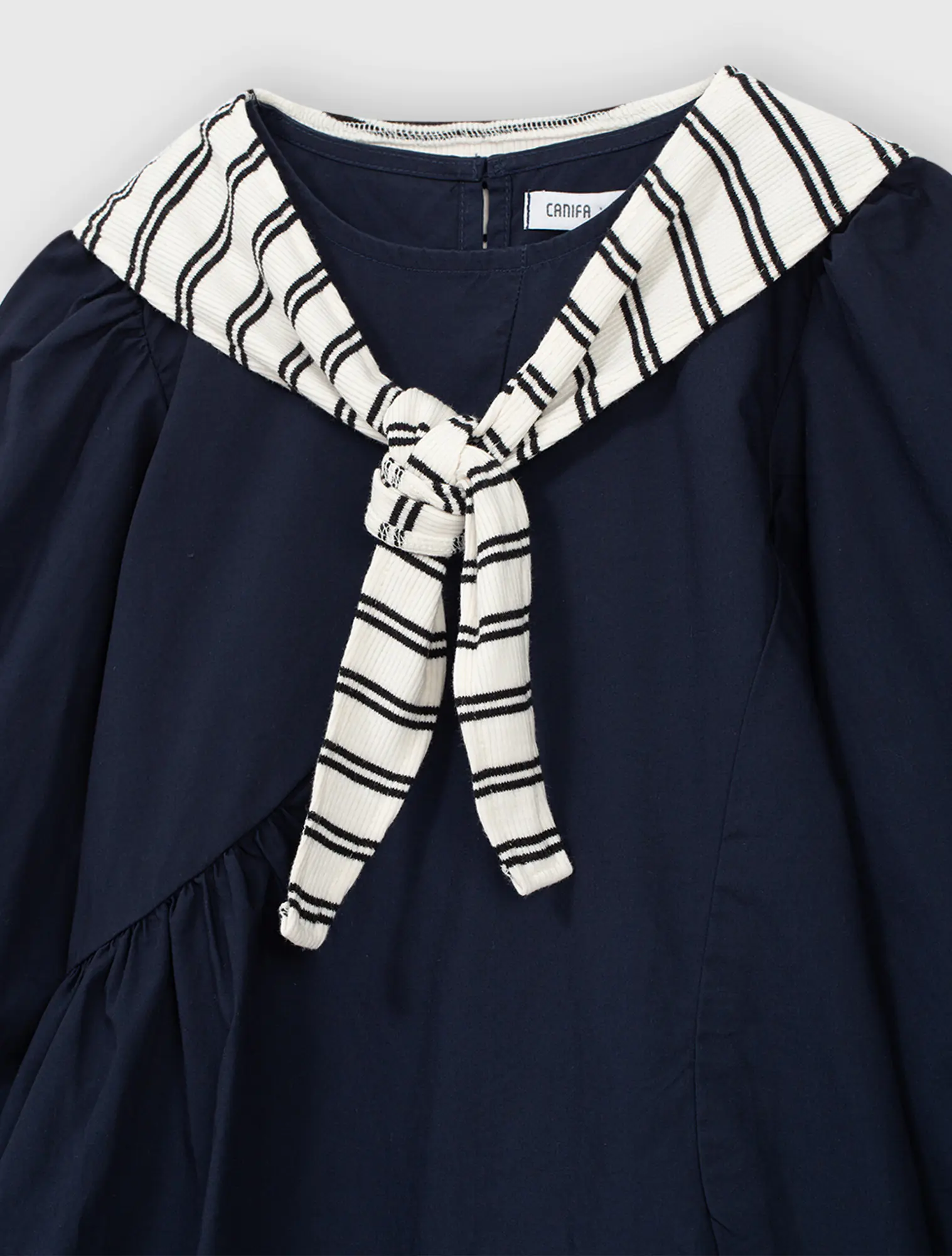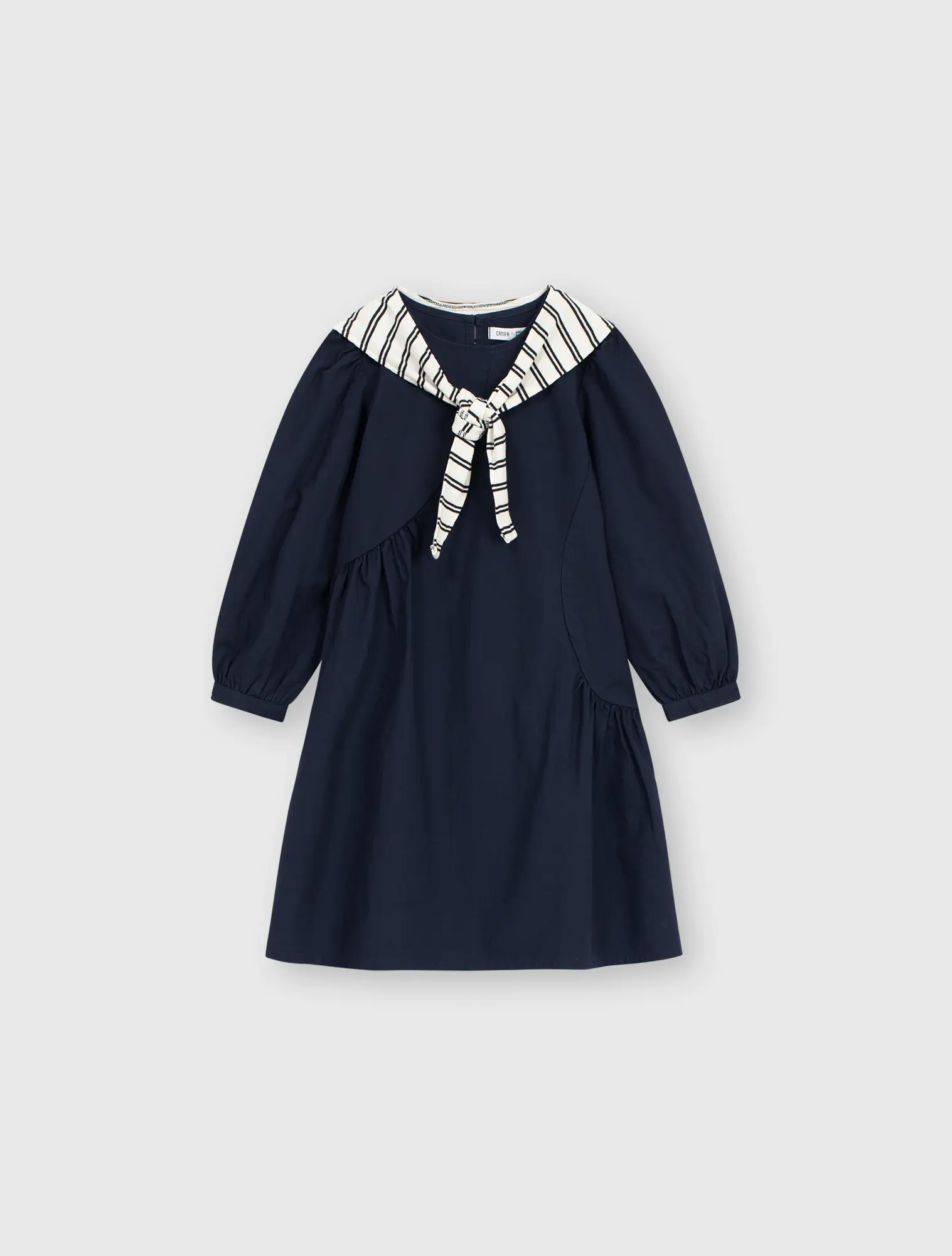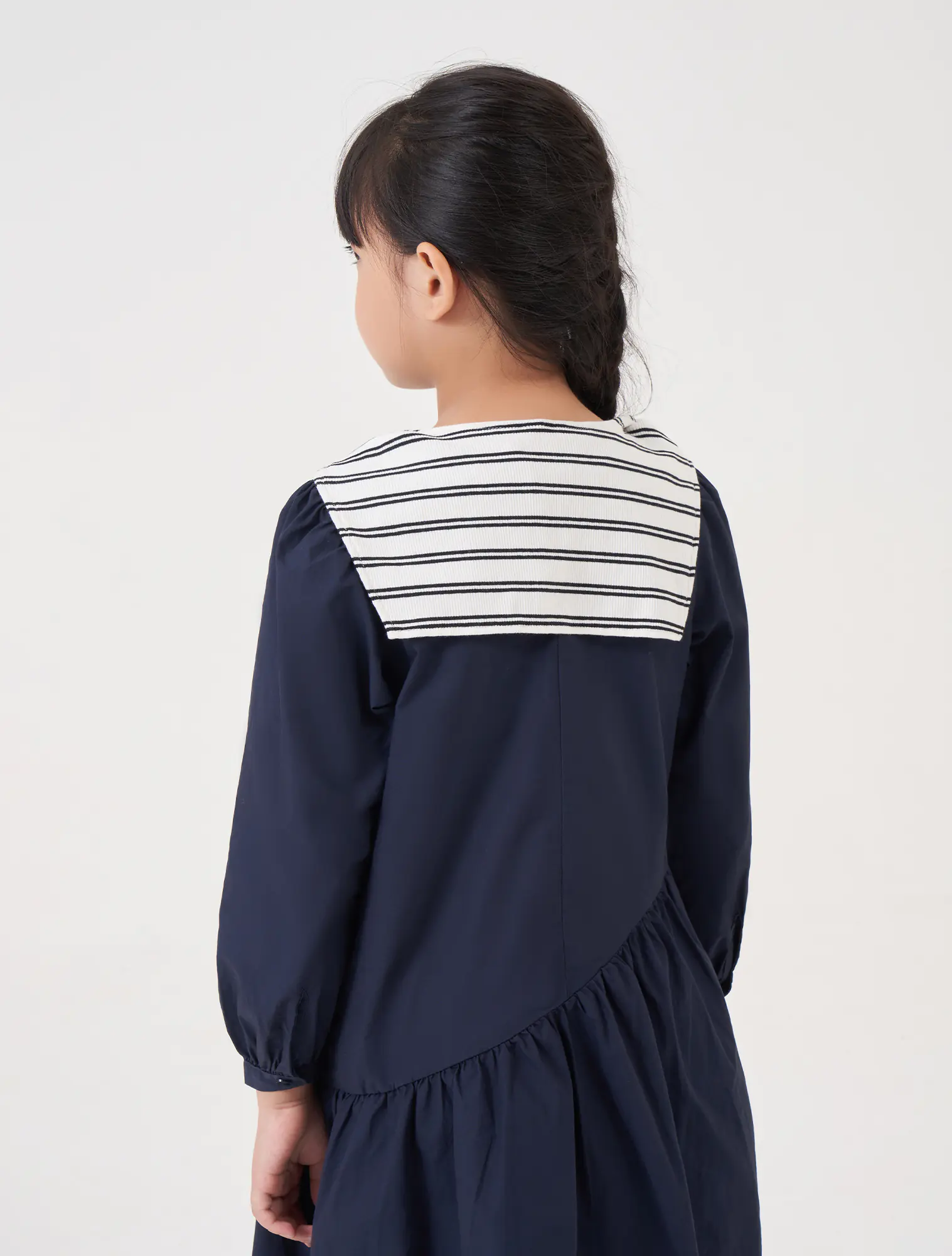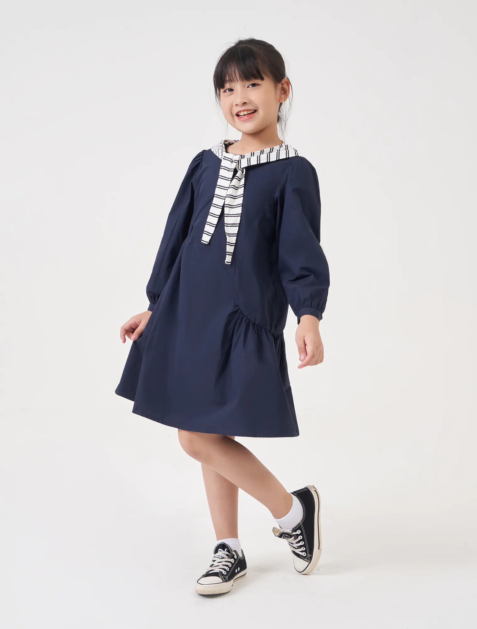 Váy liền dài tay bé gái. Chi tiết khăn choàng vai nữ tính, phù hợp với nhiều hoàn cảnh sử dụng.