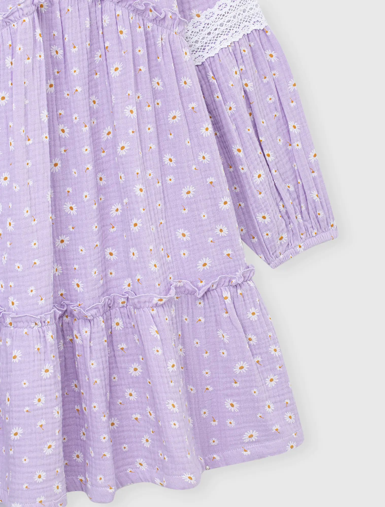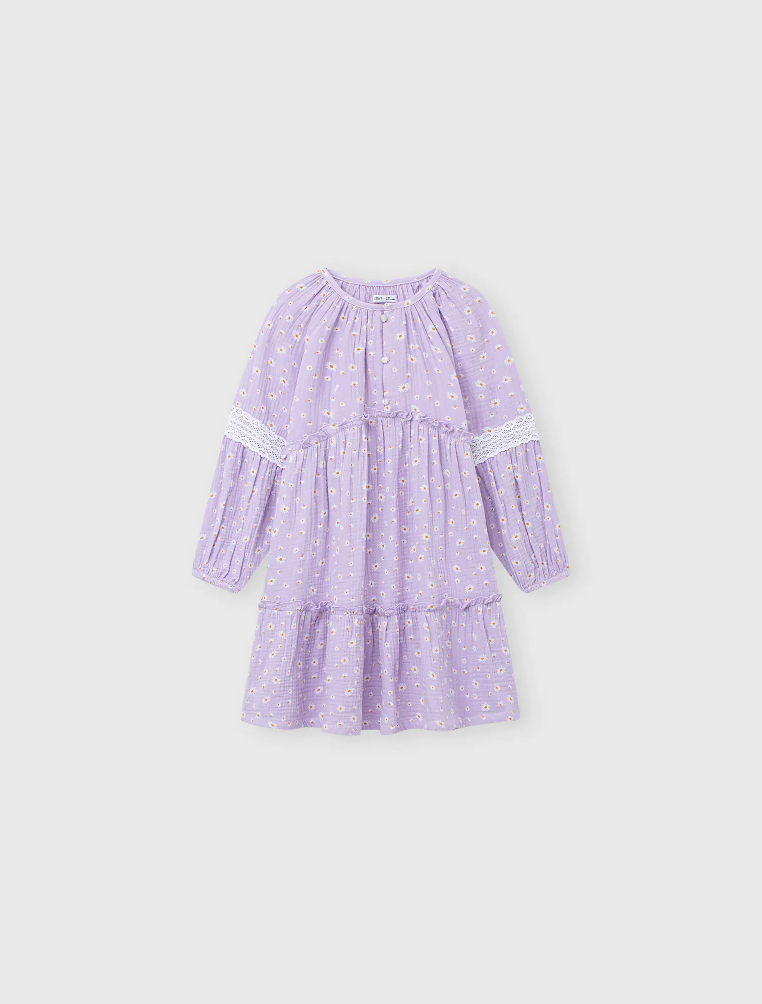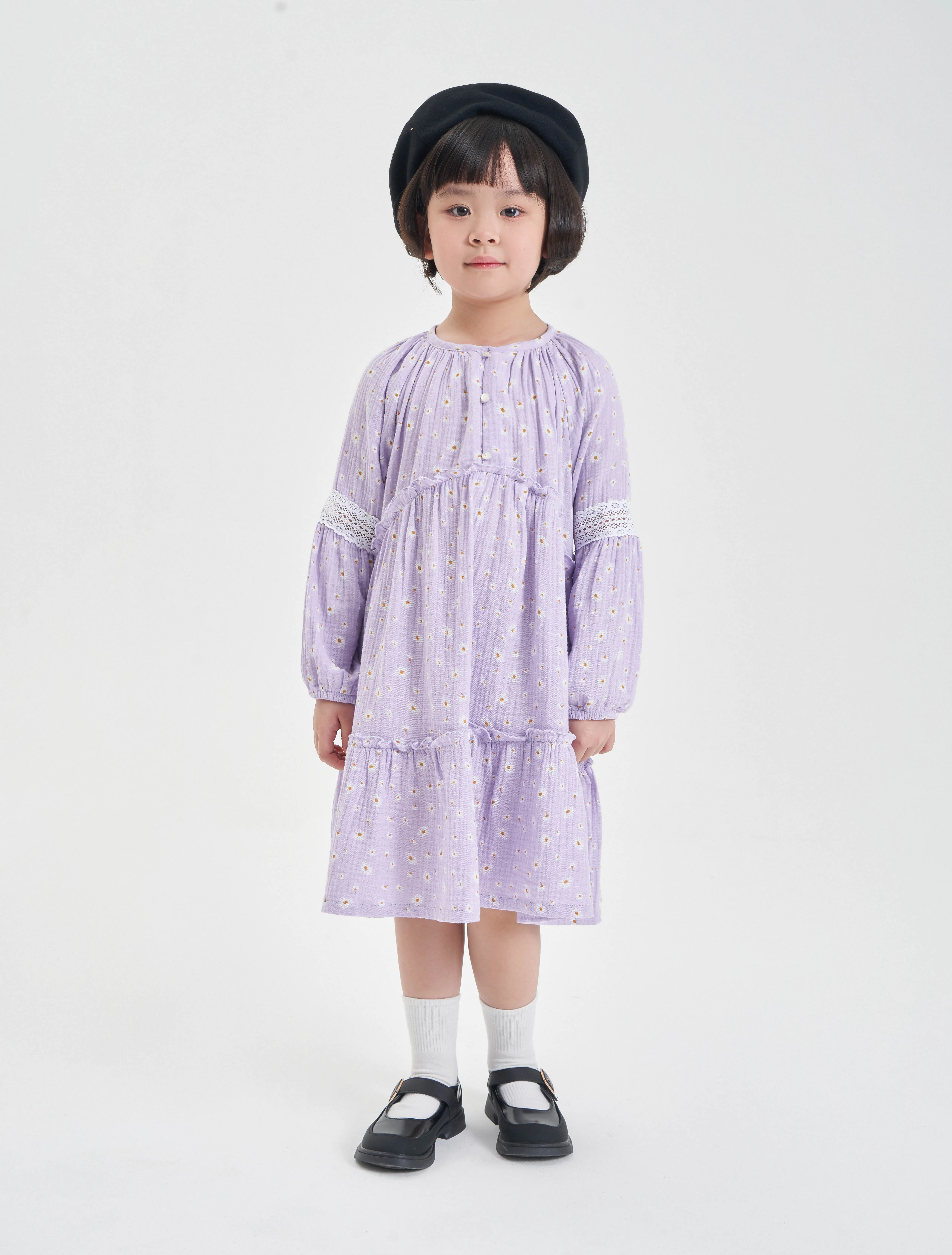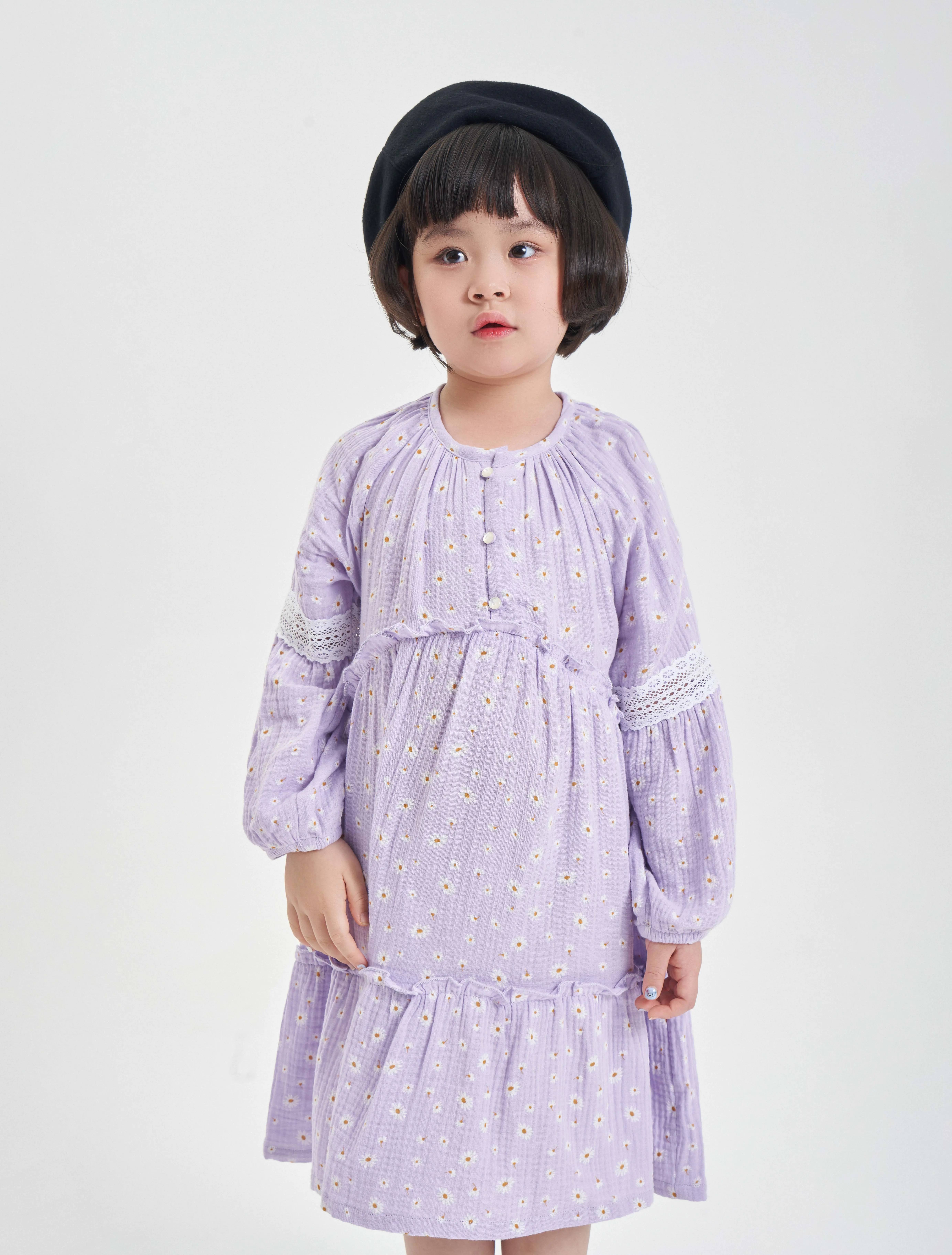 Váy liền dài tay bé gái phối ren ở tay mang đến sự nữ tính. Chất liệu Muslin mềm mại tạo cảm giác dễ chịu. Sản phẩm rất phù hợp với thời tiết giao mùa.