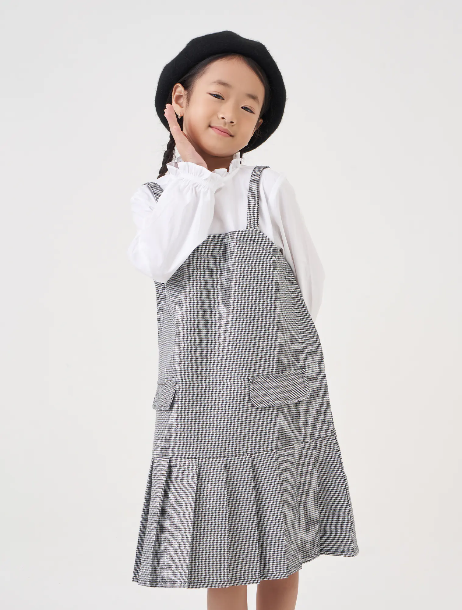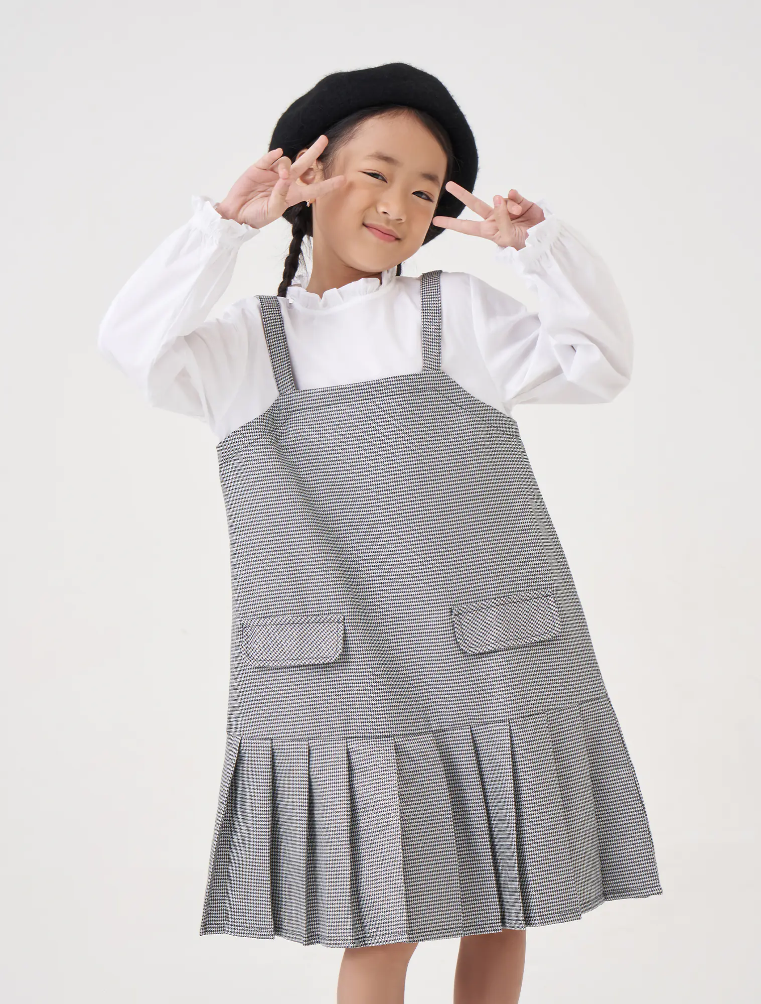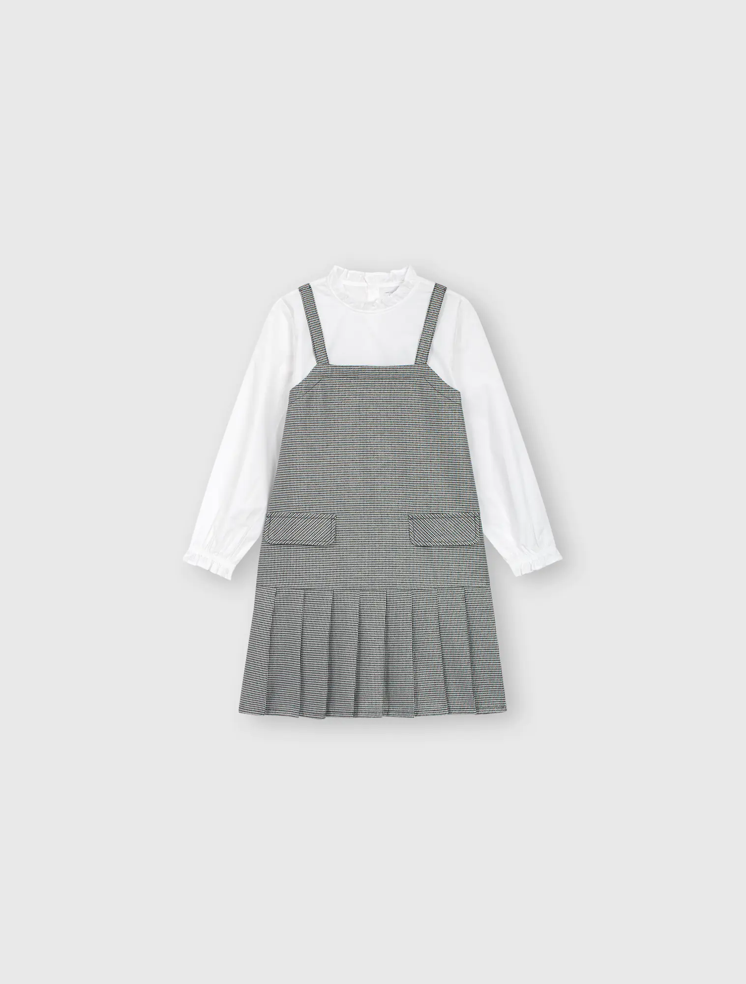 Váy dài tay bé gái phối vải poplin tạo sự năng động nhưng vẫn có sự nữ tính với tầng váy xếp nếp. Sản phẩm phù hợp với những hoạt động vào thời tiết giao mùa.