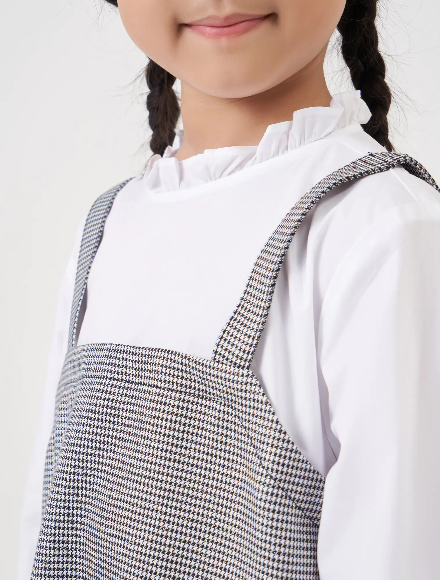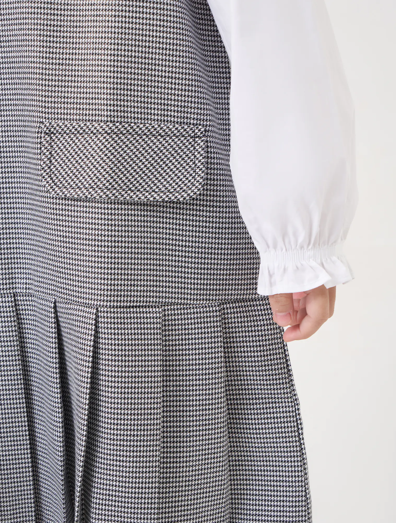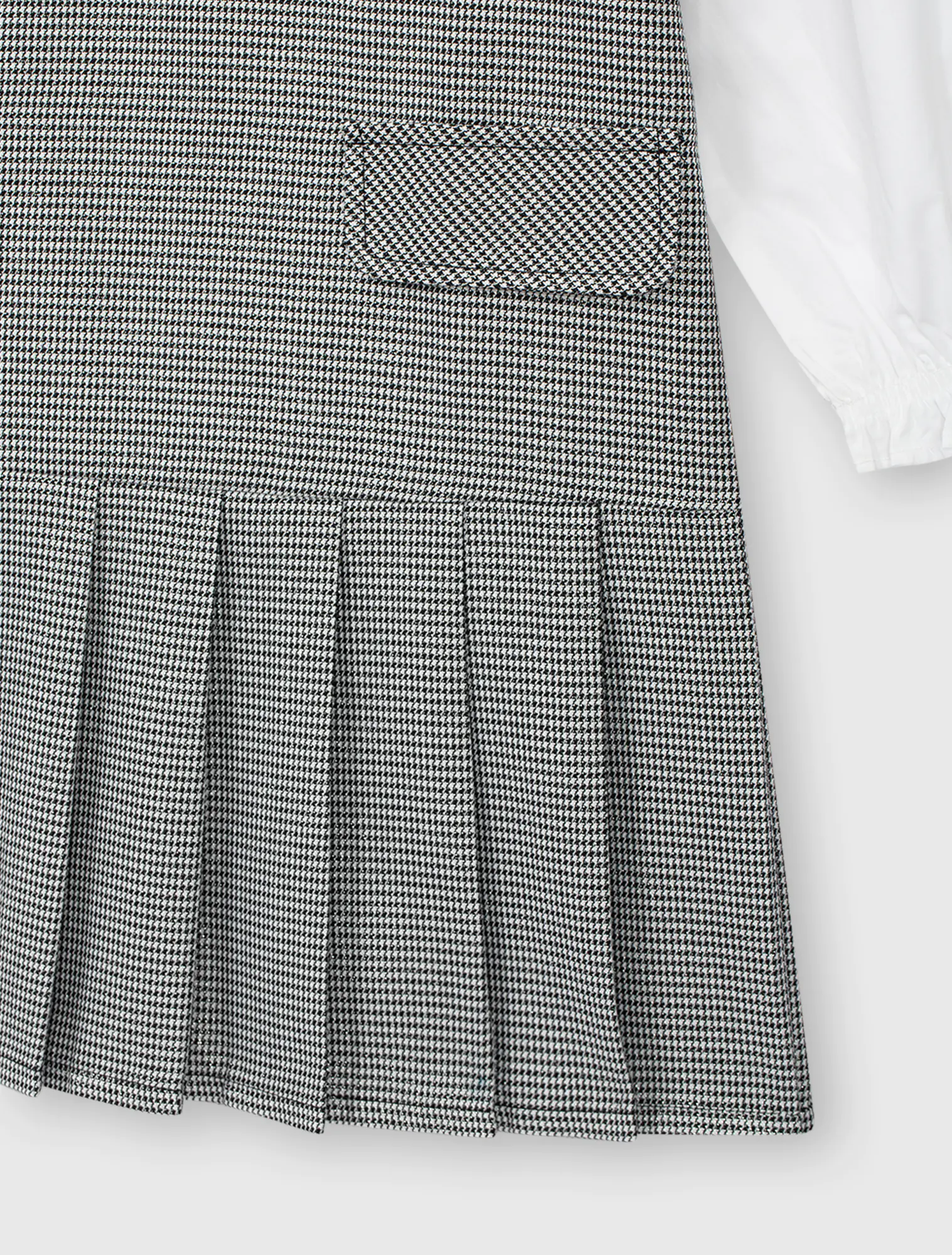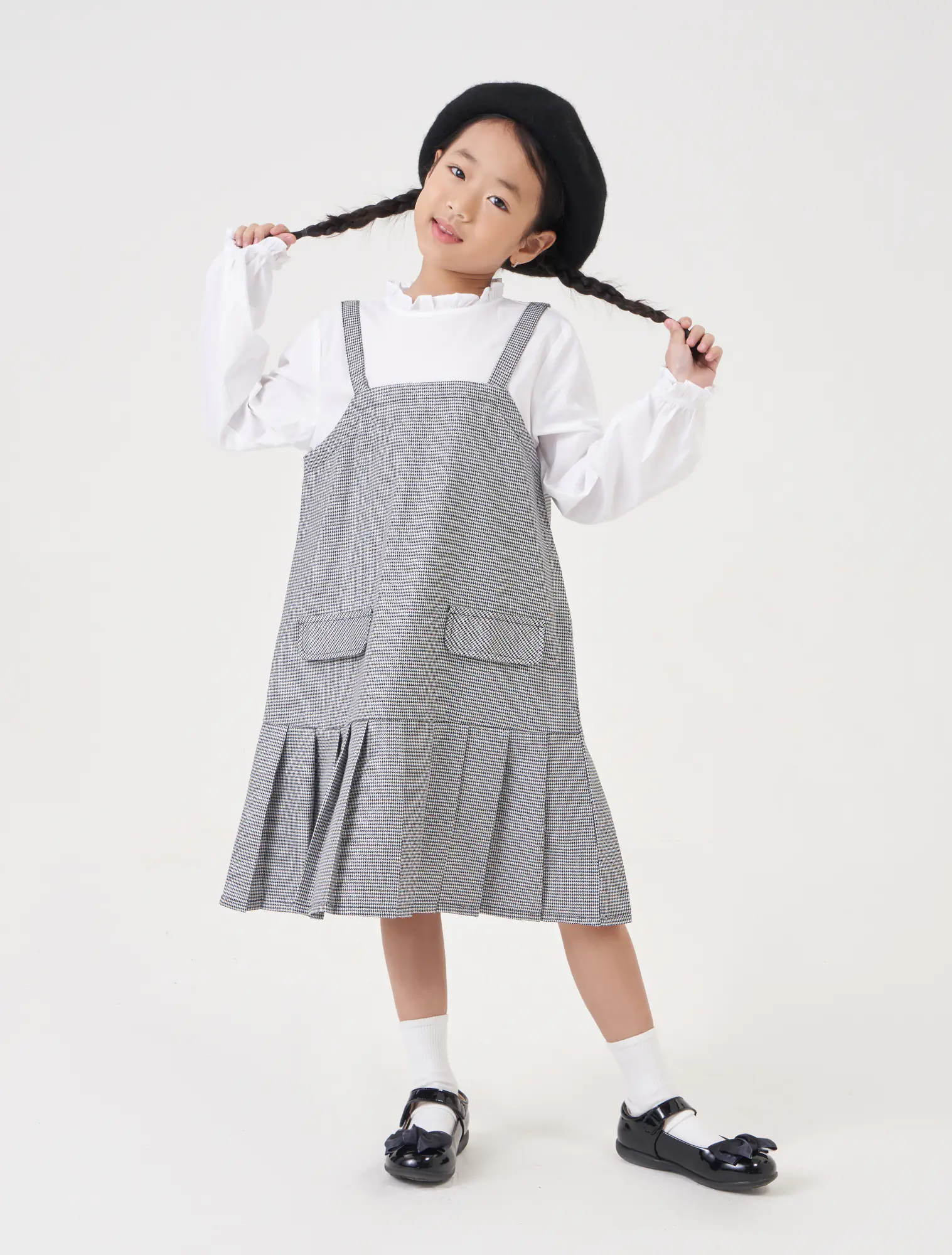 Váy dài tay bé gái phối vải poplin tạo sự năng động nhưng vẫn có sự nữ tính với tầng váy xếp nếp. Sản phẩm phù hợp với những hoạt động vào thời tiết giao mùa.