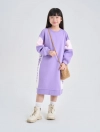 Váy nỉ bé gái có hình in Sport, phối màu hài hòa nhưng vẫn tạo sự năng động.