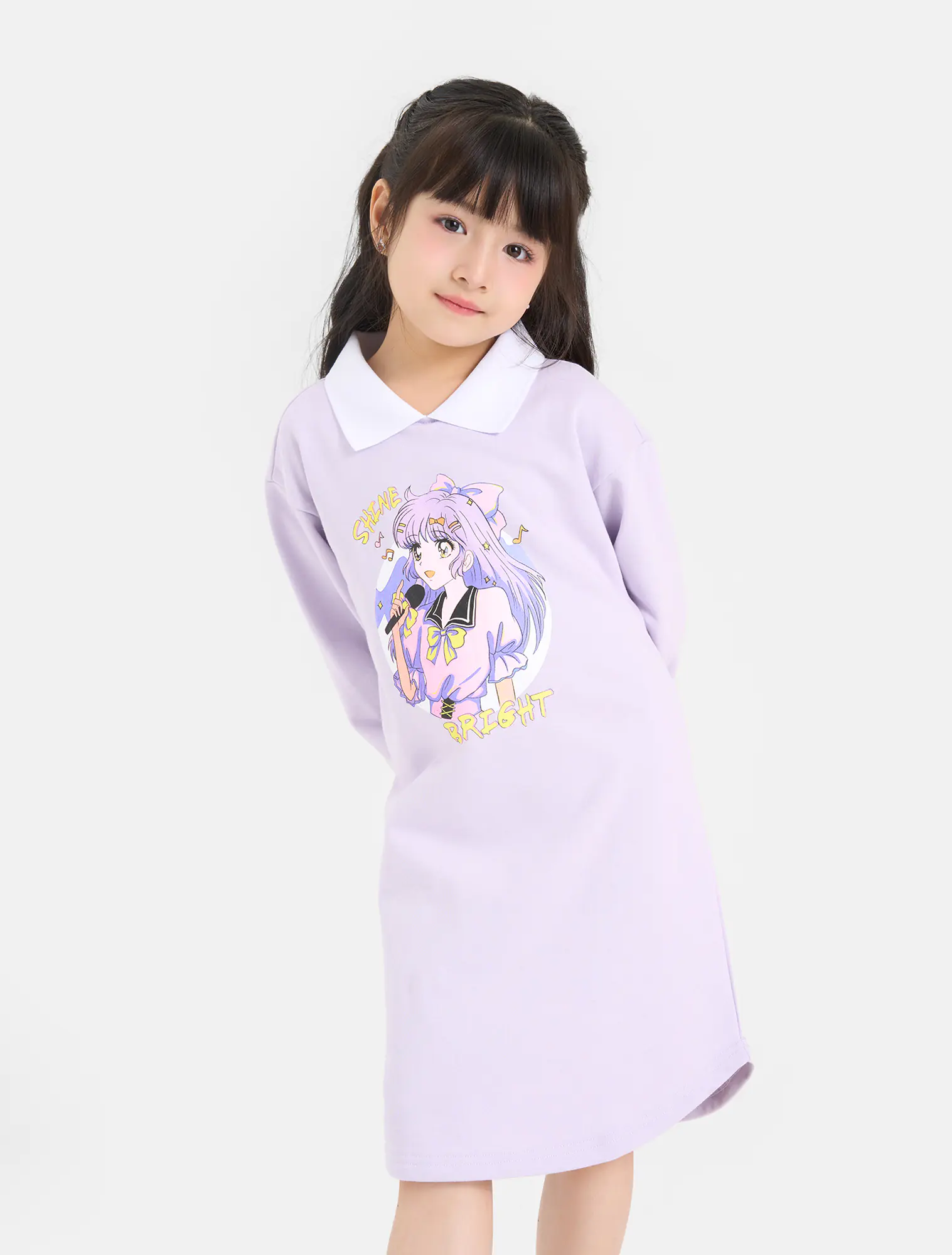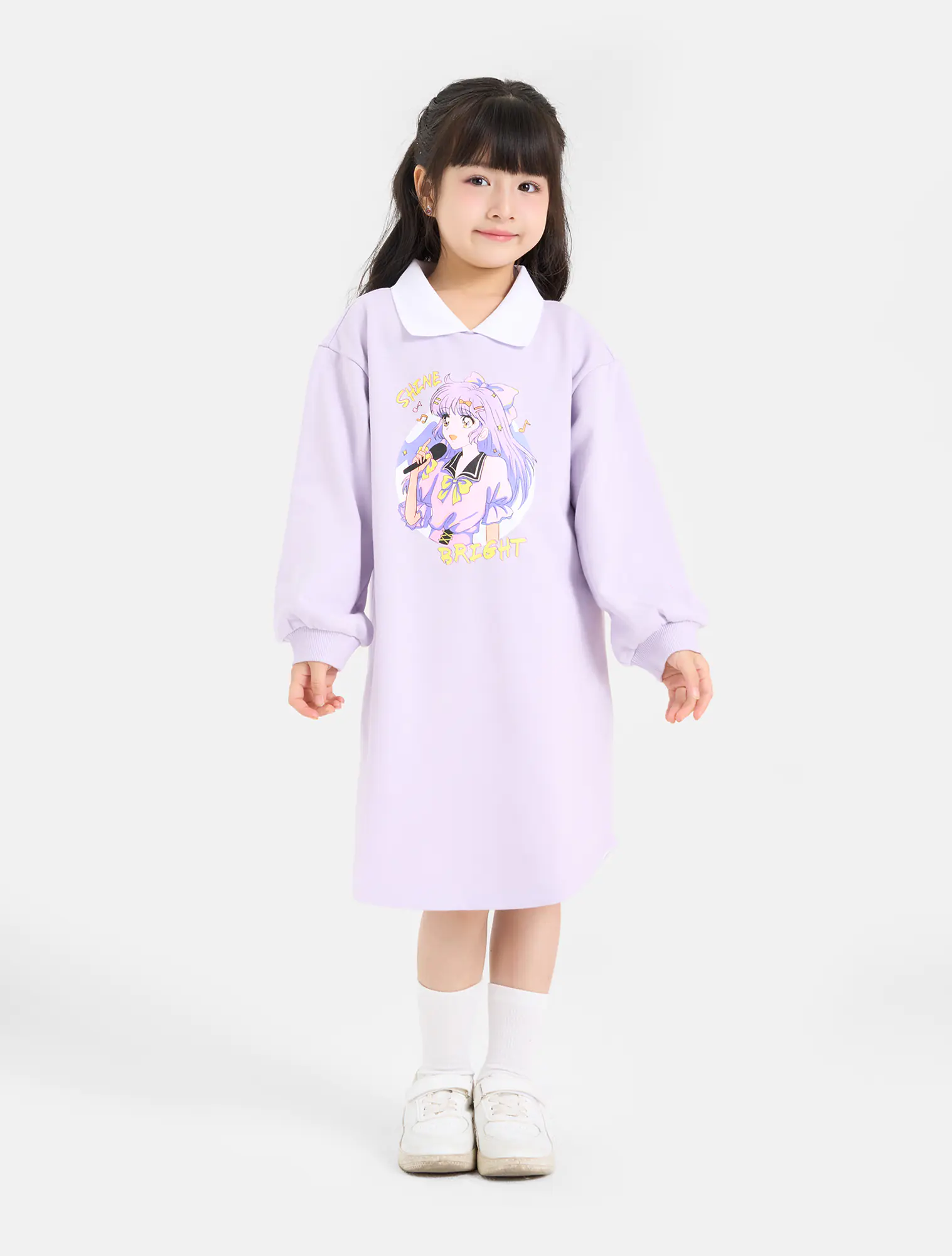 Váy liền bé gái có hình in. Chi tiết cổ bẻ và hình in ấn tượng. Phù hợp với nhiều hoàn cảnh sử dụng cho bé gái