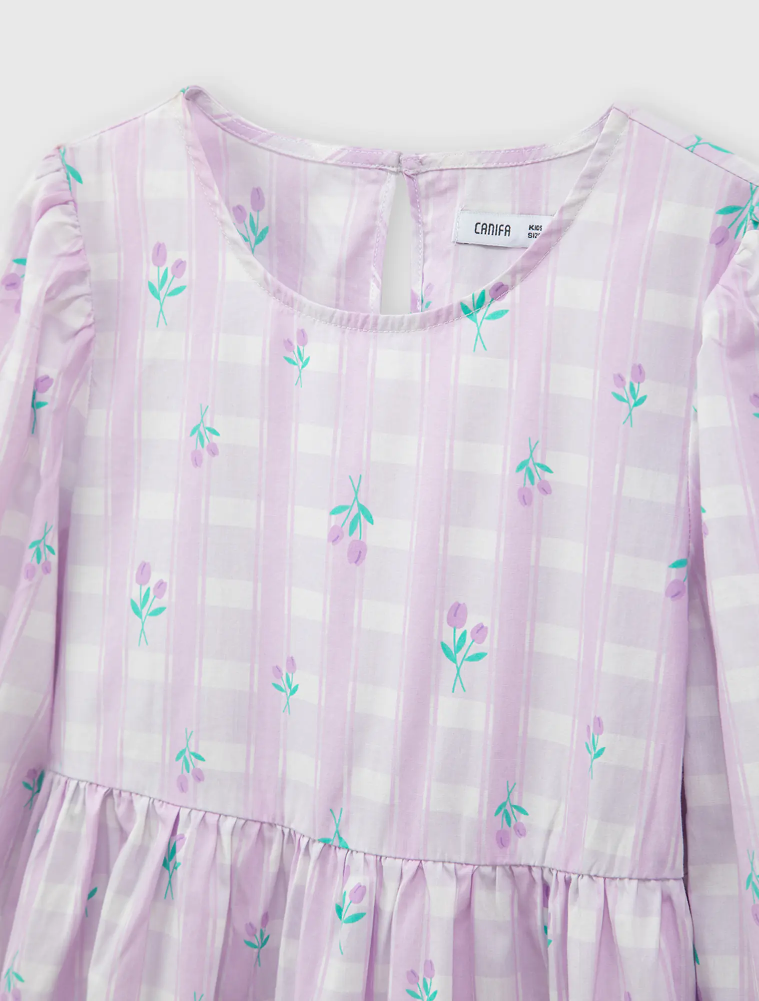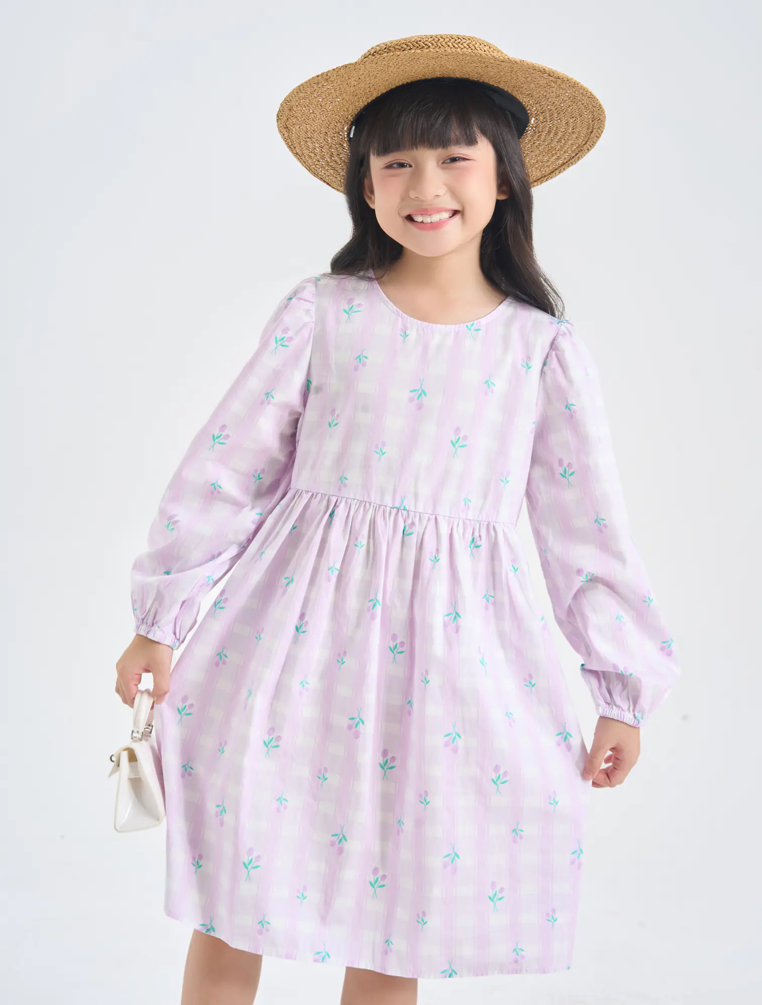 Váy liền bé gái in họa tiết hoa nữ tính, đáng yêu. Chất liệu có độ dày vừa phải rất phù hợp với thời tiết giao mùa.