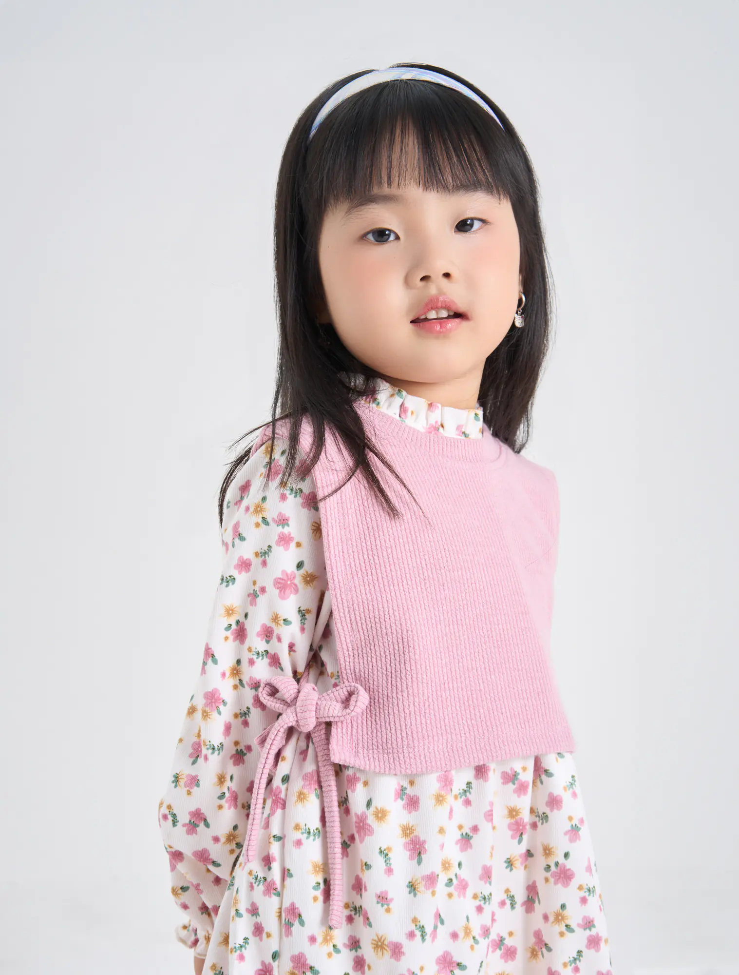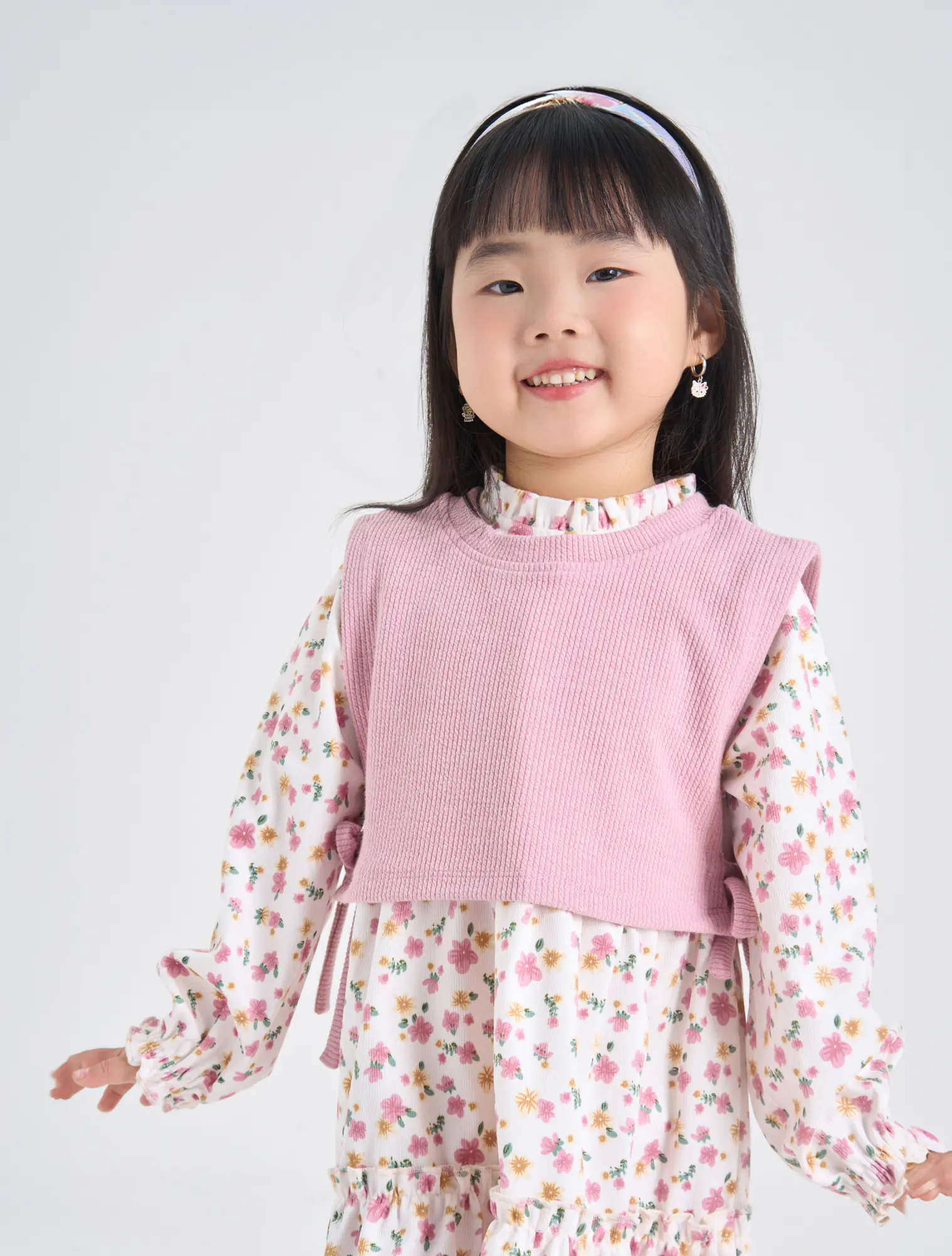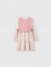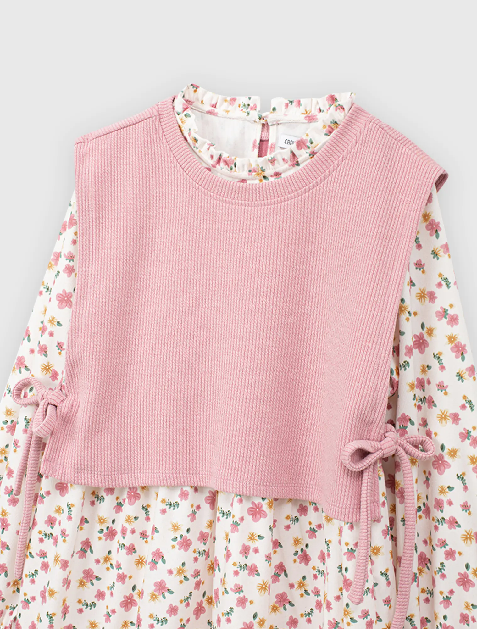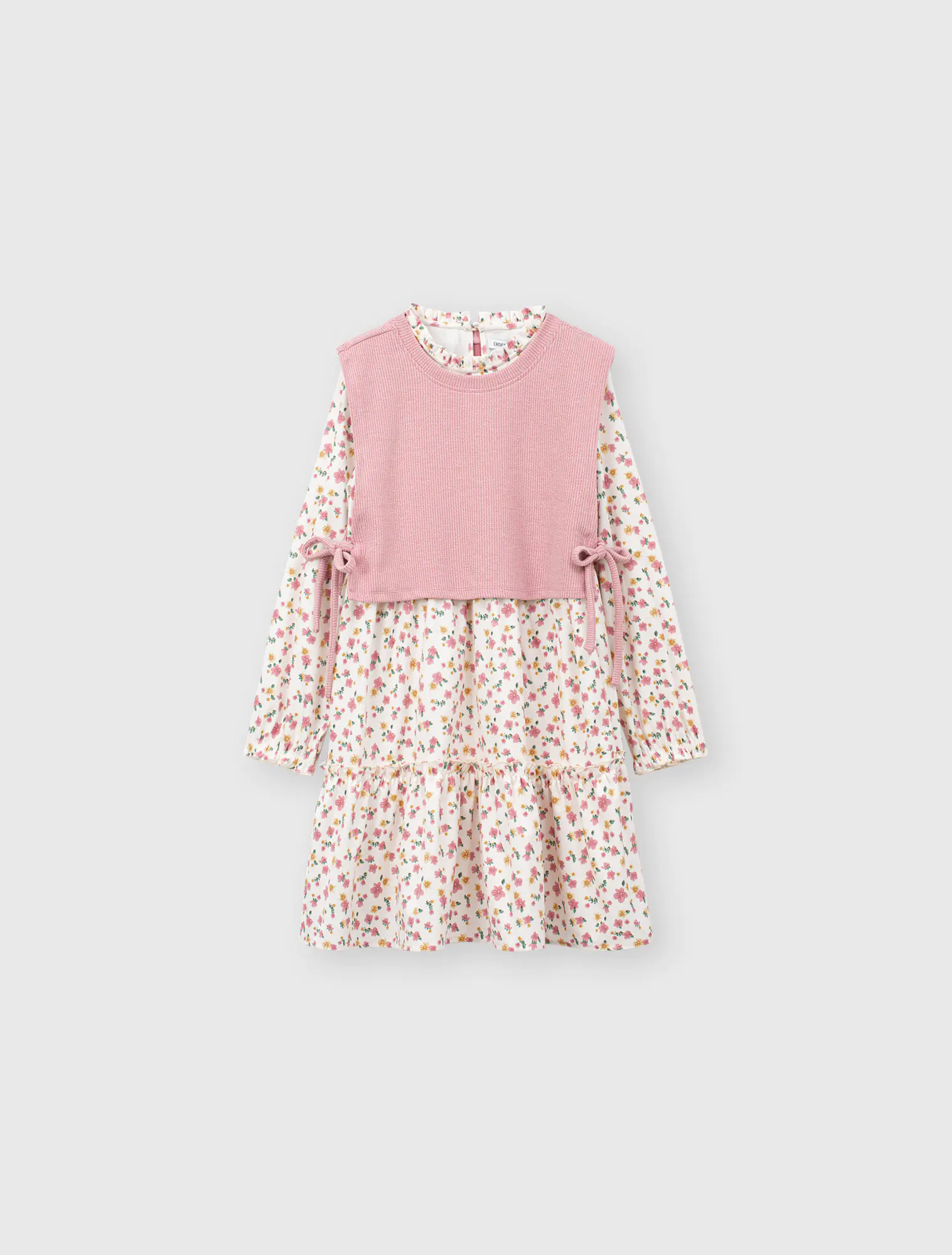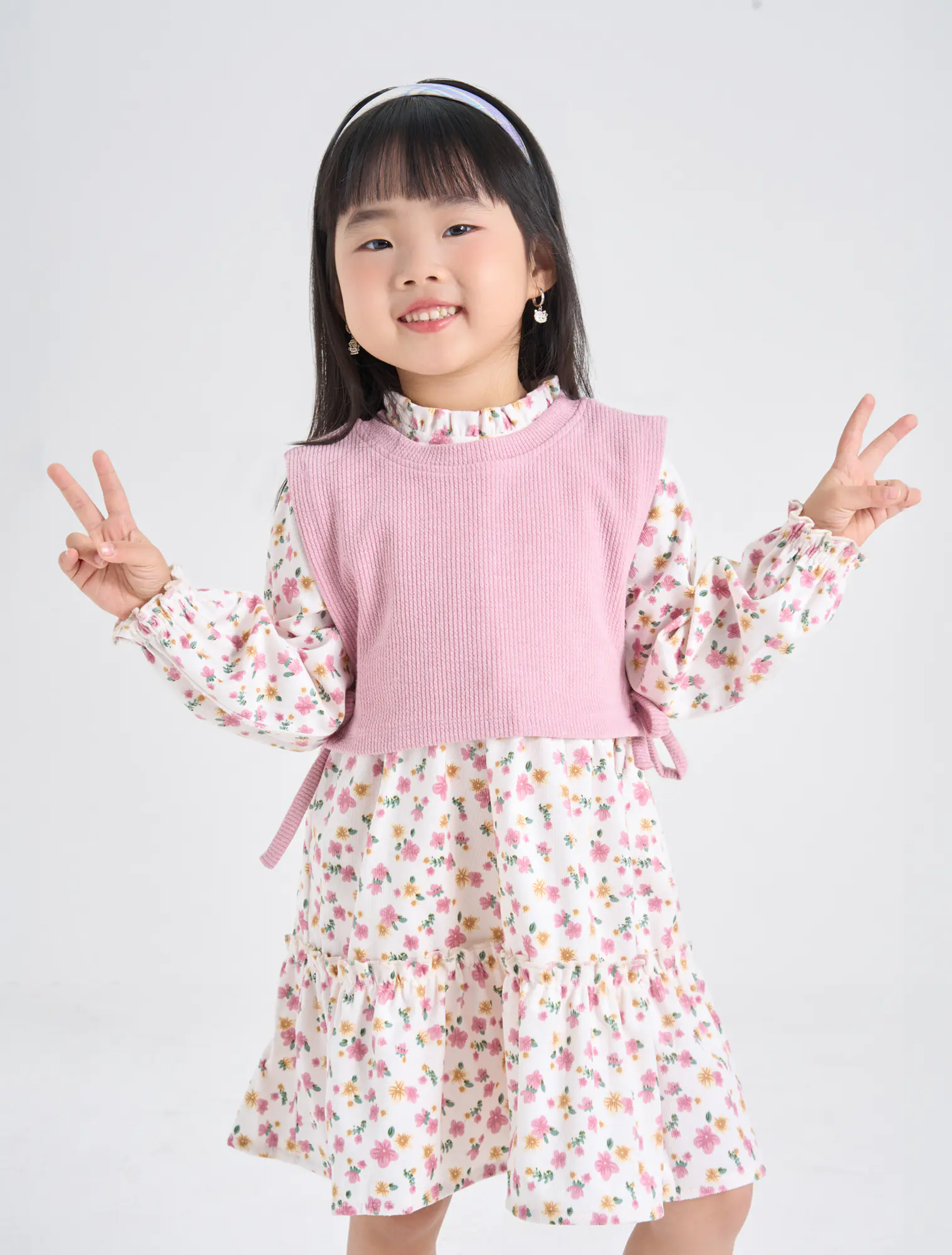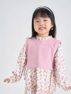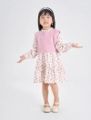 Váy dài tay bé gái nhung phối vải giả len tạo sự sự nữ tính với chi tiết bèo, rúm. Sản phẩm phù hợp với những hoạt động vào thời tiết giao mùa.