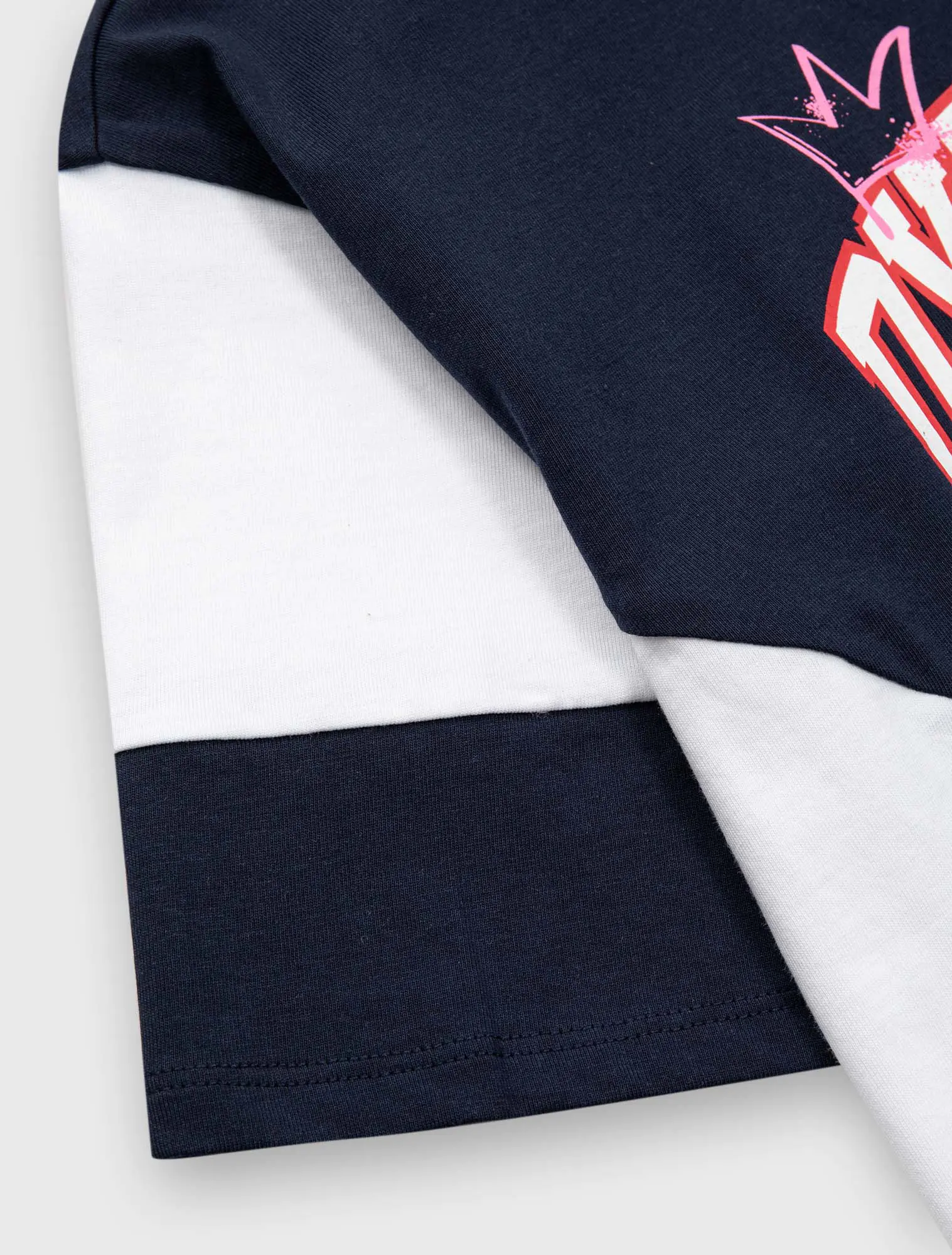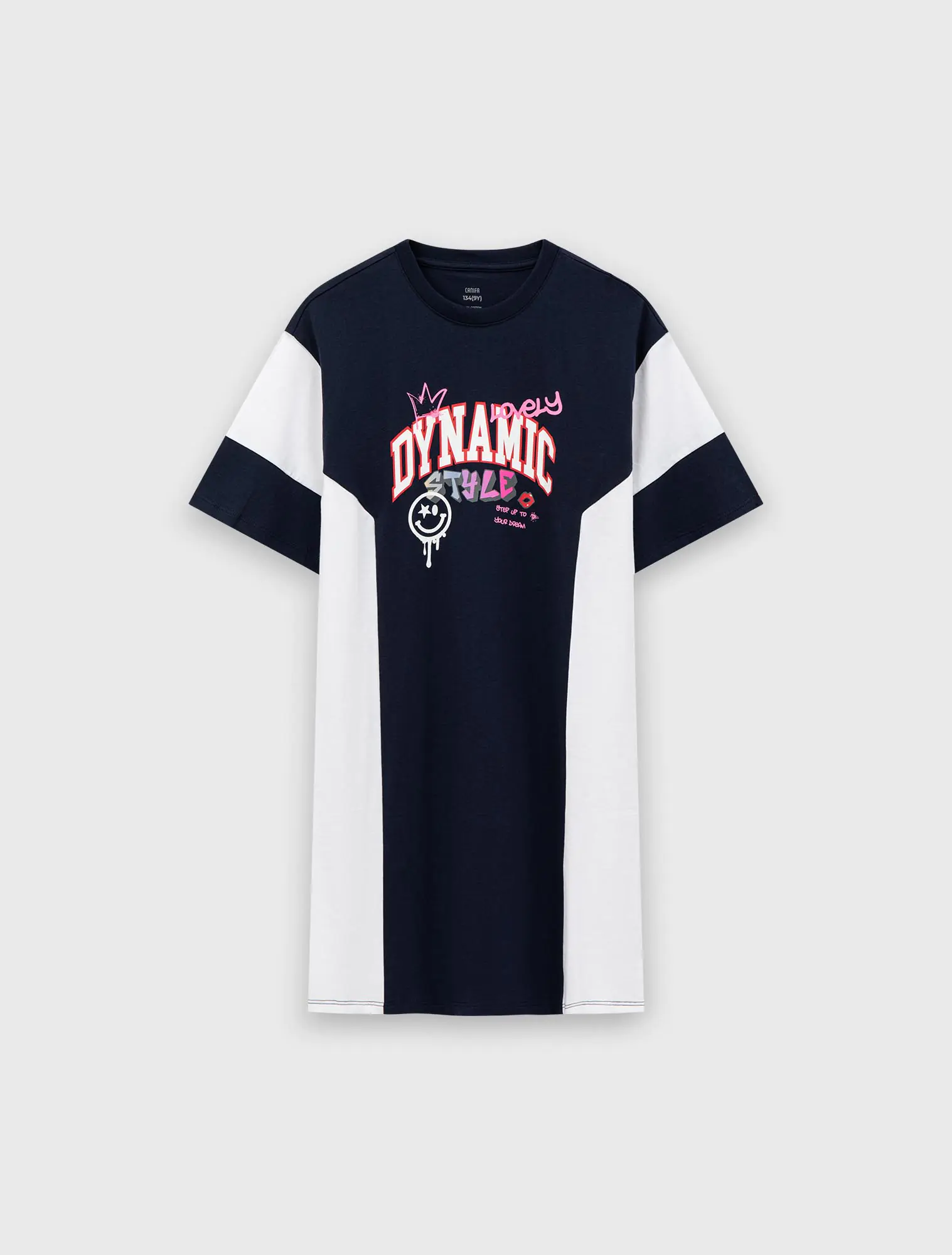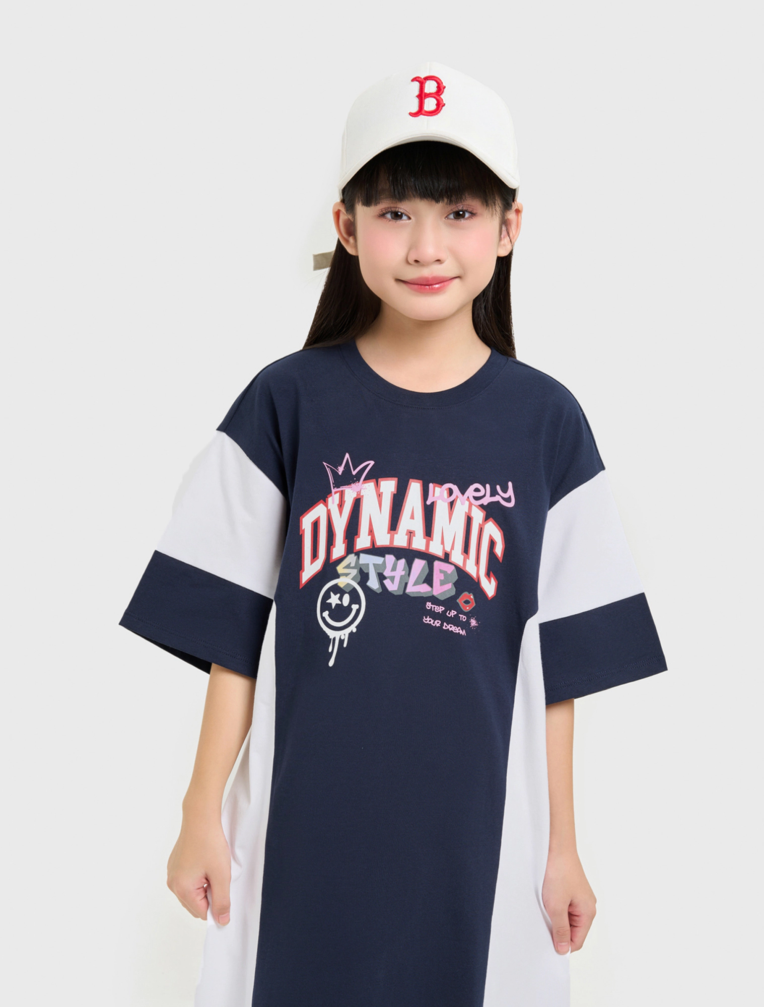 Váy liền bé gái có hình in. Váy dệt kim phối màu cá tính, phù hợp với những bé thính sự năng động và khỏe khoắn.