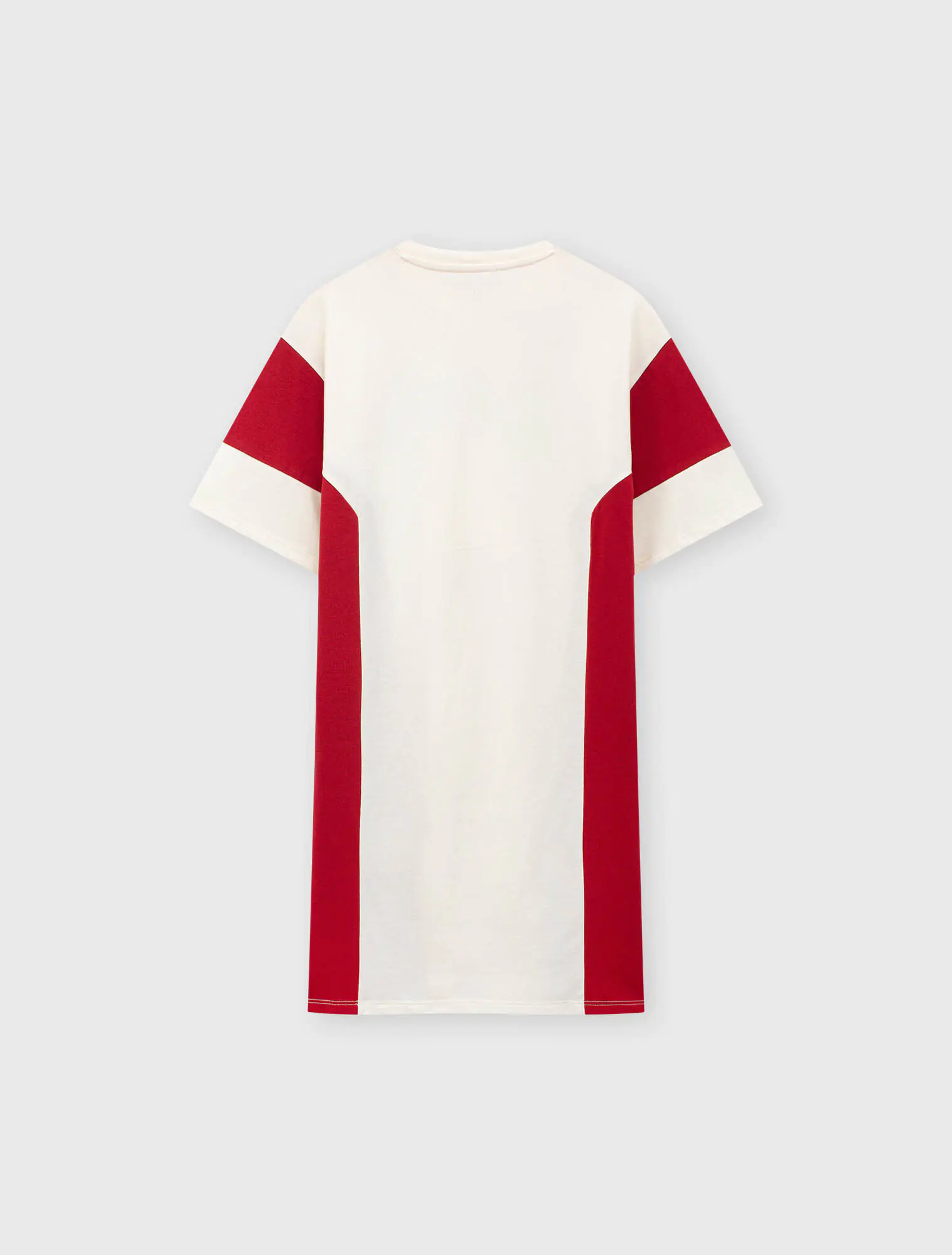 Váy liền bé gái có hình in. Váy dệt kim phối màu cá tính, phù hợp với những bé thính sự năng động và khỏe khoắn.