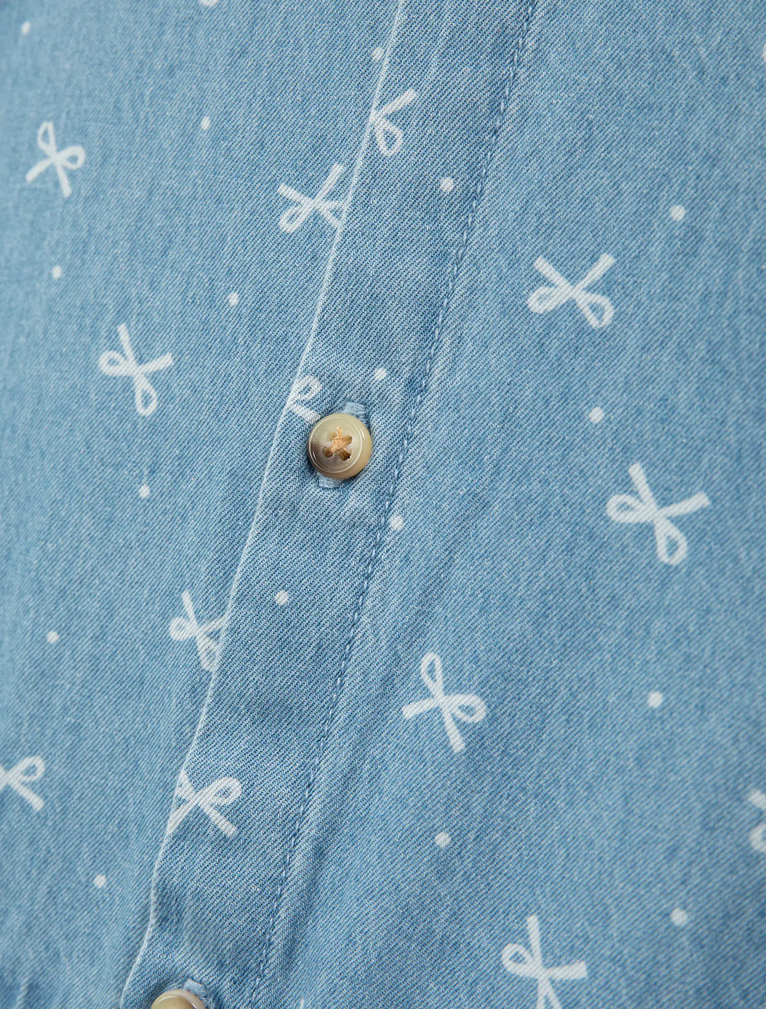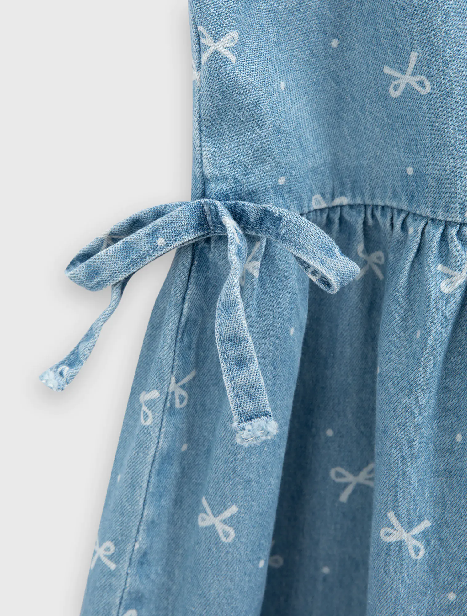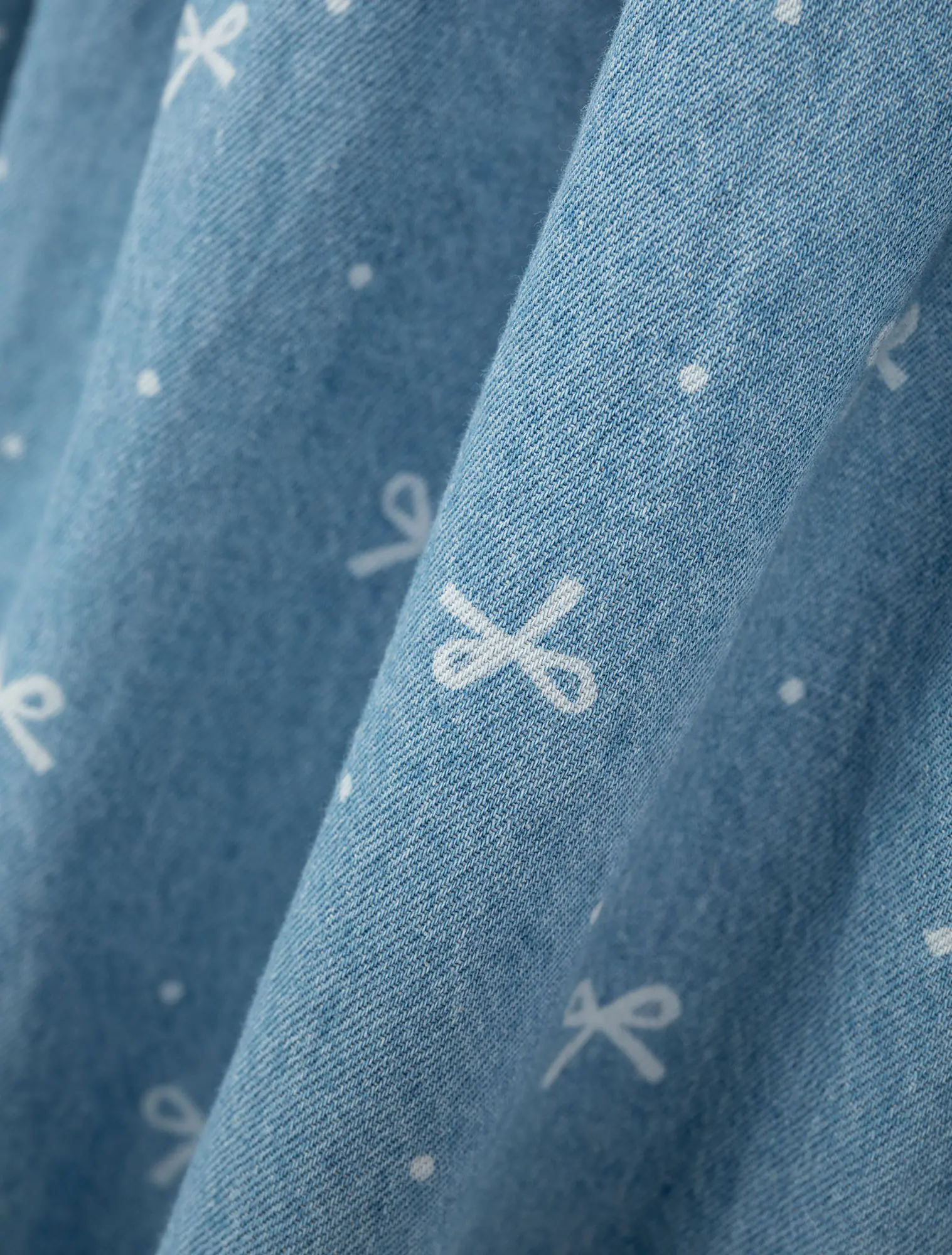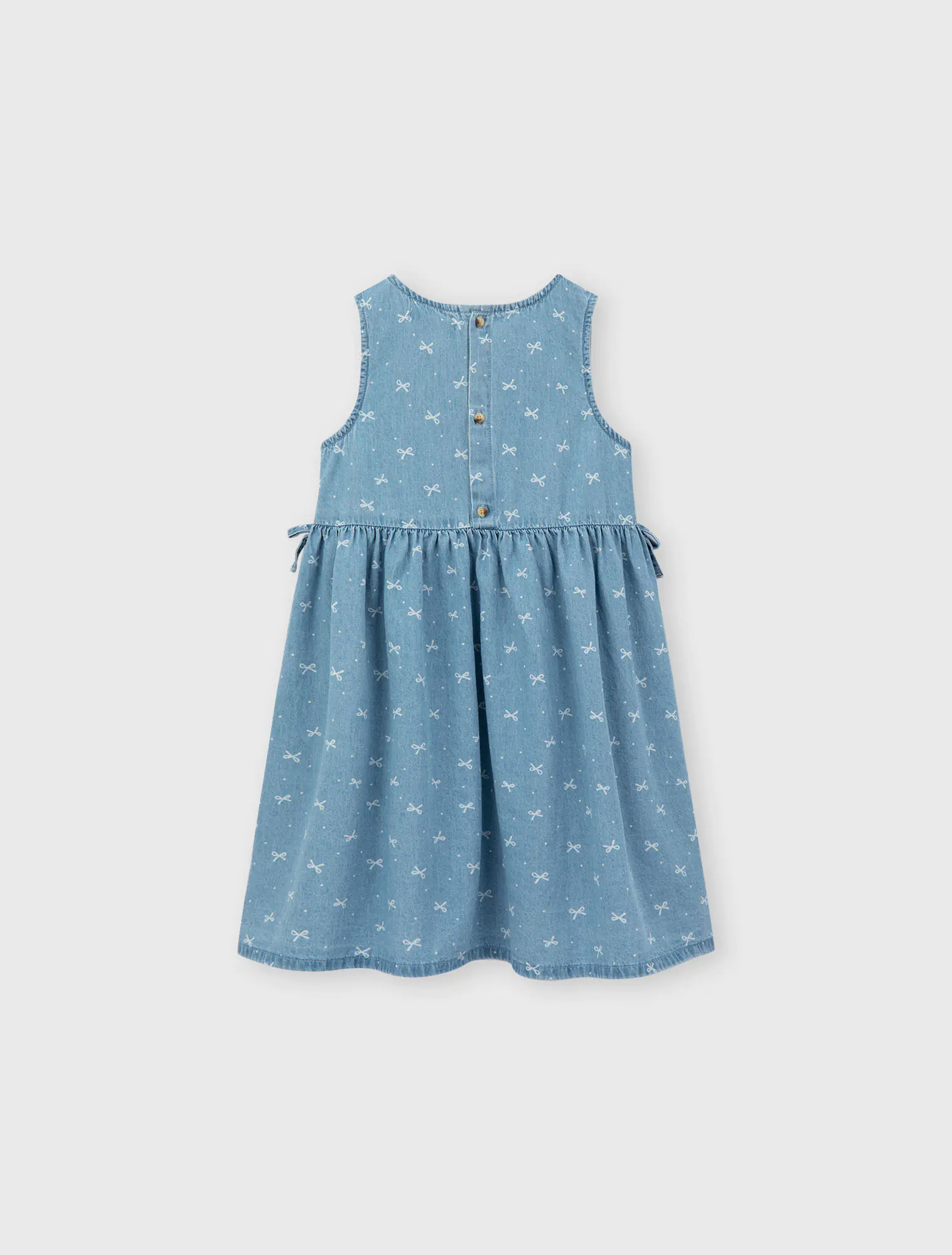 Váy liền bé gái, vải denim cotton đứng phom, màu sắc phù hợp cho các bé.Dáng regular.