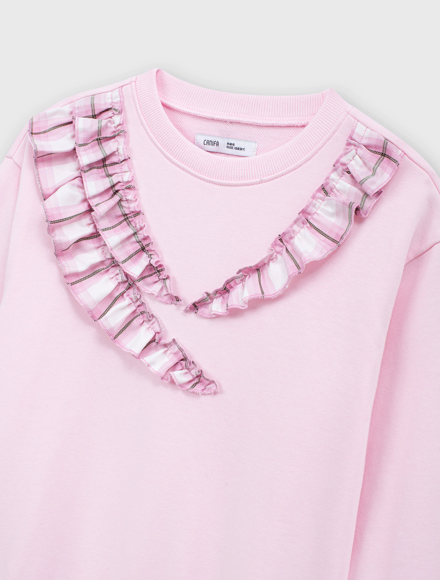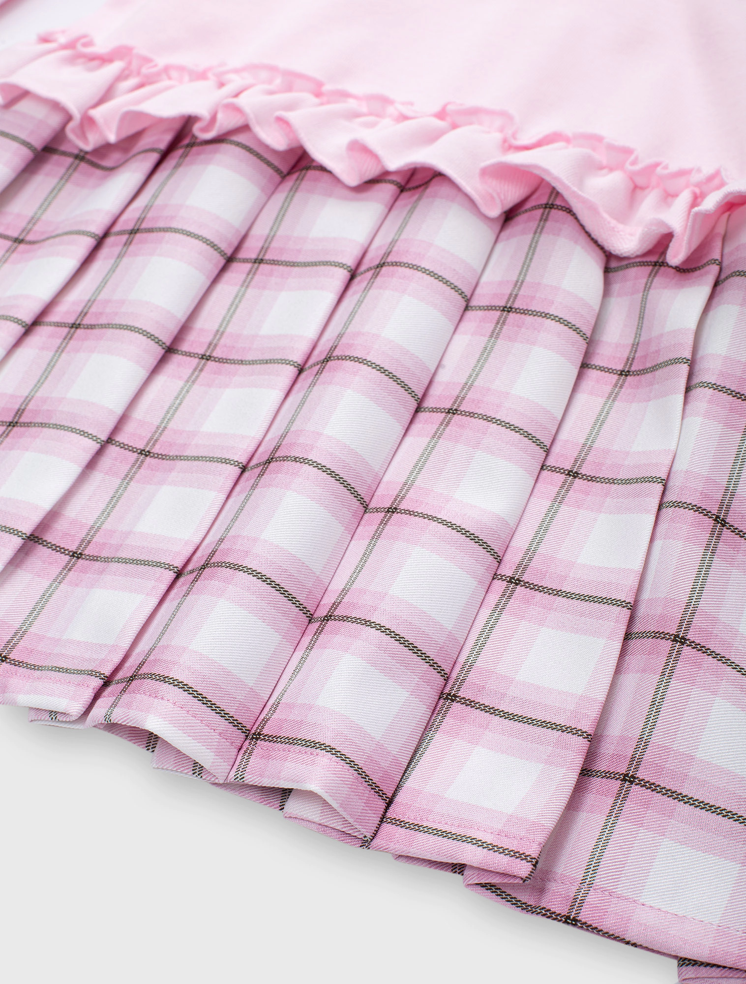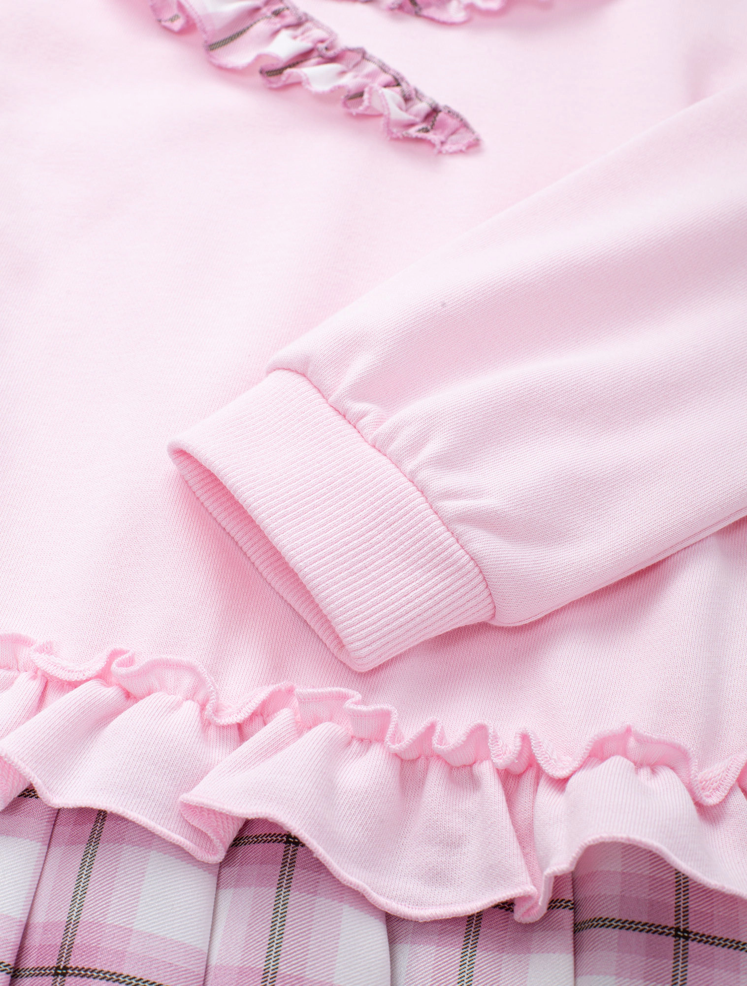 Váy liền bé gái dài tay dáng suông phối vải kẻ tạo sự sự nữ tính với chi tiết bèo, xếp li.