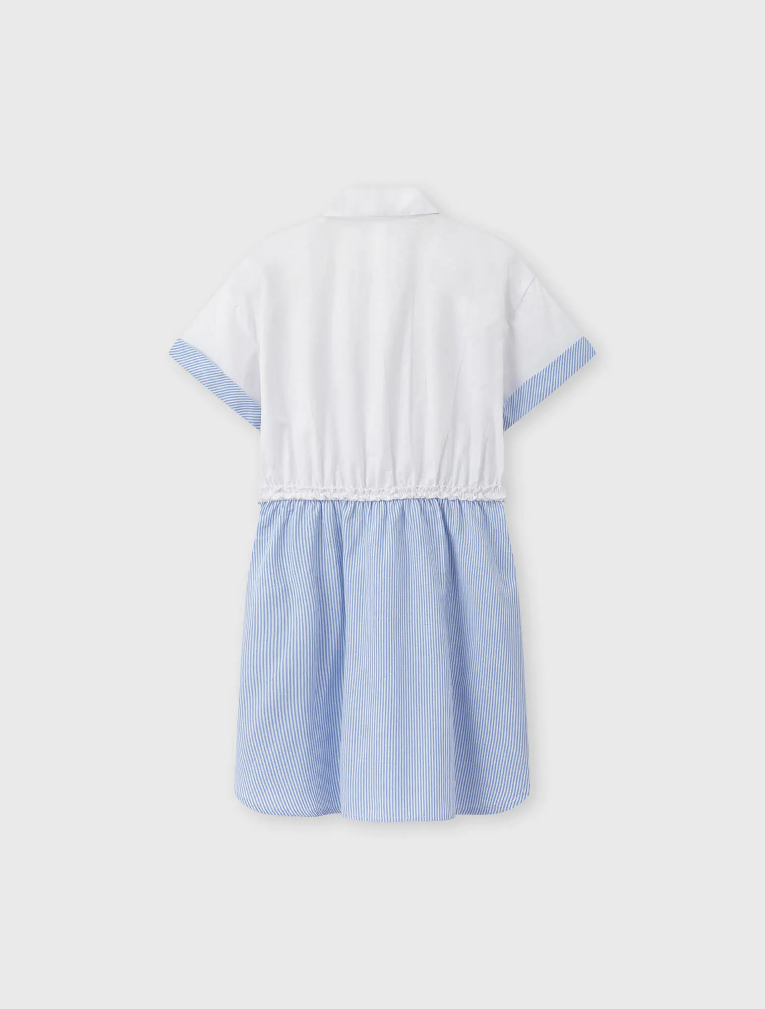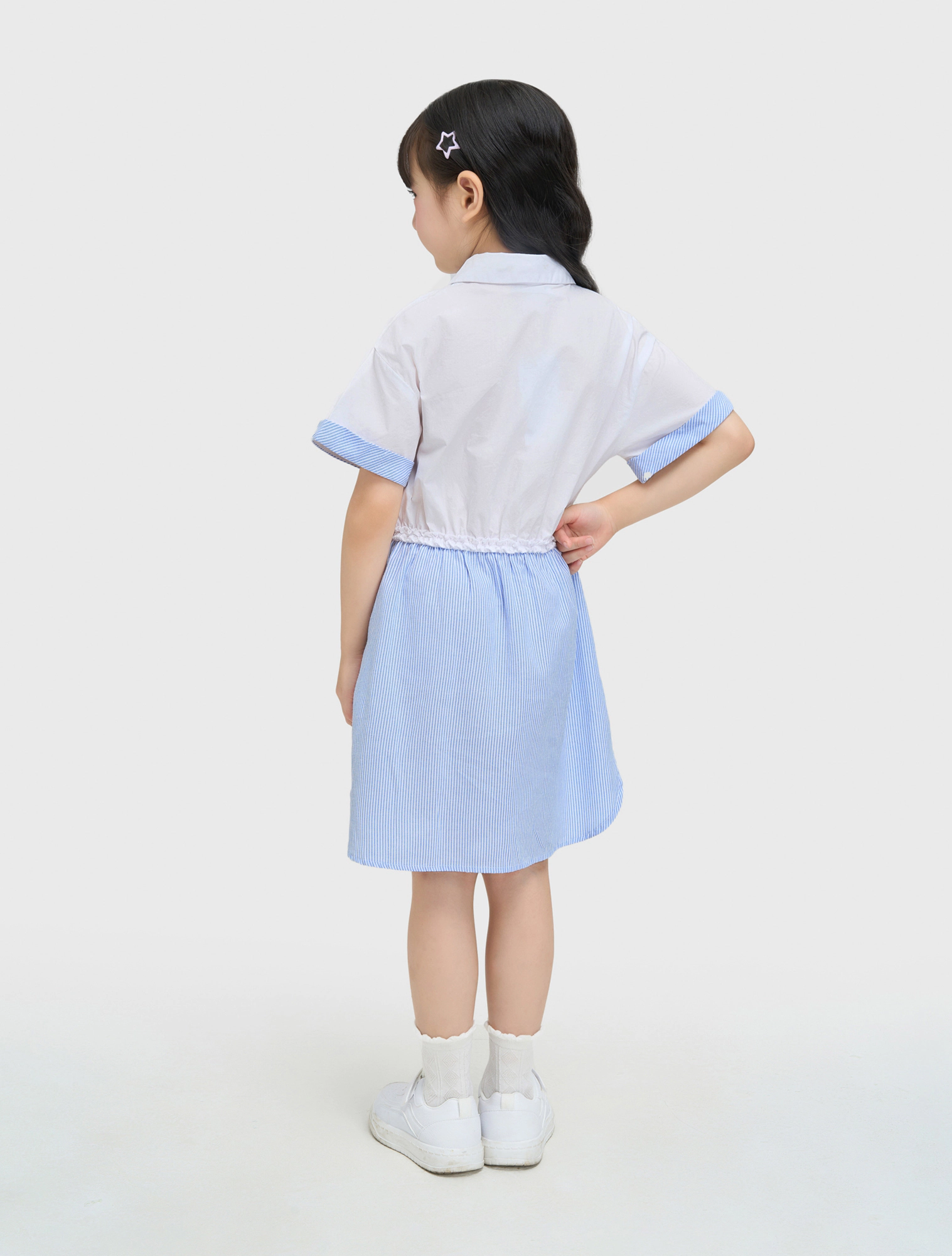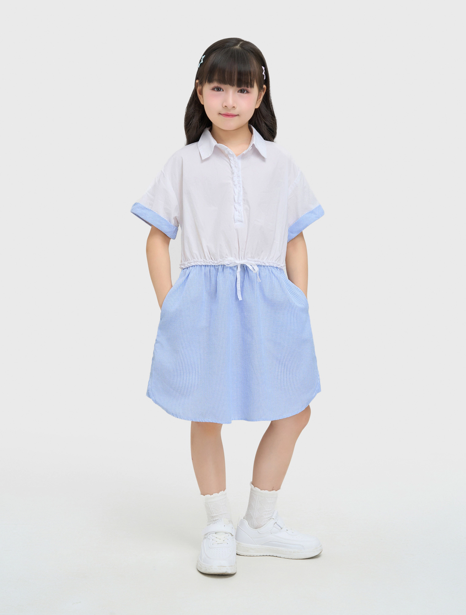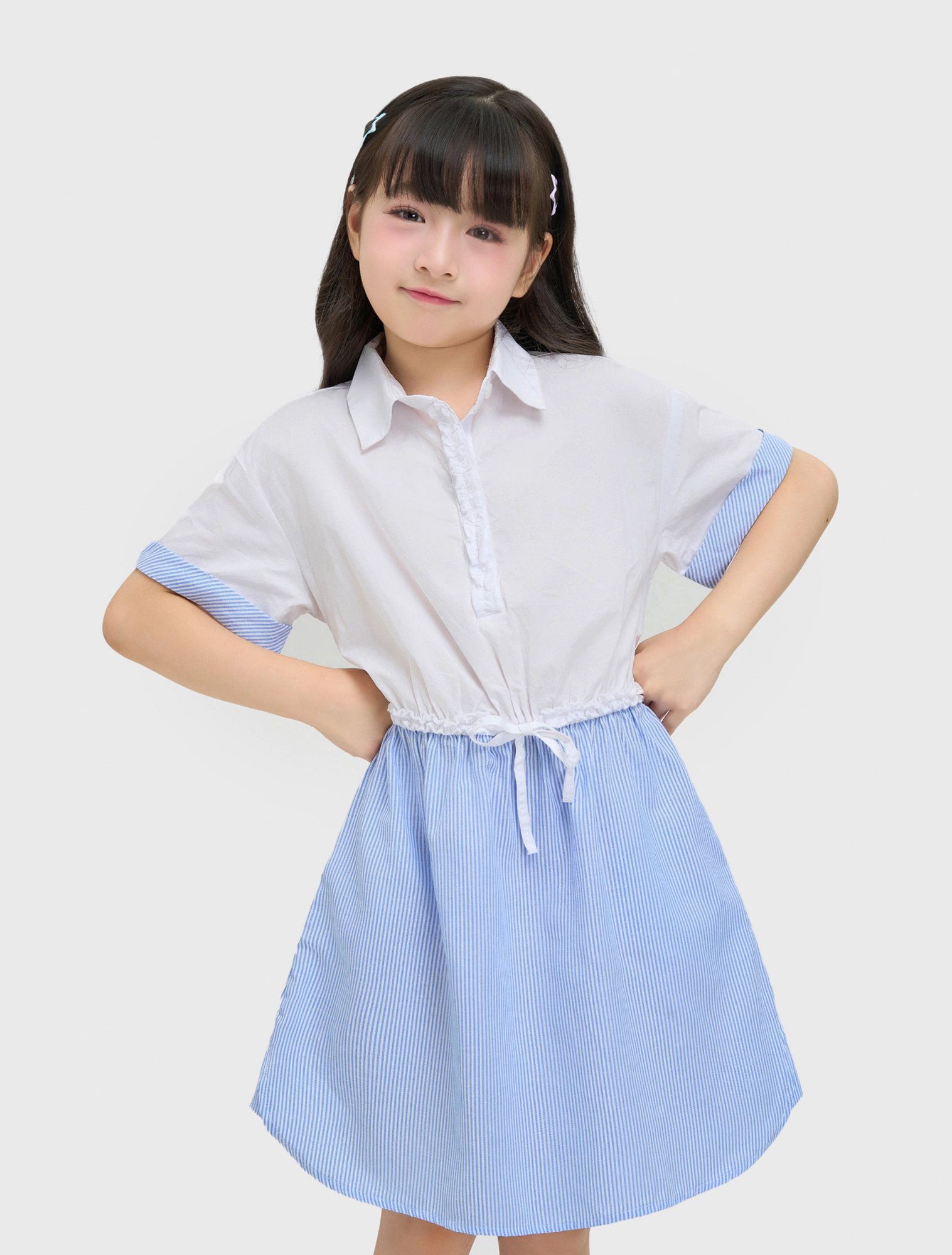 Váy liền bé gái phối kẻ, chi tiết rút eo nữ tính. Váy dệt thoi mang lại cảm giác thoải mái và dễ chịu cả ngày, phù hợp với nhiều hoàn cảnh sử dụng.