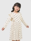 Váy liền bé gái, các chi tiết rúm bèo mang lại sự nữ tính cho bé gái.