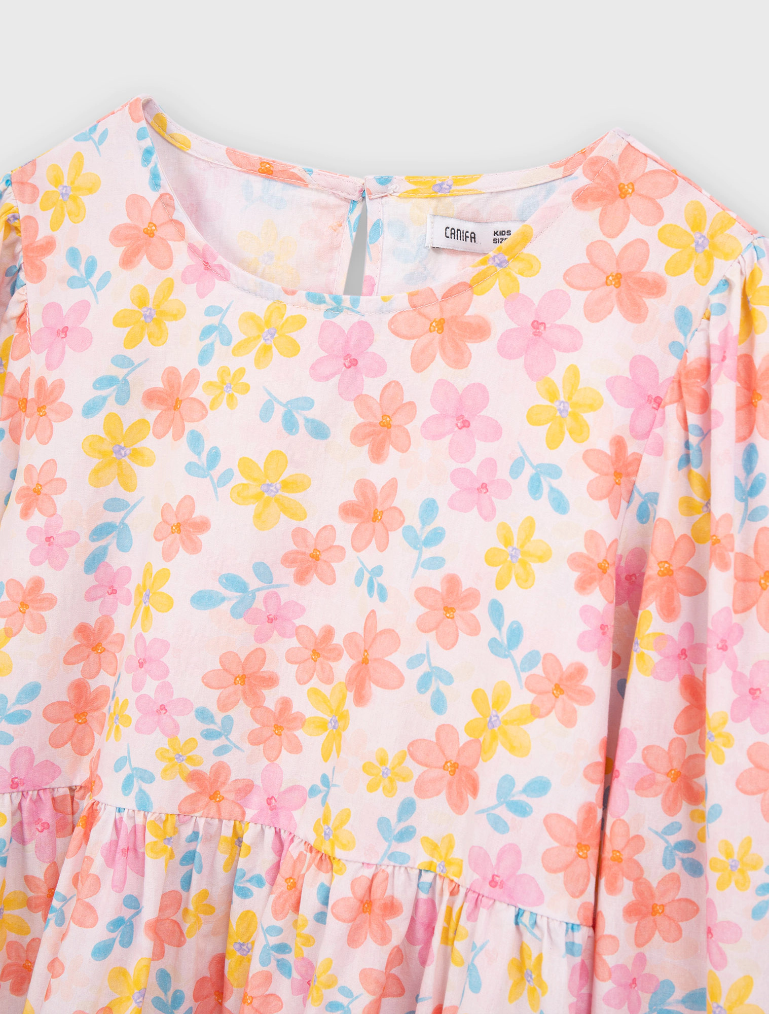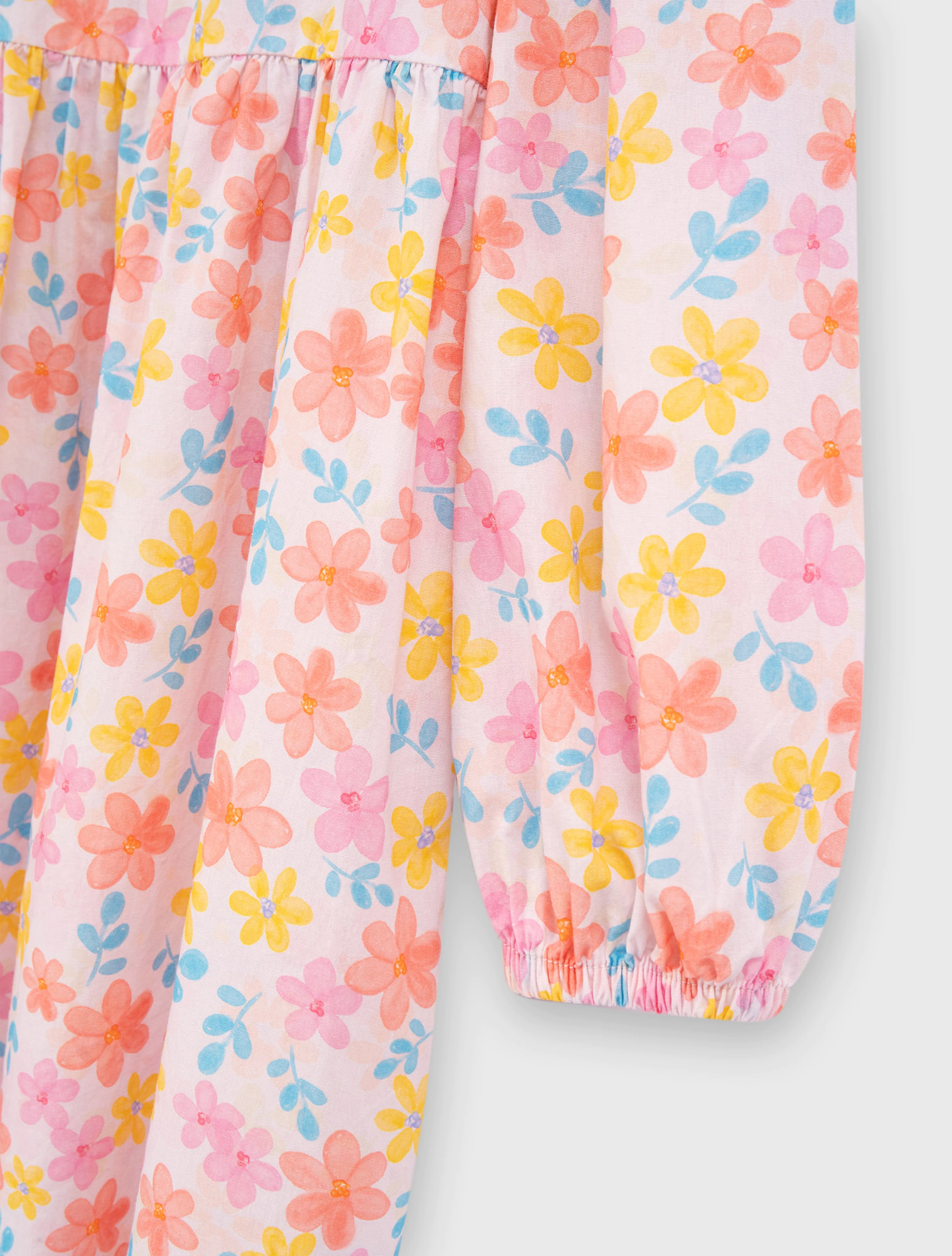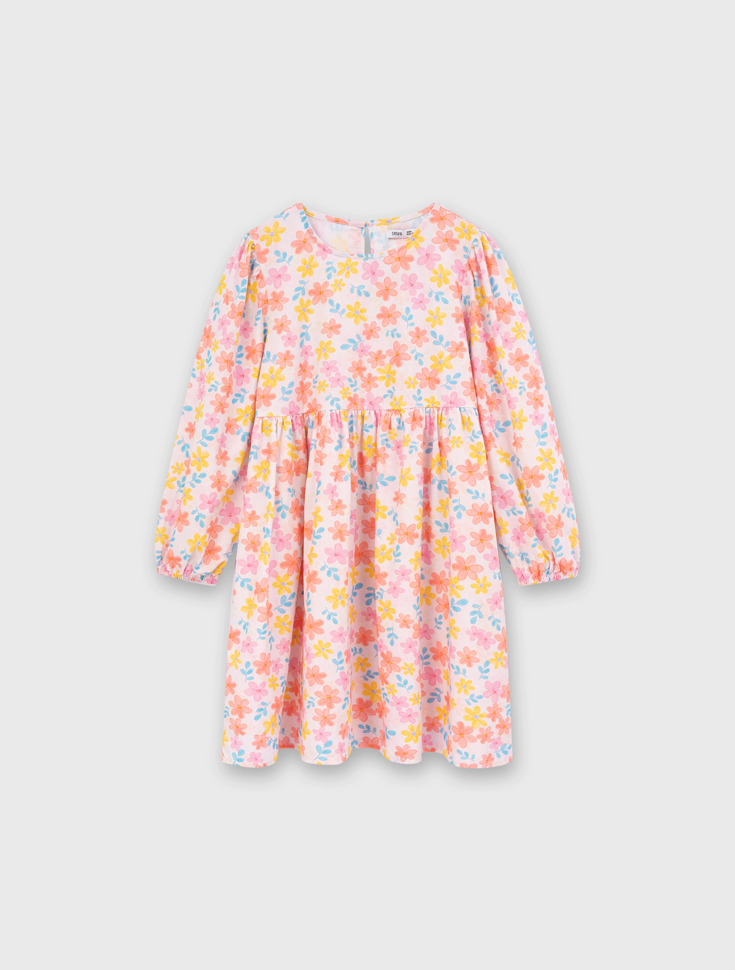 Váy liền bé gái in họa tiết hoa nữ tính, đáng yêu. Chất liệu có độ dày vừa phải rất phù hợp với thời tiết giao mùa.