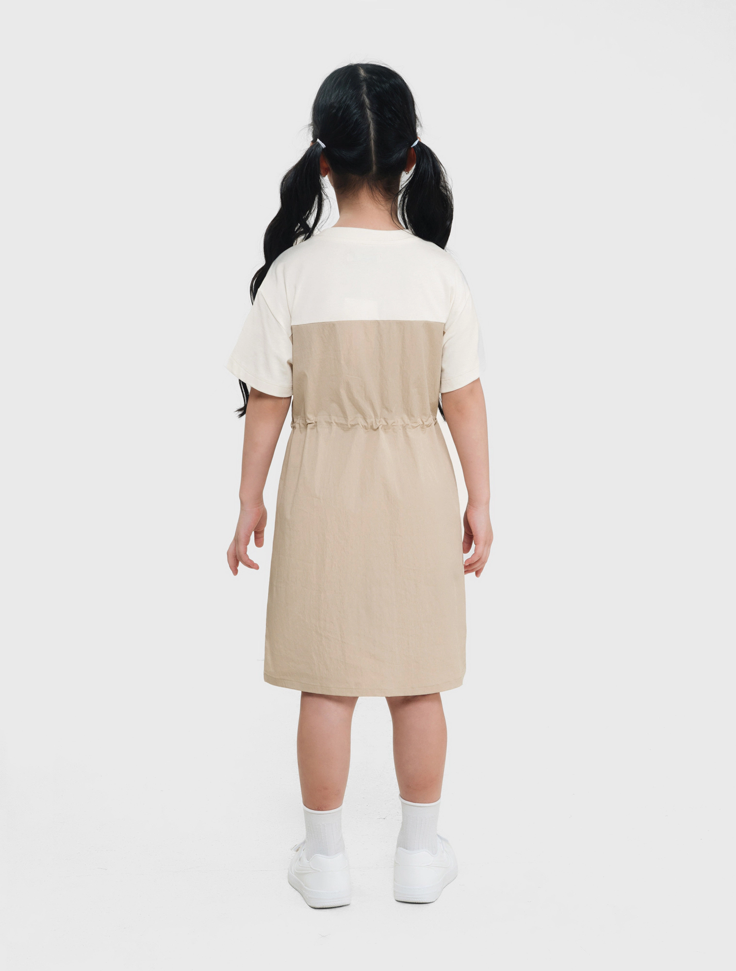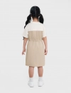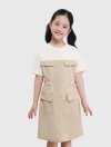 Váy liền bé gái, khaki nhăn phối vải cotton tạo sự năng động nhưng vẫn có sự nữ tính. Sản phẩm phù hợp với những hoạt động vào thời tiết giao mùa.
