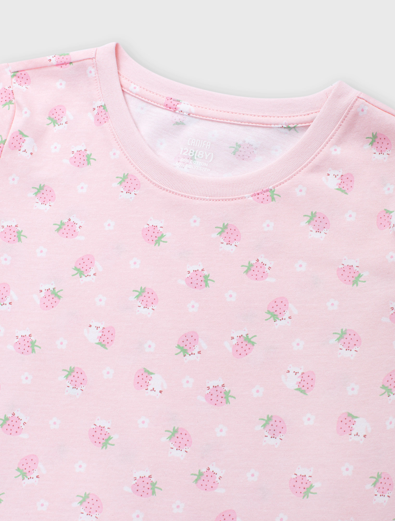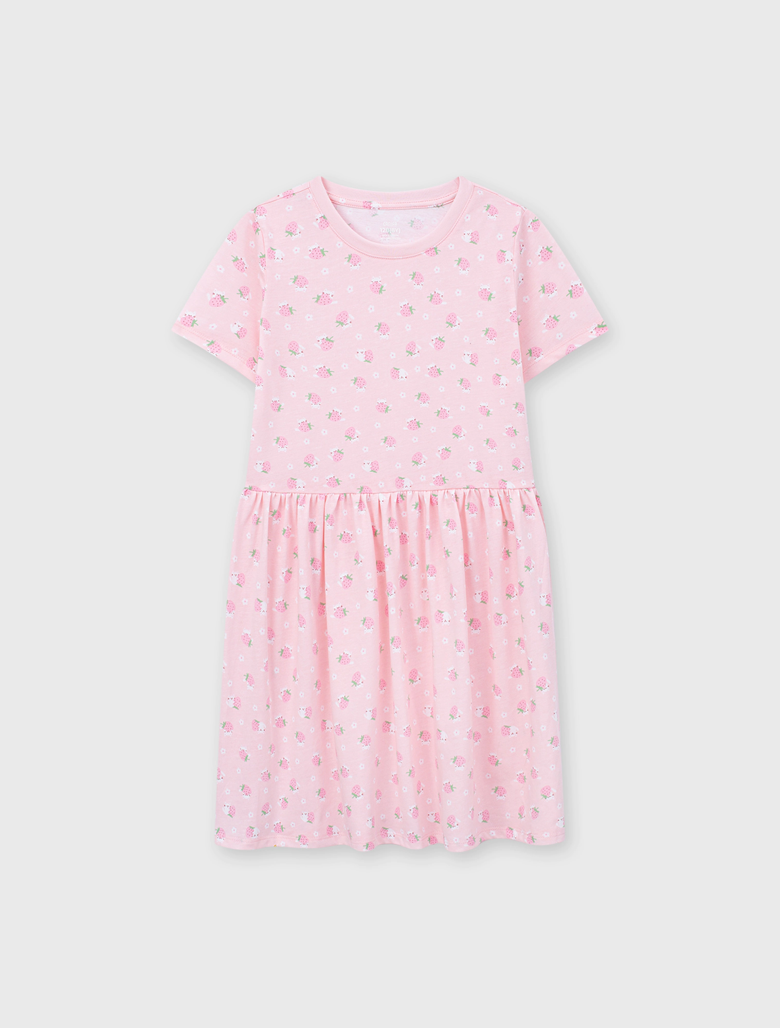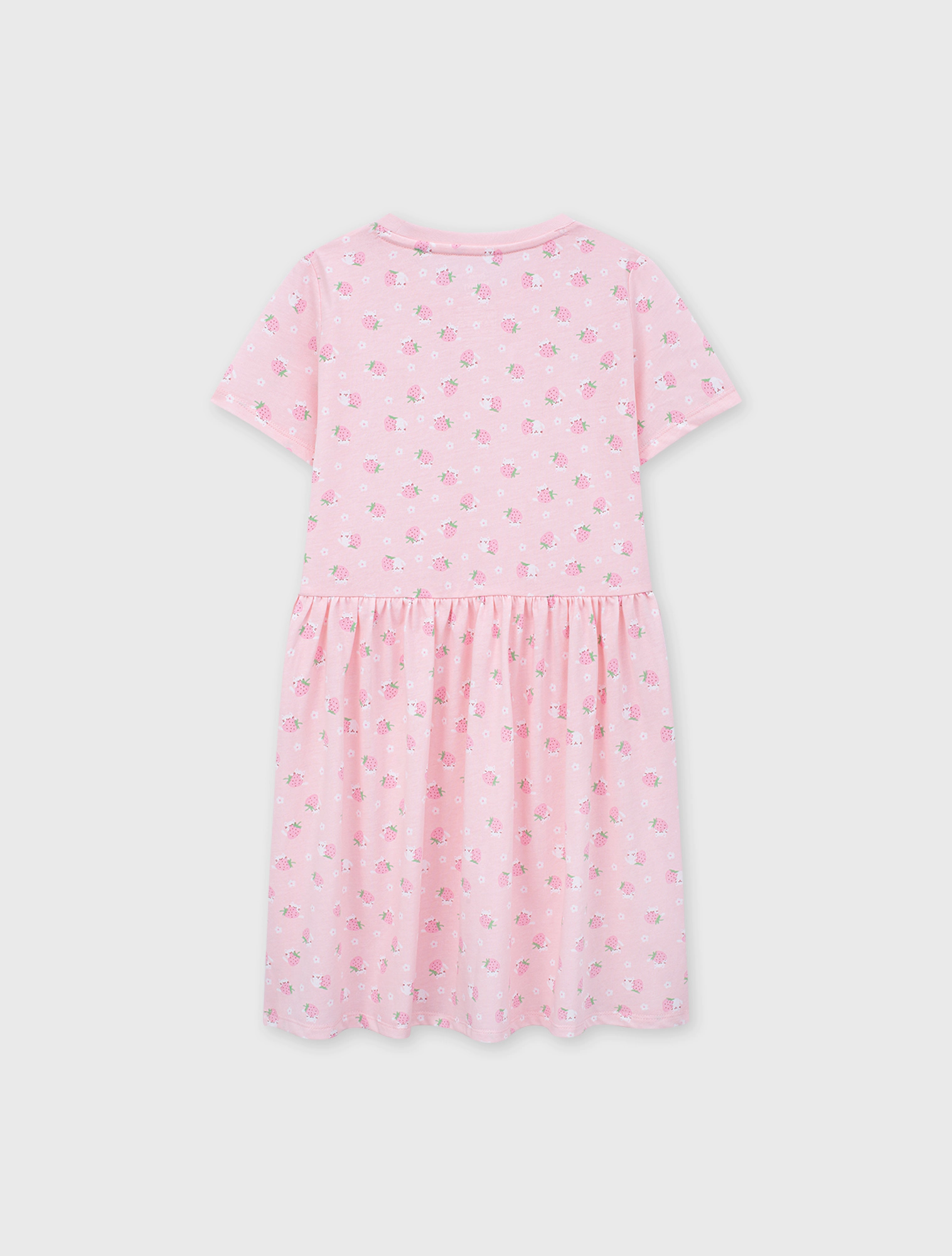Váy liền bé gái cộc tay có hình in. Chi tiết cắt eo nữ tính, phù hợp với nhiều hoàn cảnh sử dụng.