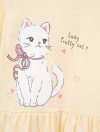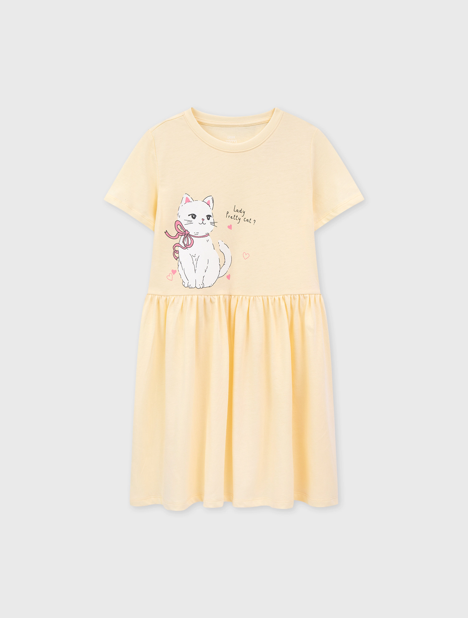 Váy liền bé gái cộc tay có hình in. Chi tiết cắt eo nữ tính, phù hợp với nhiều hoàn cảnh sử dụng.