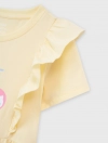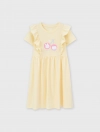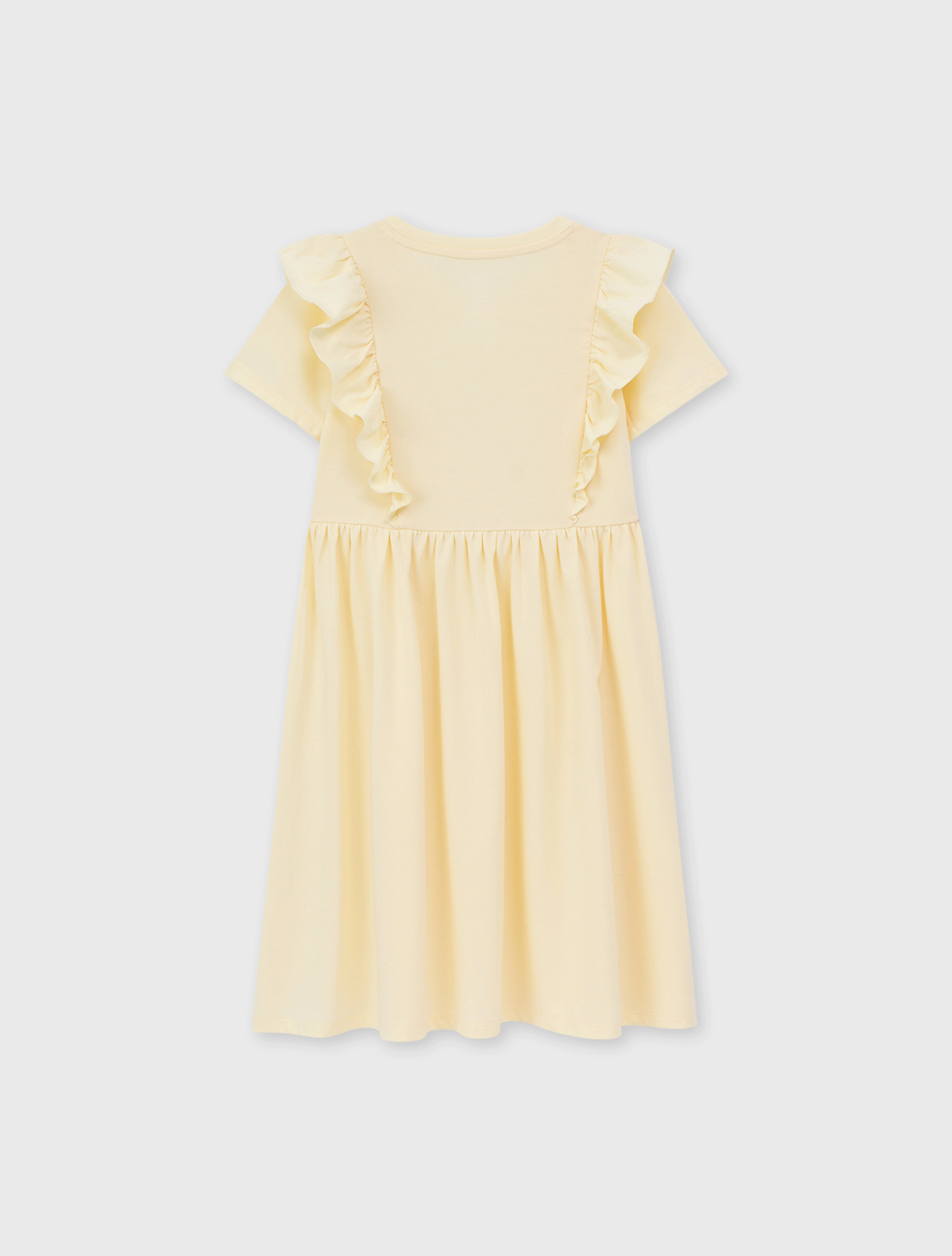 Váy liền bé gái cộc tay có hình in. Chi tiết bèo vai nữ tính, phù hợp với nhiều hoàn cảnh sử dụng.