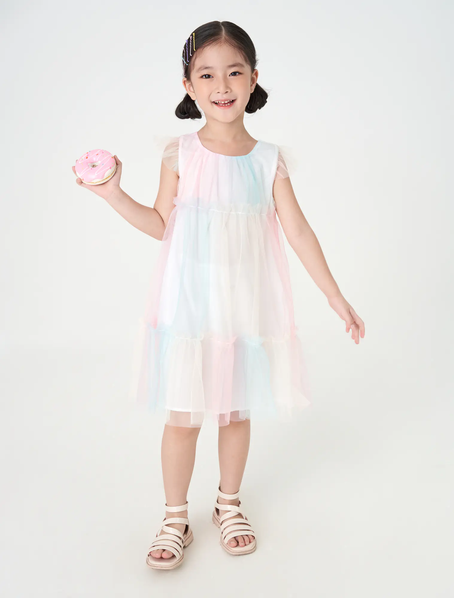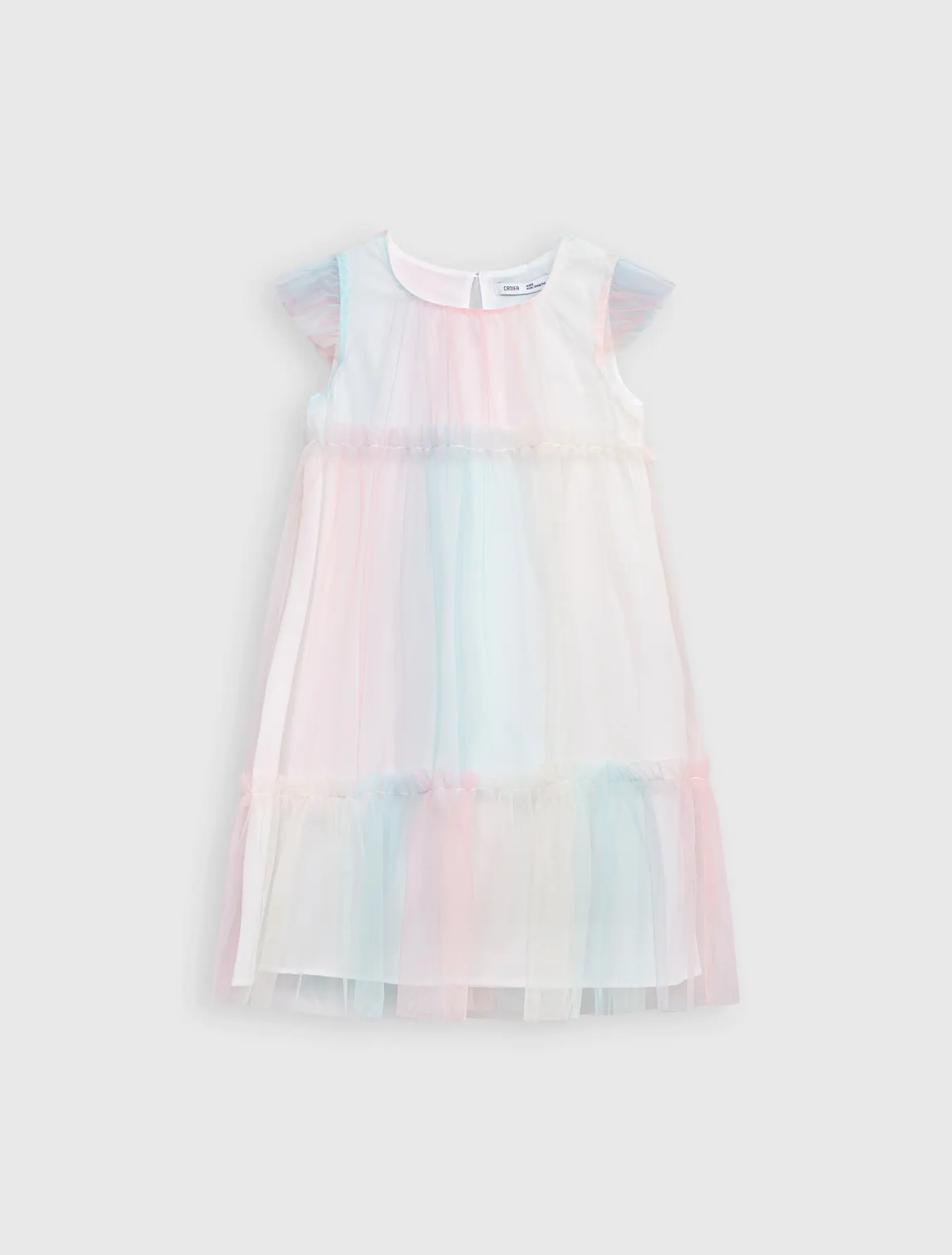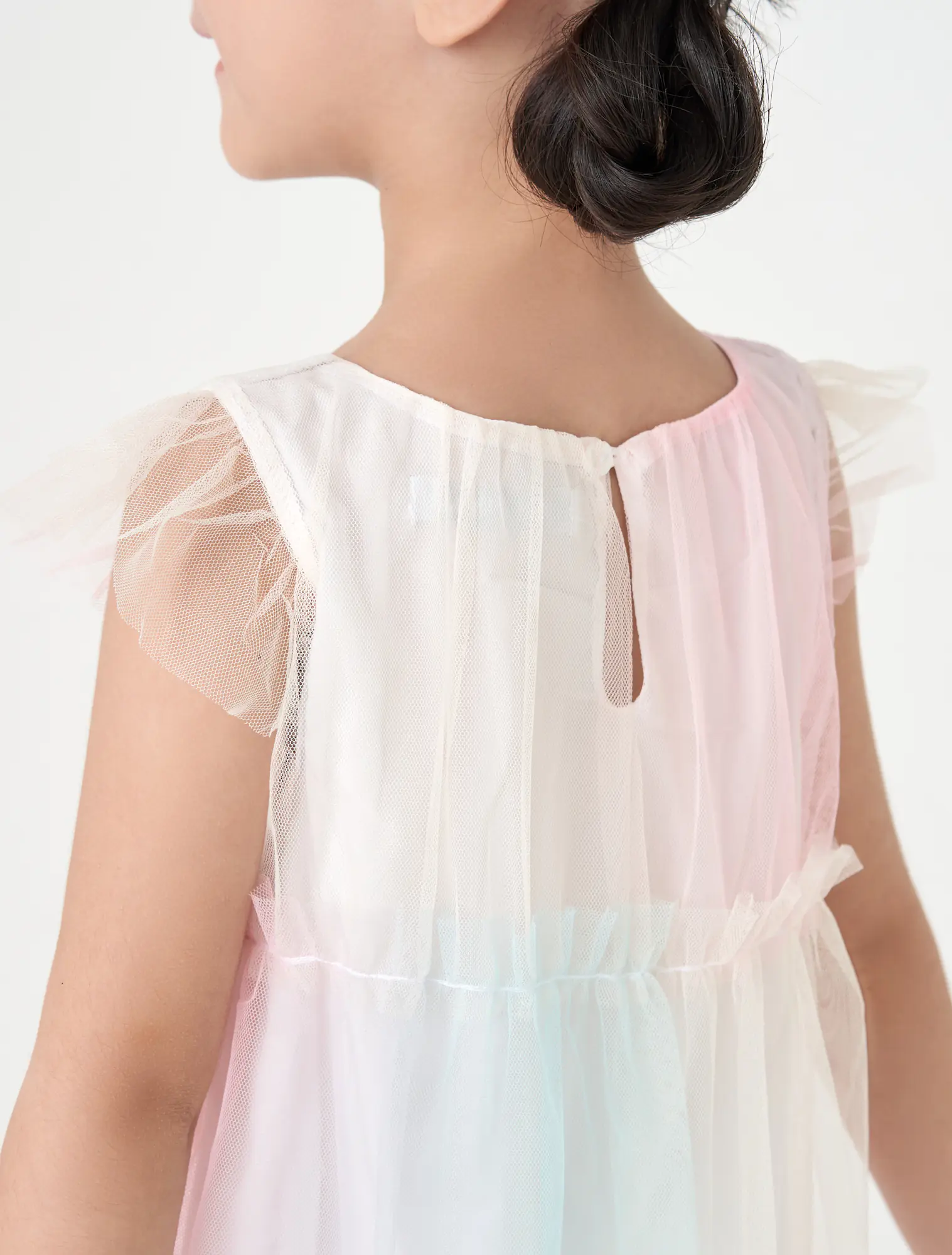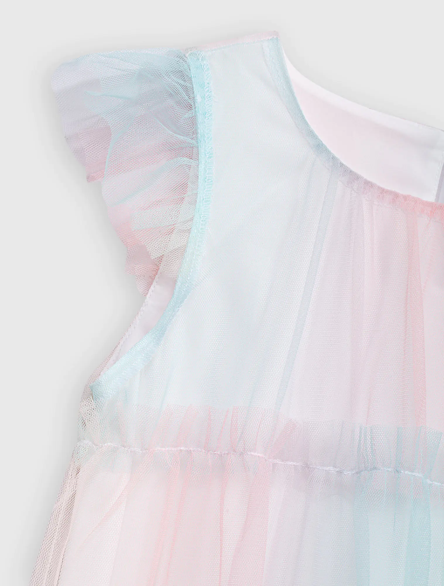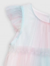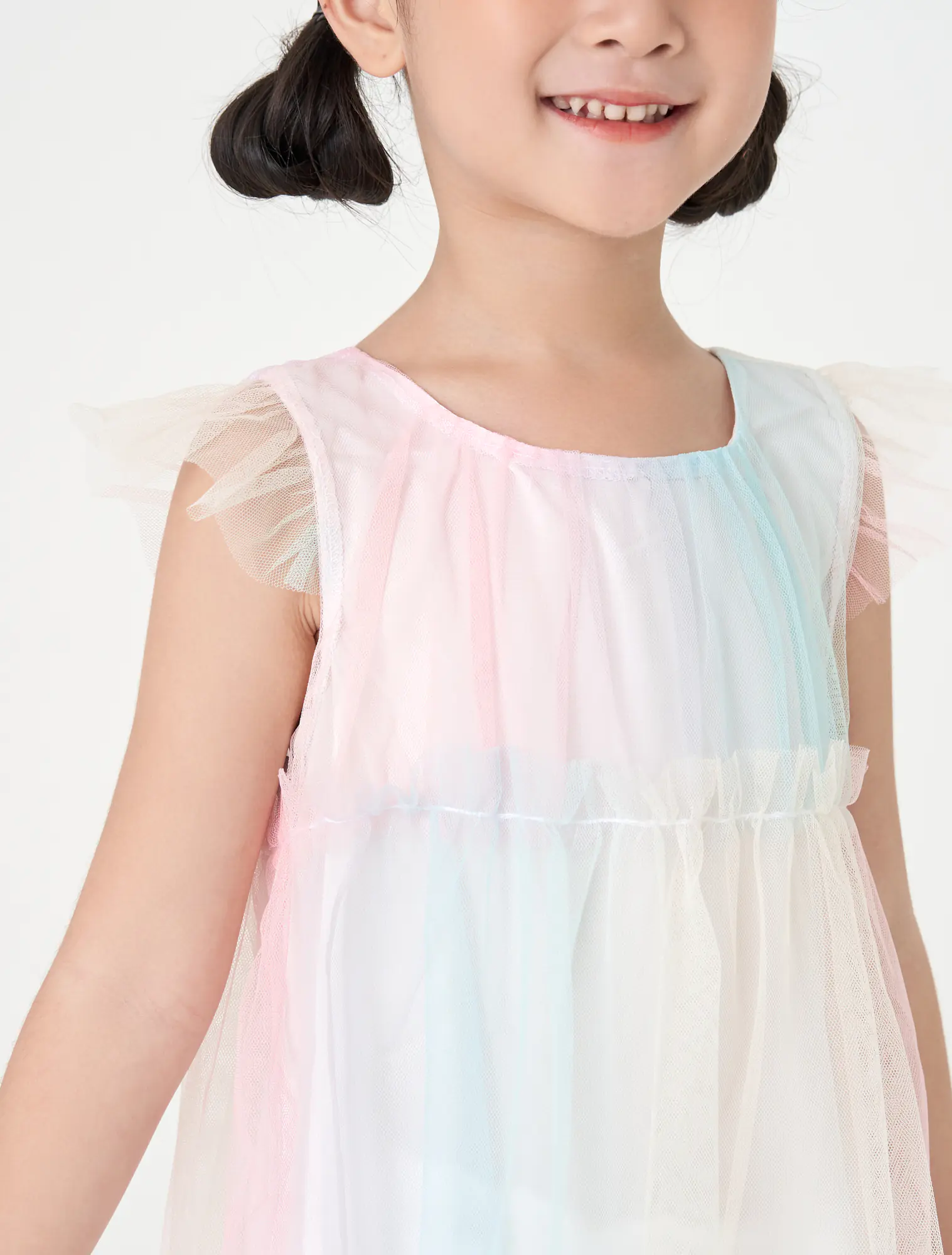 Váy liền chất liệu lưới 100% polyester có lớp lót, cổ tròn tay cánh tiên, đuôi cá.