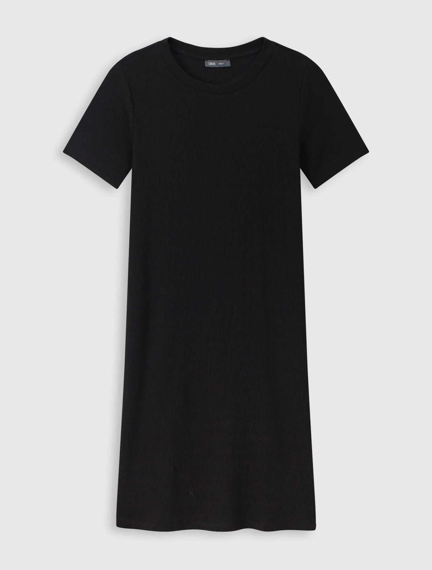 Dáng suông, cổ tròn, tay cộc, xẻ 1 bên.