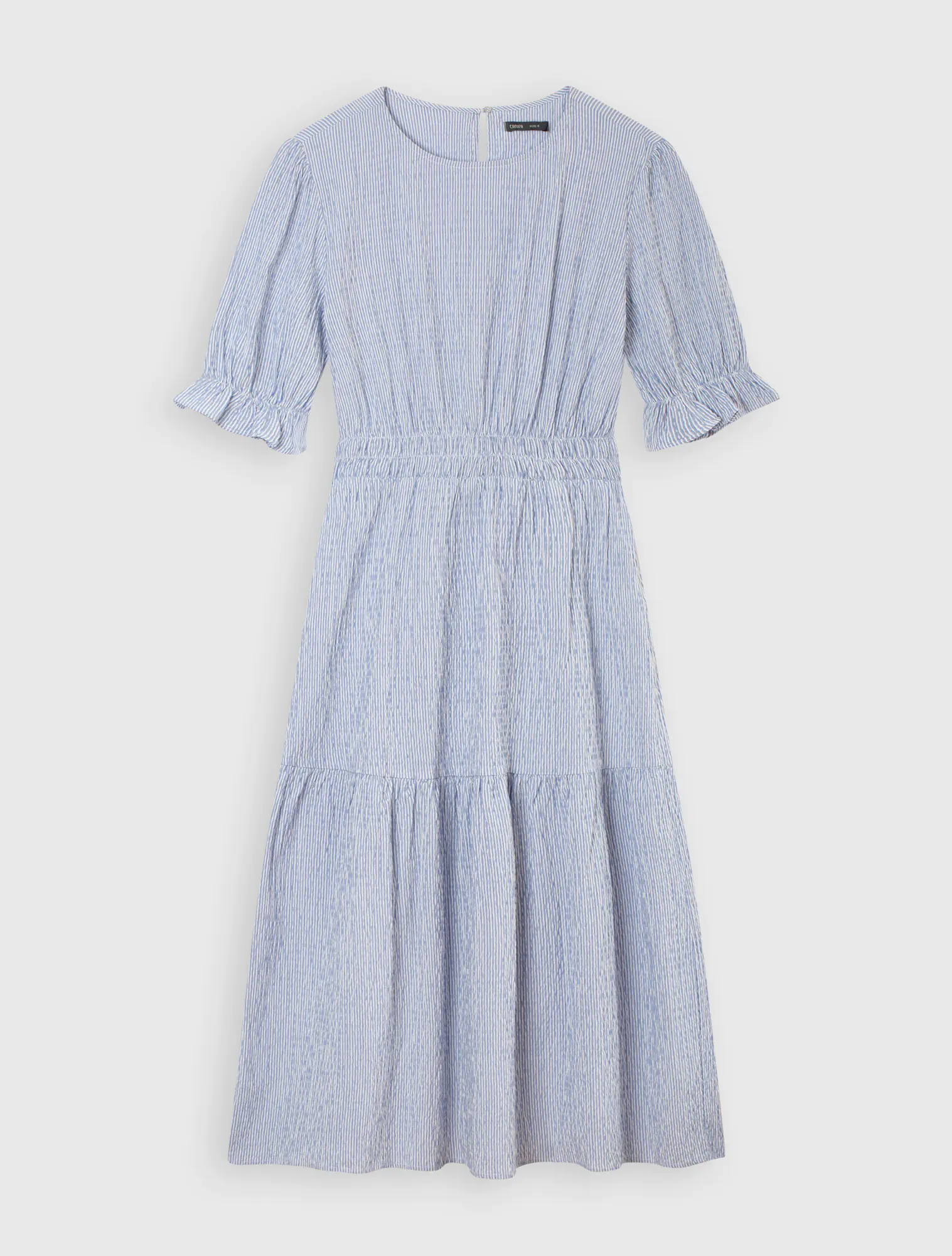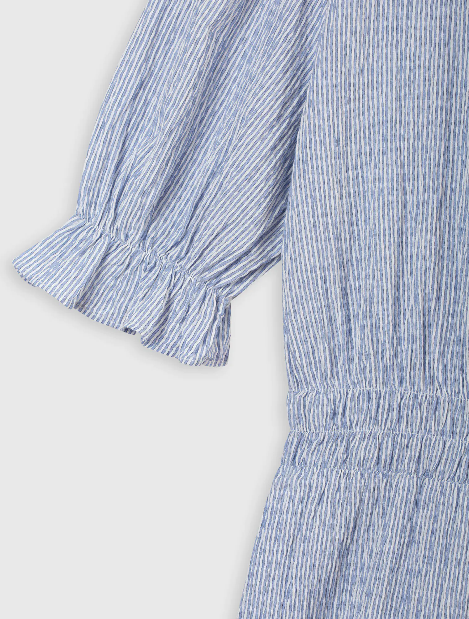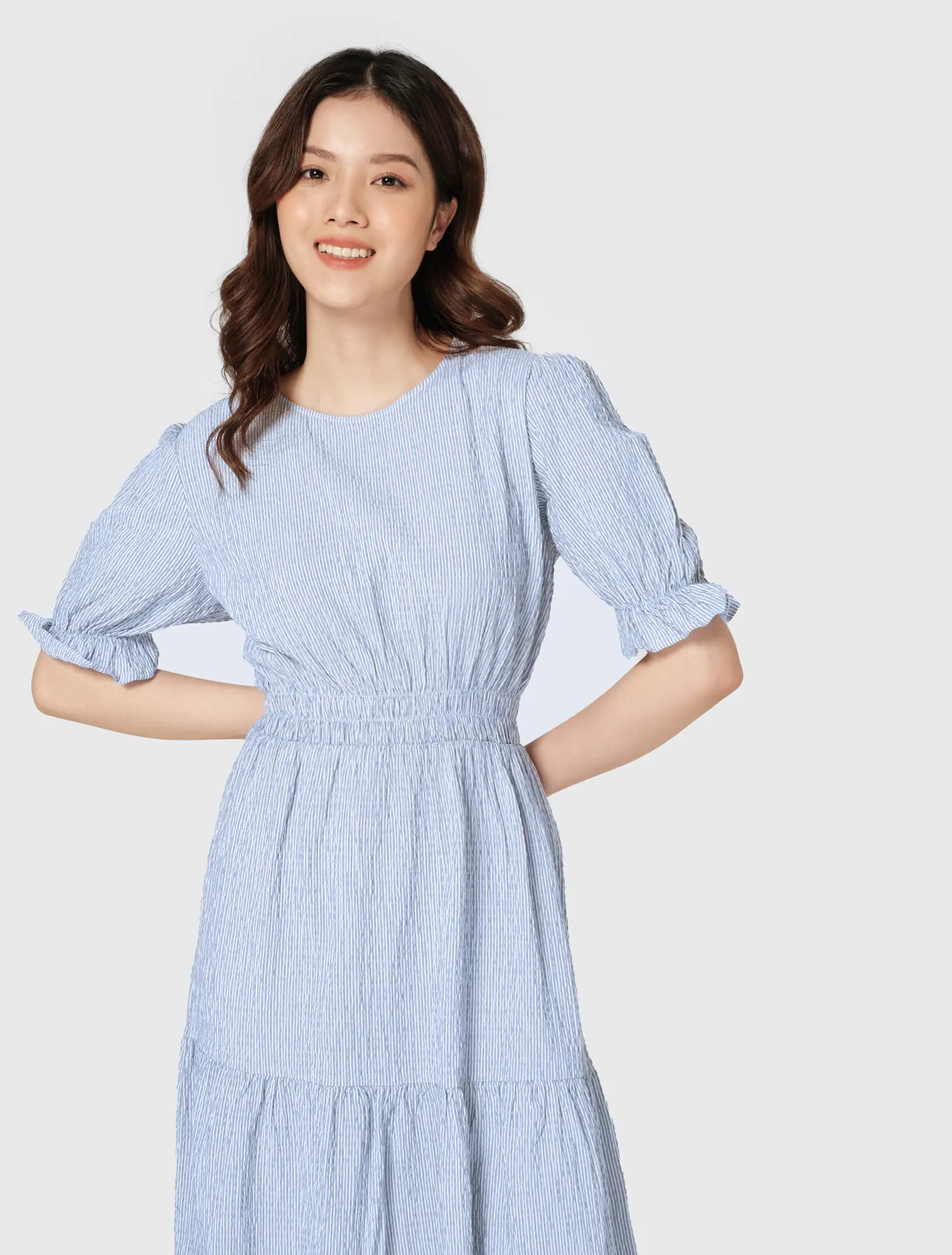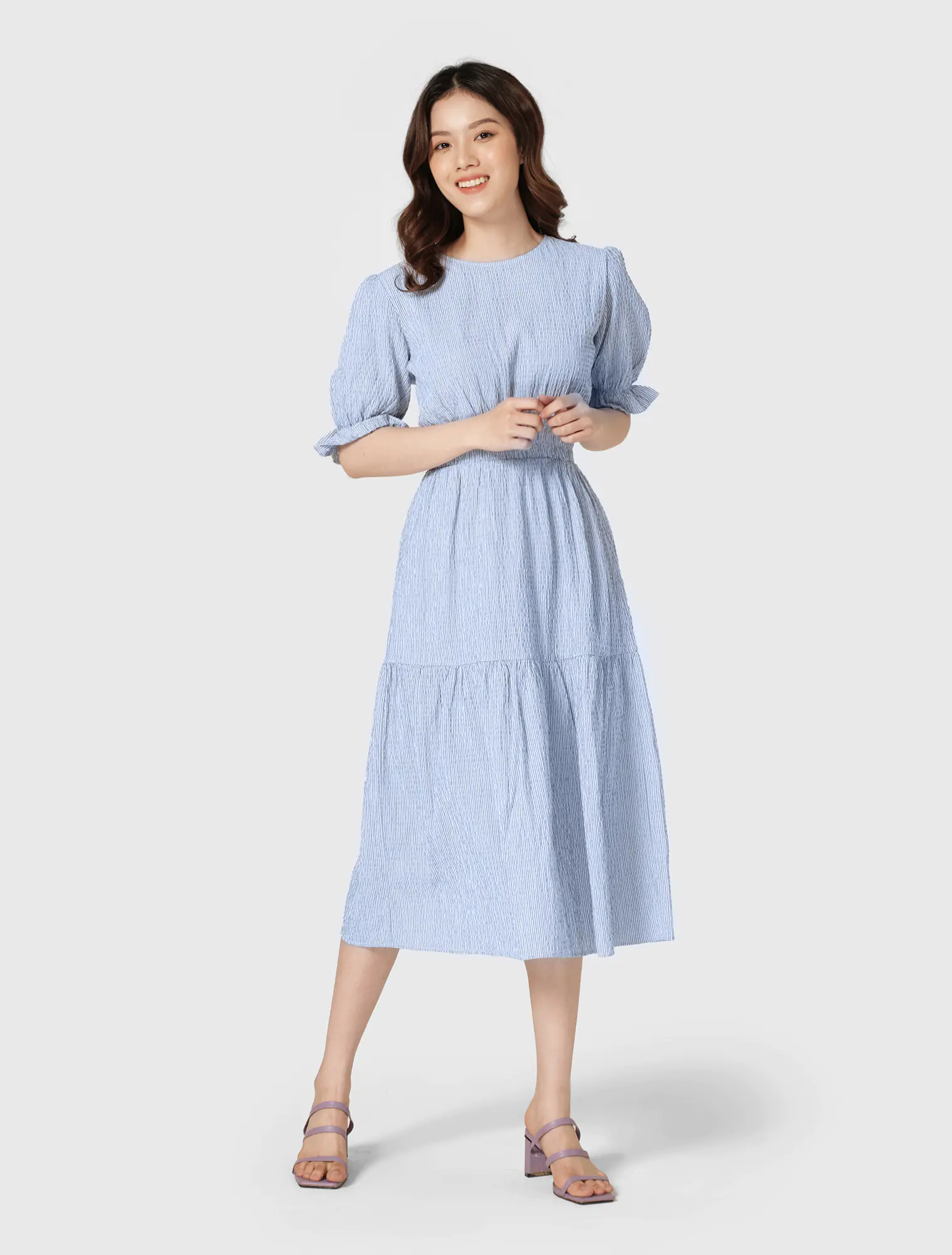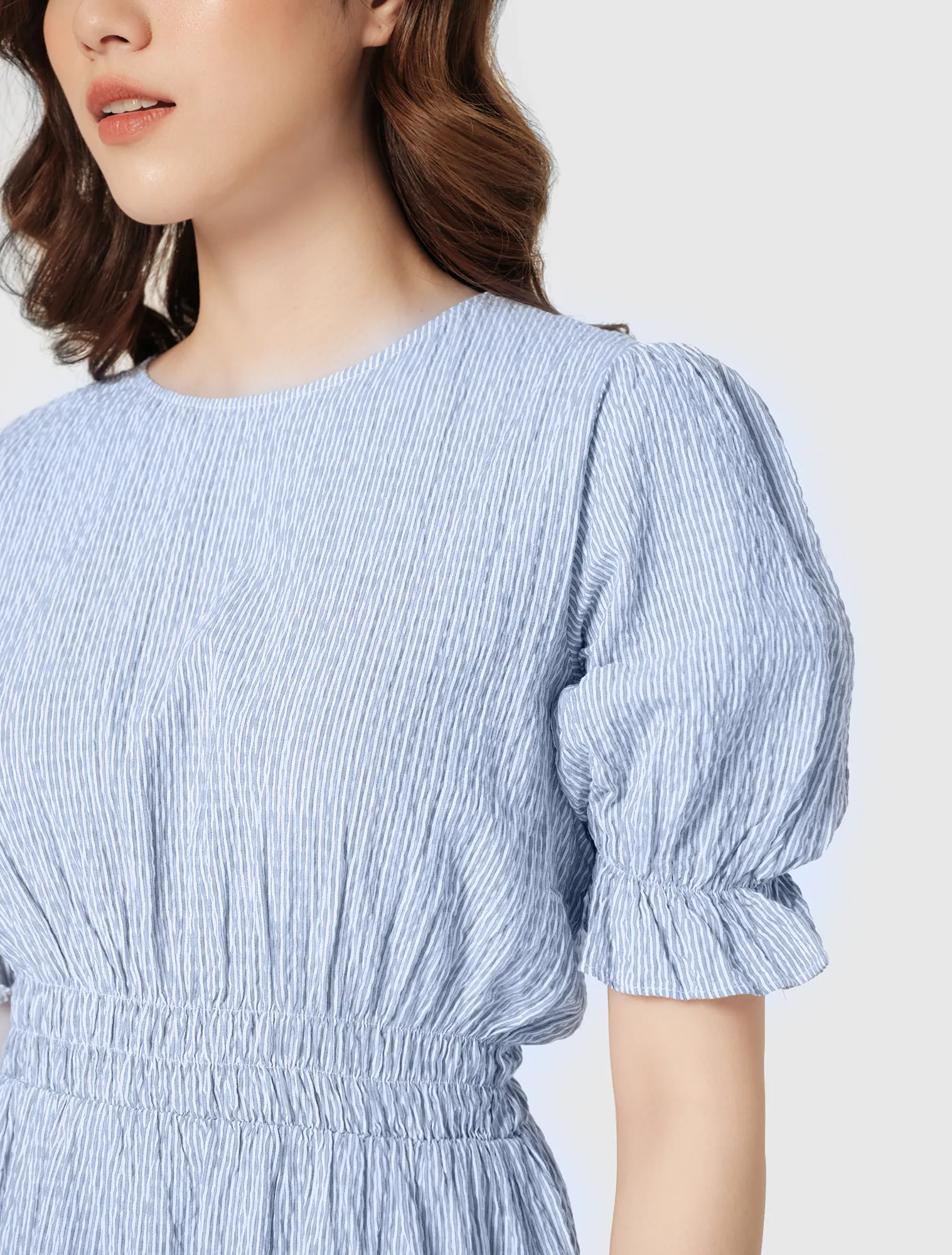 Dáng A dài, cổ tròn, tay ngắn, chạy chun eo, cắt tùng