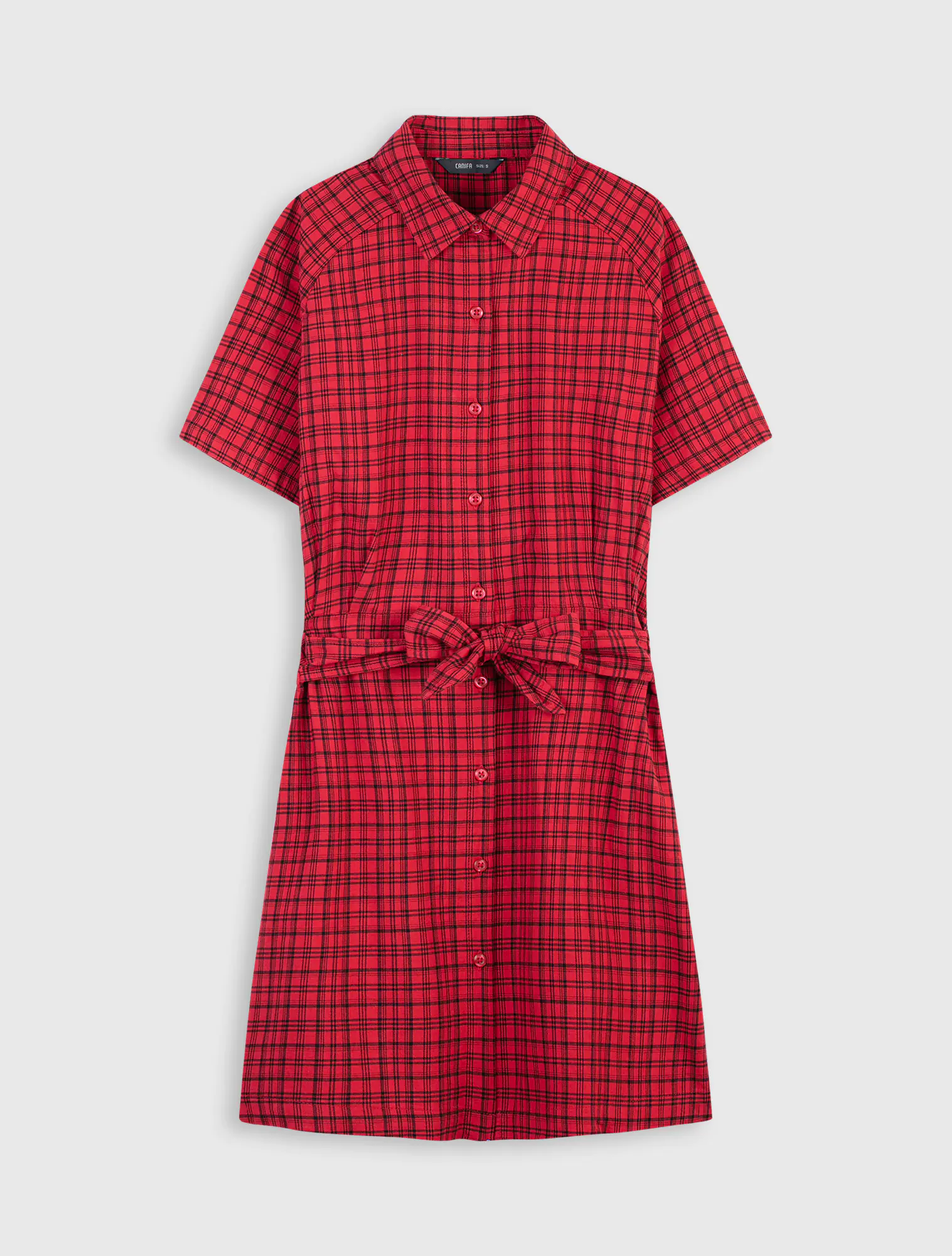 Dáng A, cổ đức, tay ngắn, buộc nơ eo